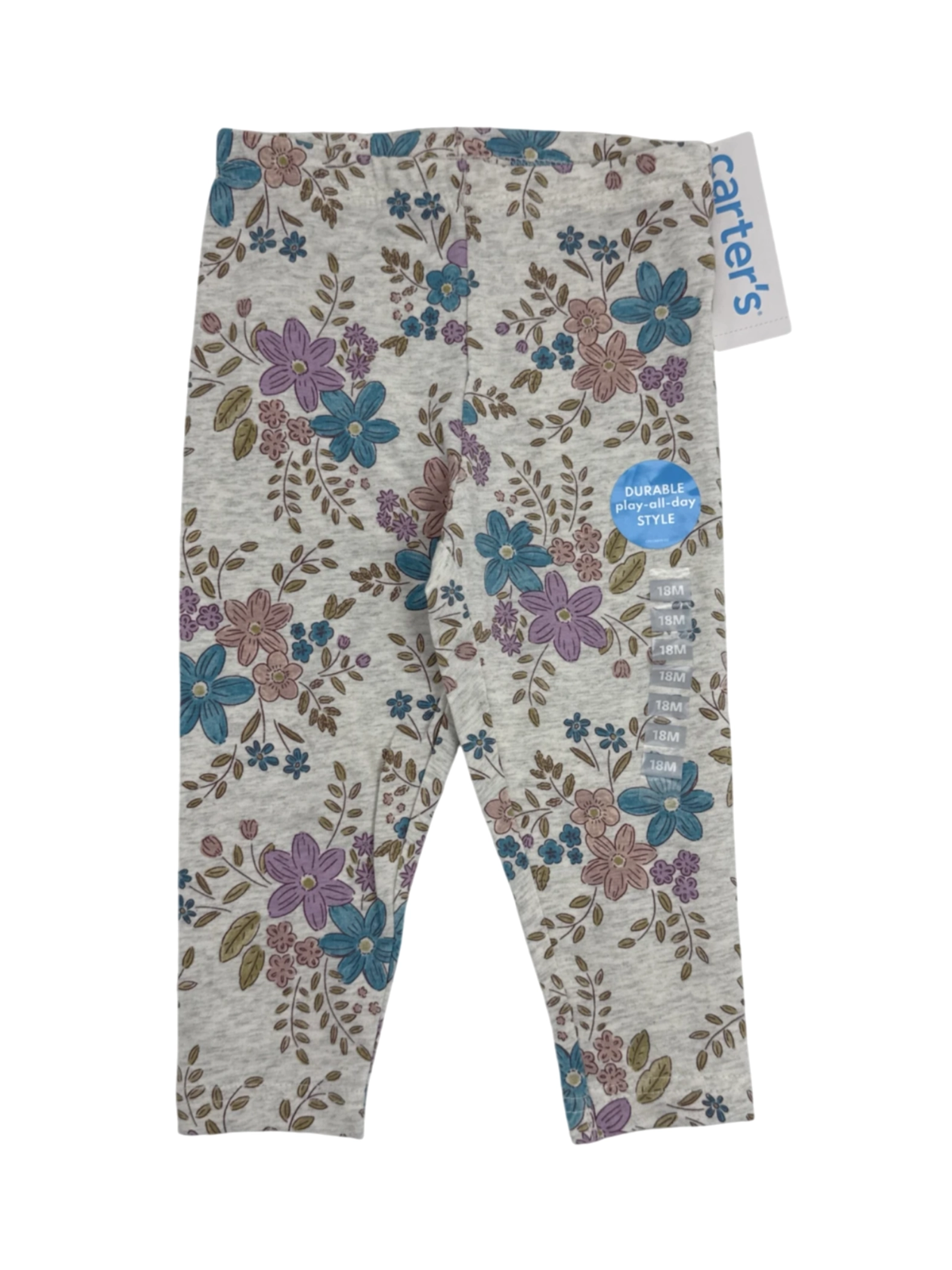 Floral pants for girls in pink, teal, gray, and gold, available in size 18 months.