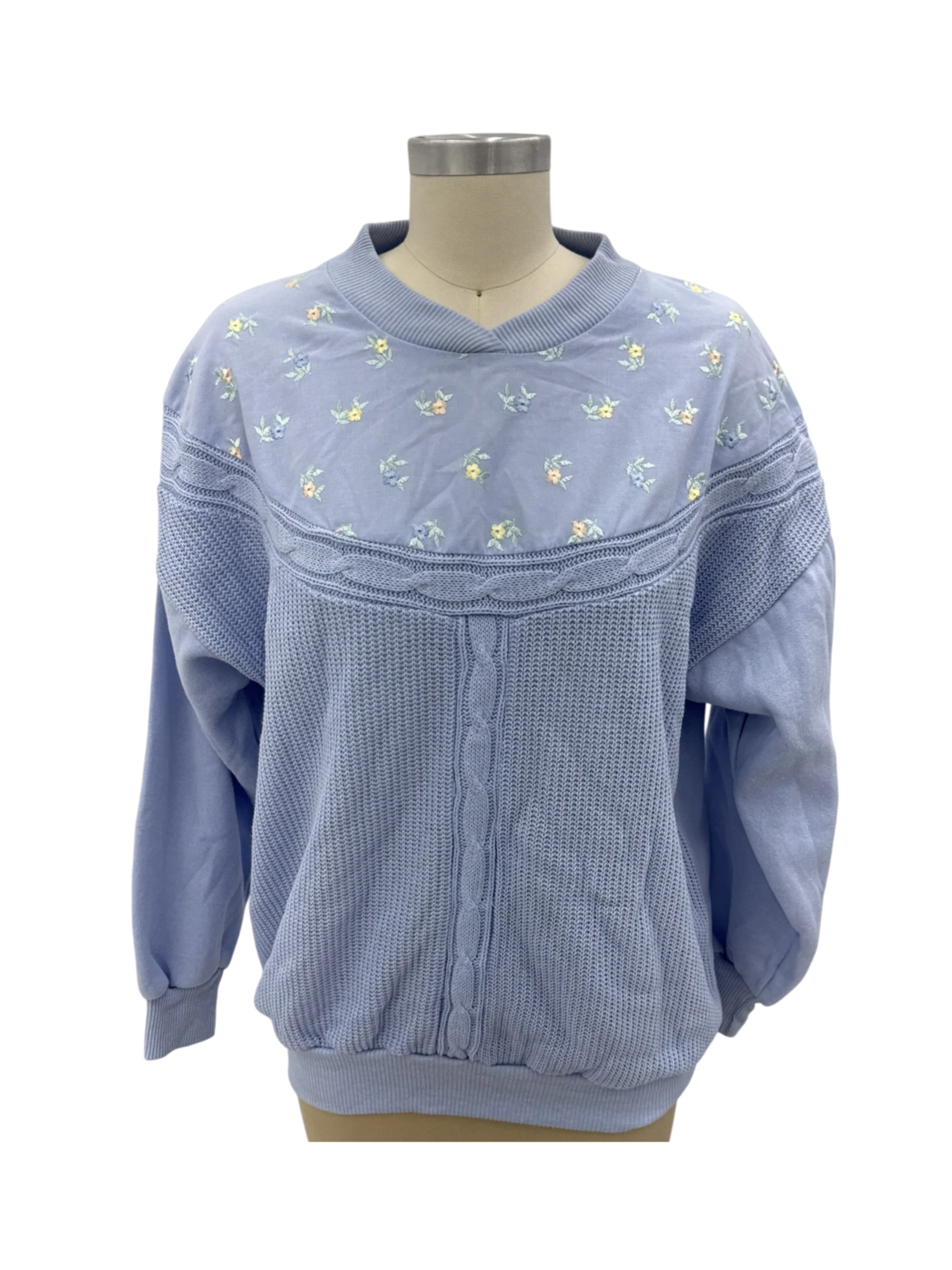 This pre-owned Casino sweater is a charming addition to any wardrobe. Featuring a light blue hue with delicate floral embroidery, this sweater offers a touch of vintage appeal. It's a pullover style with a comfortable round neck, perfect for layering during transitional seasons. Made from a blend of polyester and cotton, it ensures both comfort and durability. Ideal for casual wear, this sweater is a stylish and affordable choice.