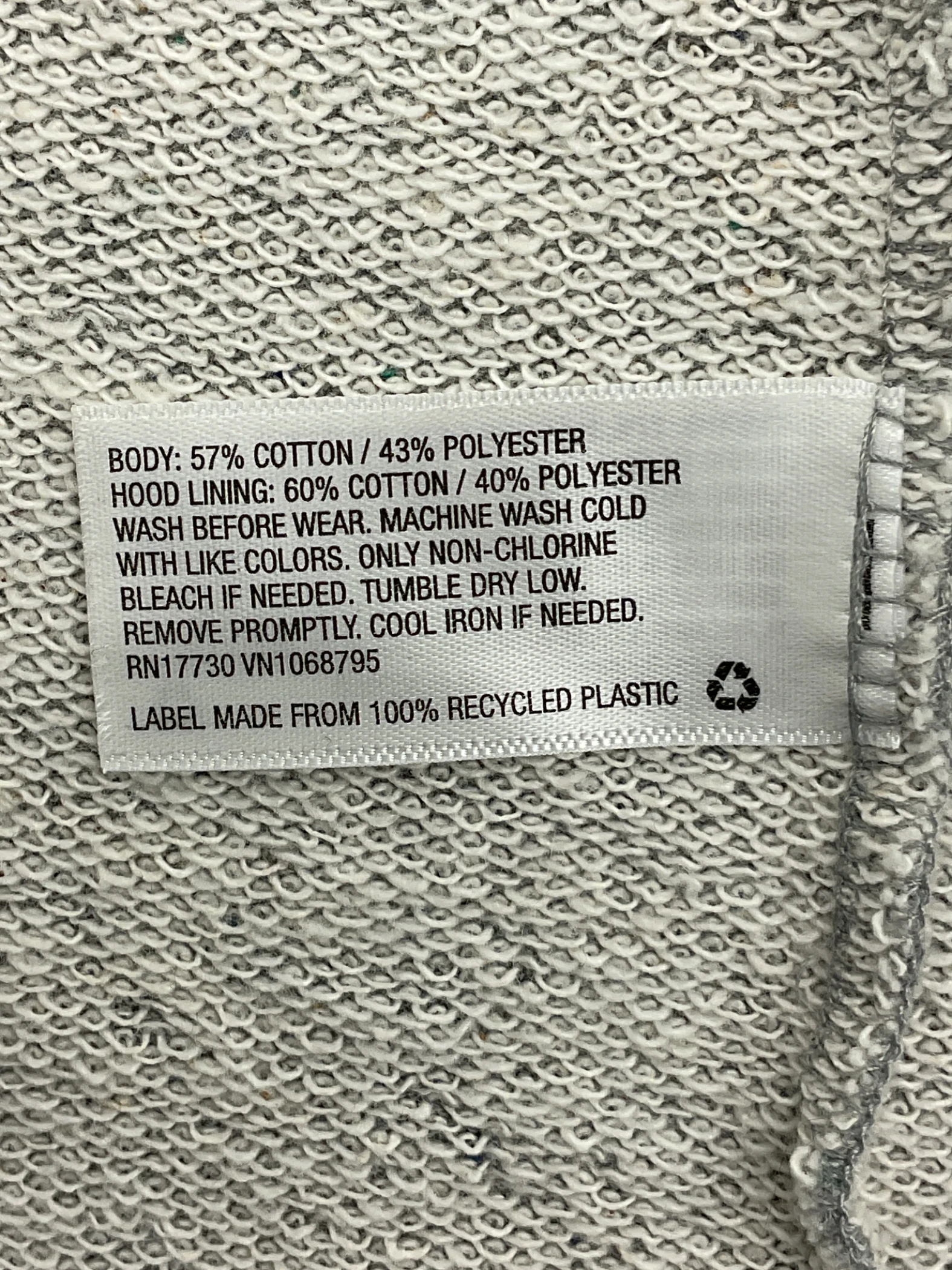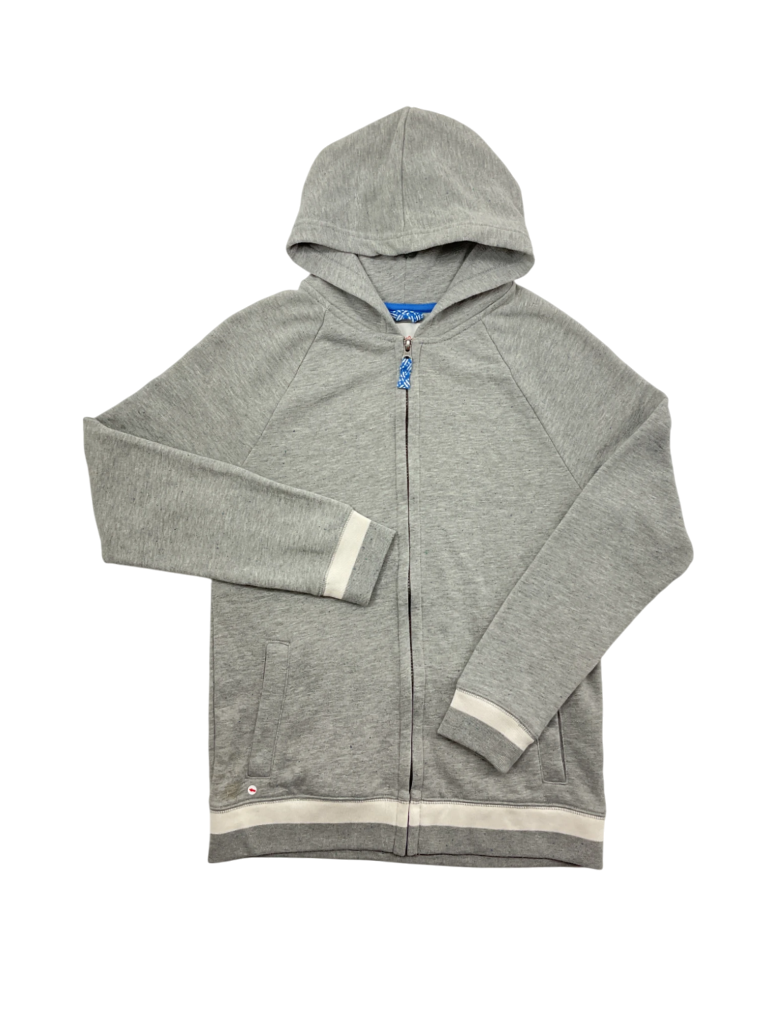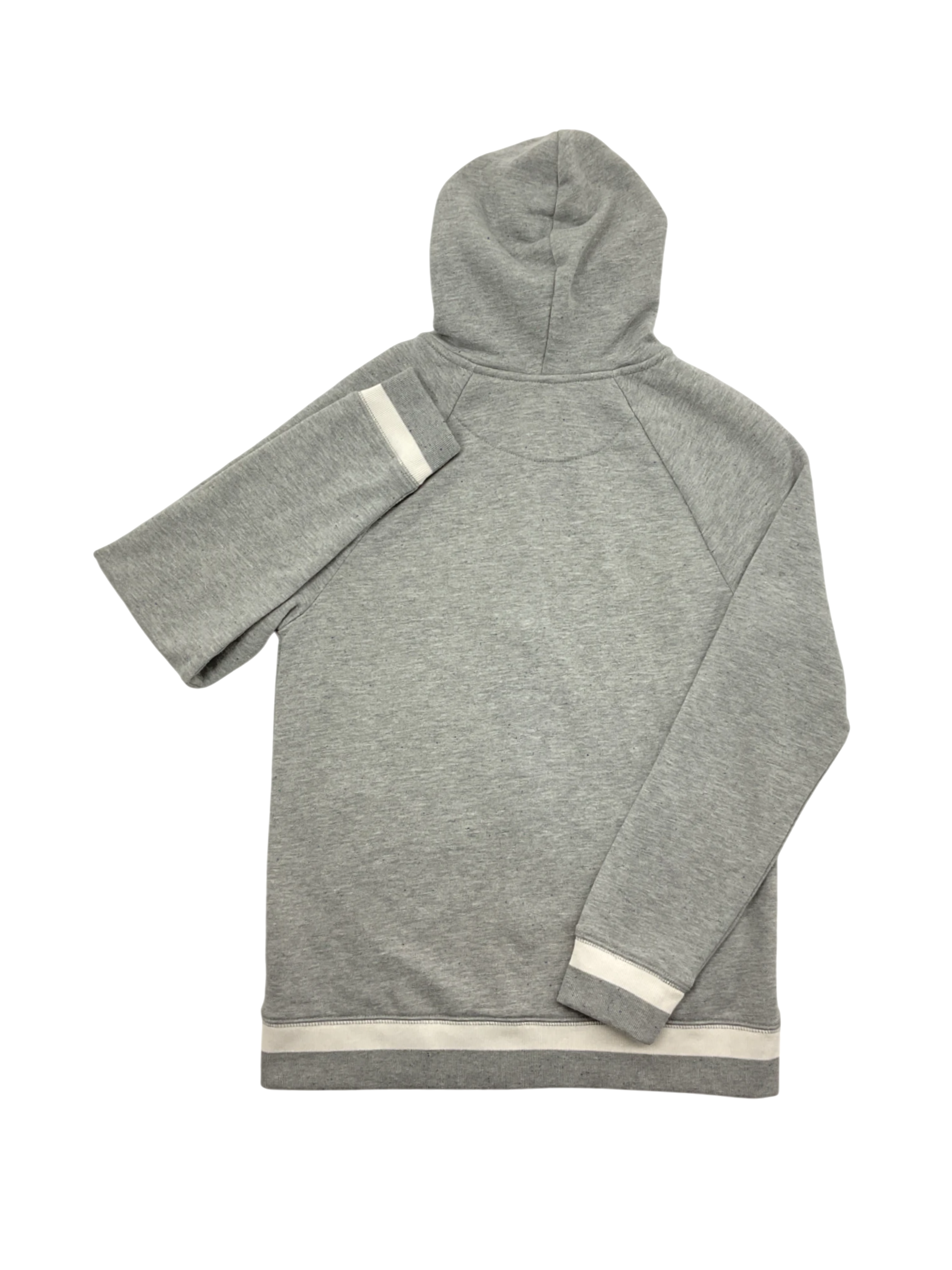 Boy's hoodie in gray with white stripes in size XL (16), made of a polyester and cotton blend.