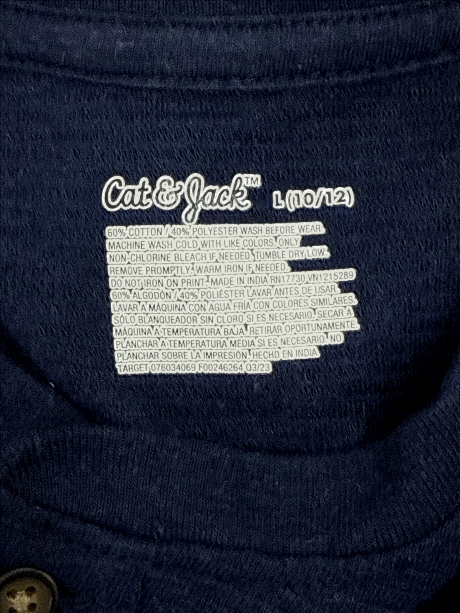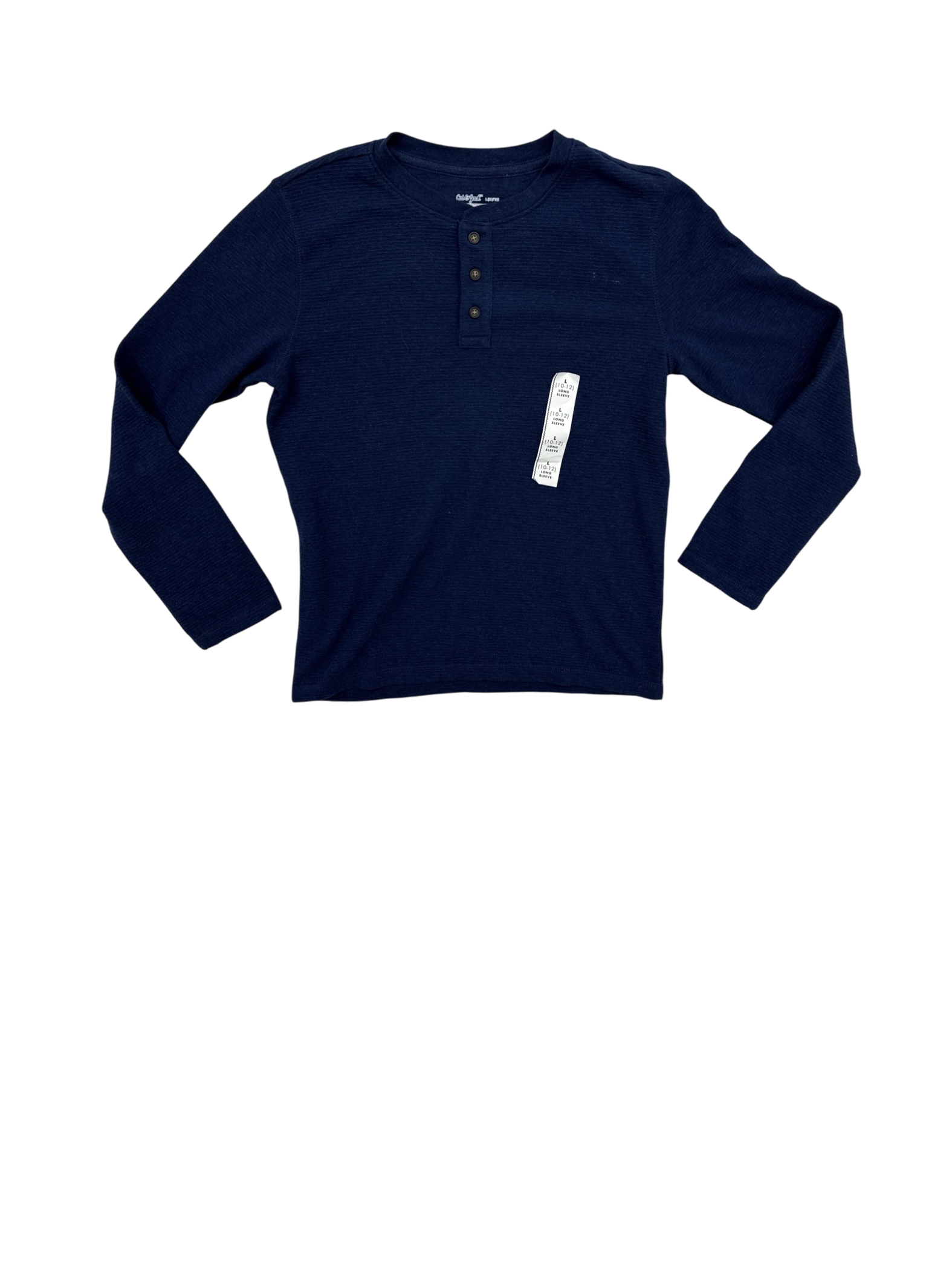 This pre-owned Cat & Jack Henley T-shirt for boys in size 10/12 is a stylish and comfortable addition to any wardrobe. Featuring a classic button-up Henley design, long sleeves, and a rich navy blue color. Made from a blend of cotton and polyester, this top is perfect for layering or wearing on its own. It's ideal for everyday wear and can easily be dressed up or down. Get this durable and fashionable piece today!