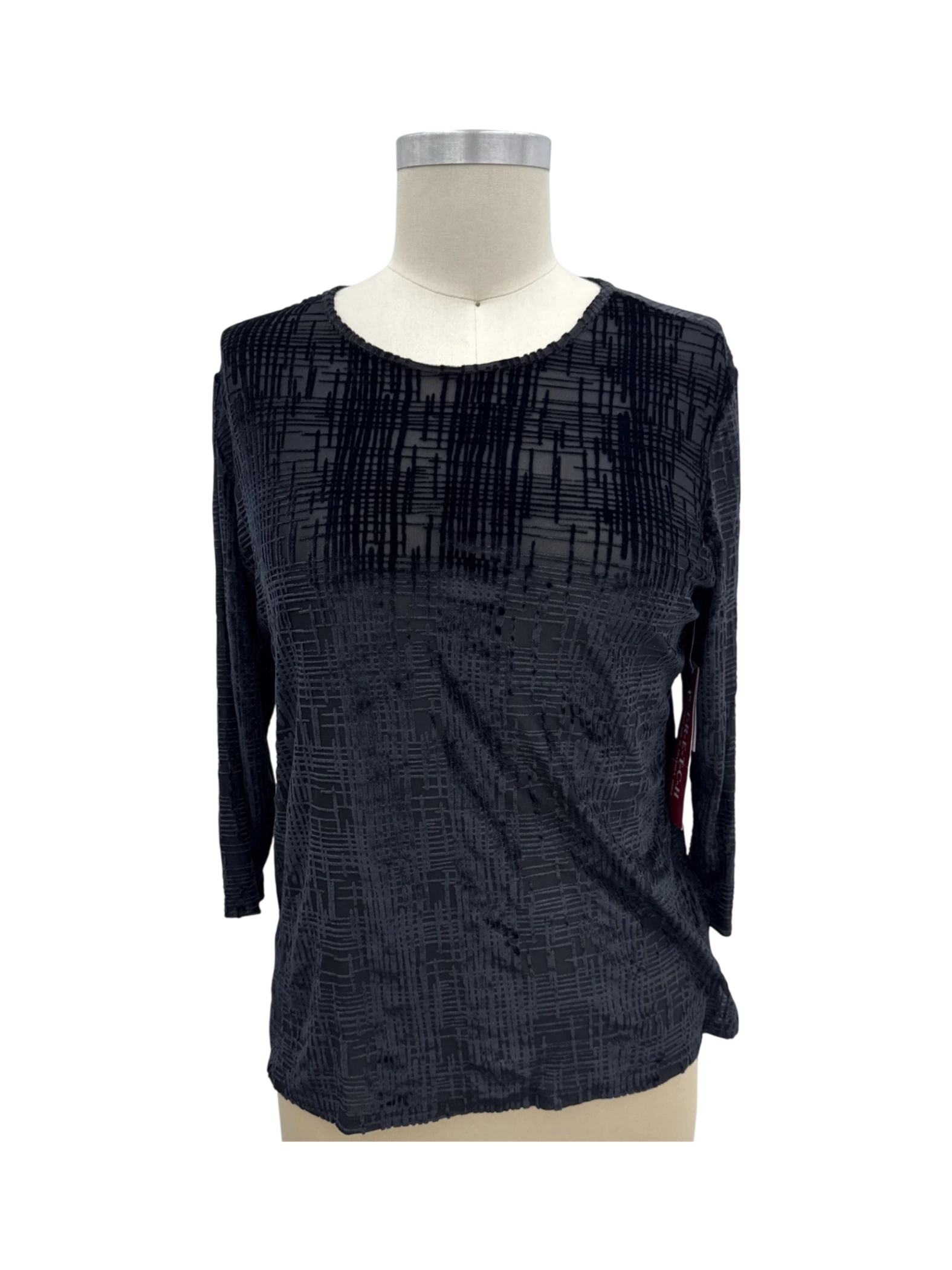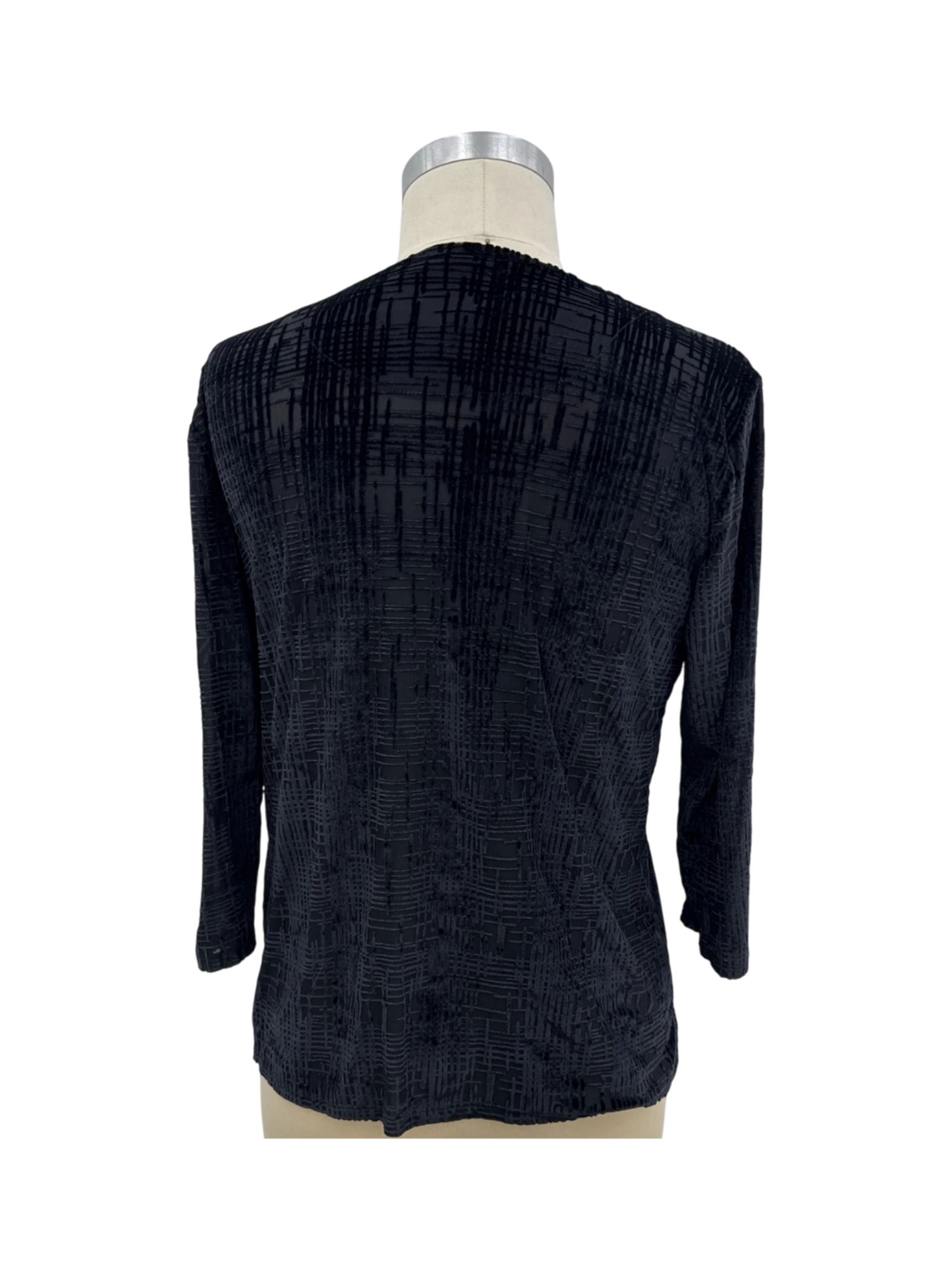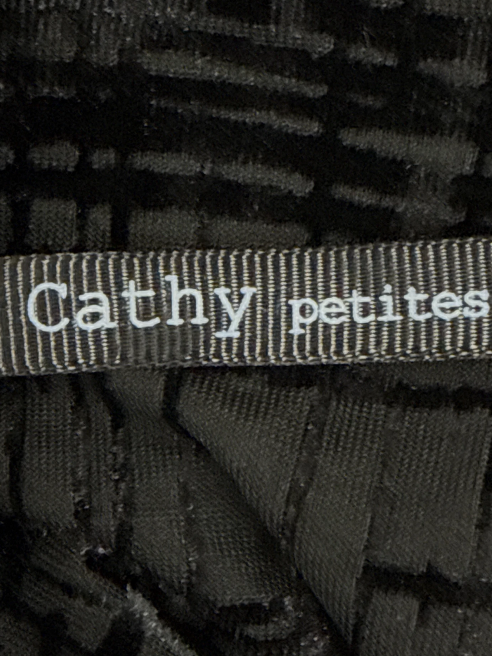 This Cathy Petites blouse is a stylish addition to your wardrobe. The top features a chic black geometric pattern, perfect for a sophisticated look. Made from a blend of polyester, nylon, and spandex, it offers a comfortable fit. The long sleeves make it ideal for cooler seasons. This second-hand top is a great value, offering both style and sustainability. Wear it to a casual outing or dress it up for a night out.
