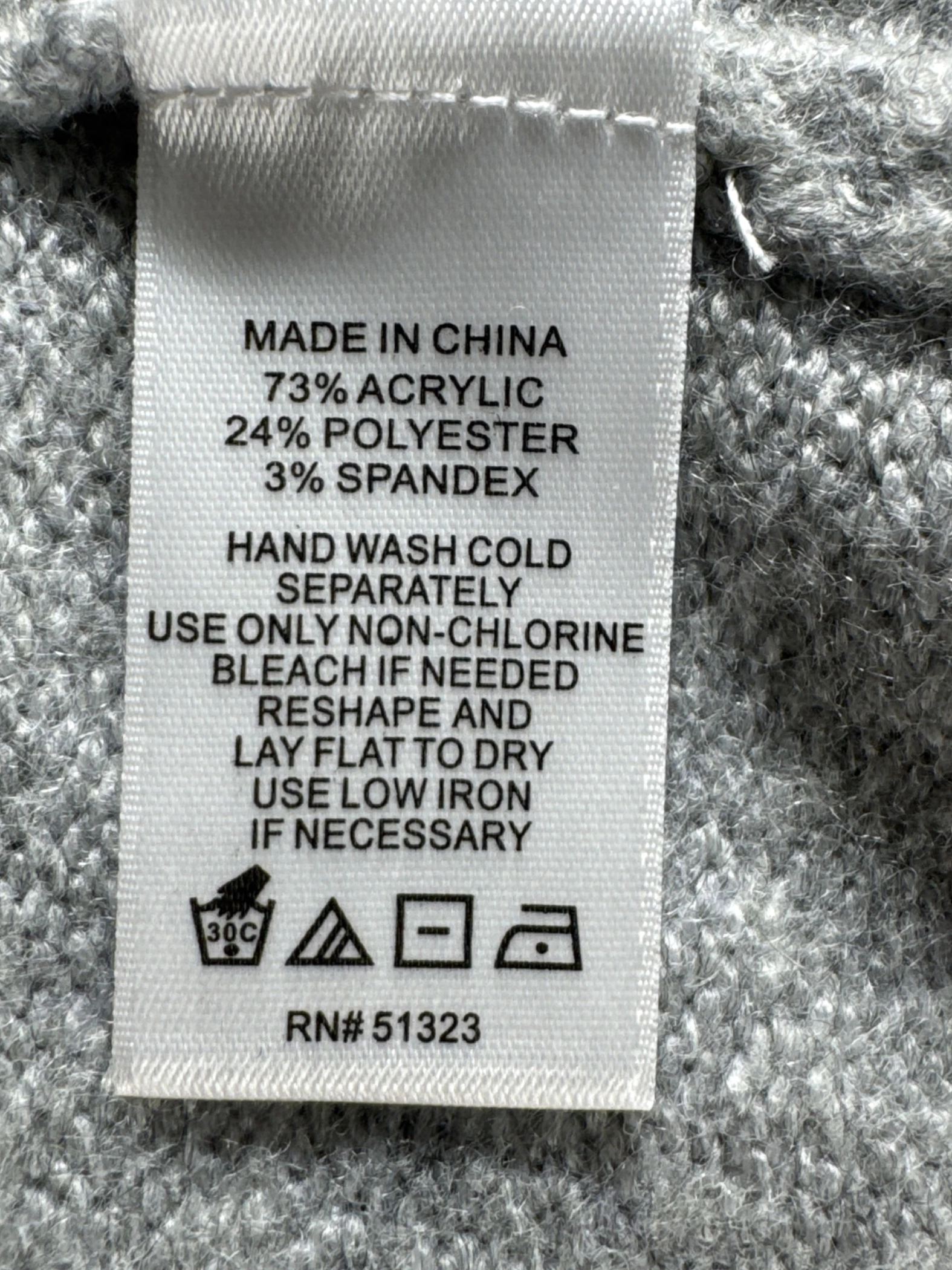 Elevate your everyday wardrobe with this pre-owned CeCe sweater. This stylish piece features a classic round neck and long sleeves. Crafted with a soft blend of acrylic, polyester, and spandex, it offers both comfort and durability. The versatile gray color makes it easy to pair with any outfit. Perfect for a casual day out or layering for cooler weather. Made in China.