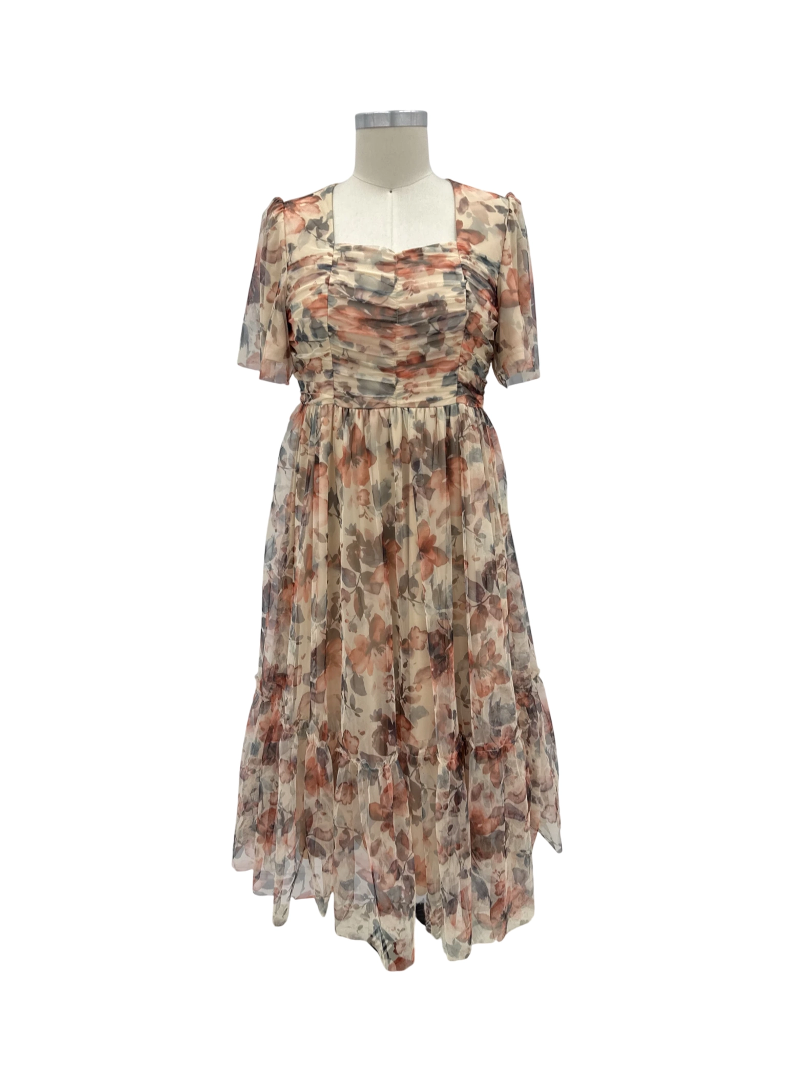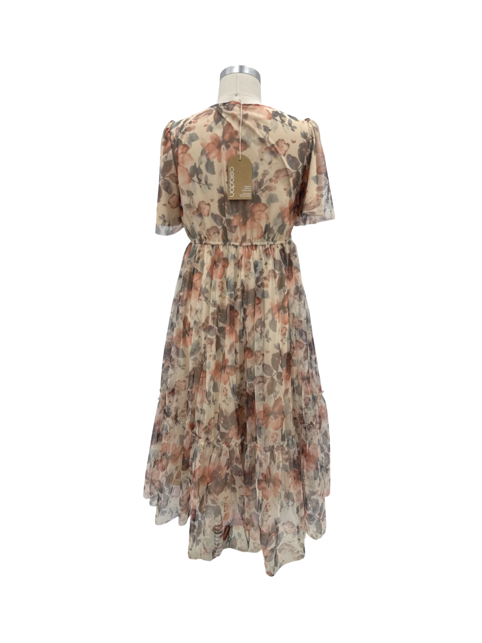 This beautiful Celadon dress is perfect for a summer day or a special event. The A-line silhouette flatters any figure, while the floral print adds a touch of romance. The dress features a square neckline and short sleeves for a timeless look. Crafted from comfortable polyester, this dress offers both style and wearability. A great addition to your wardrobe for a special occasion or a summer outing.