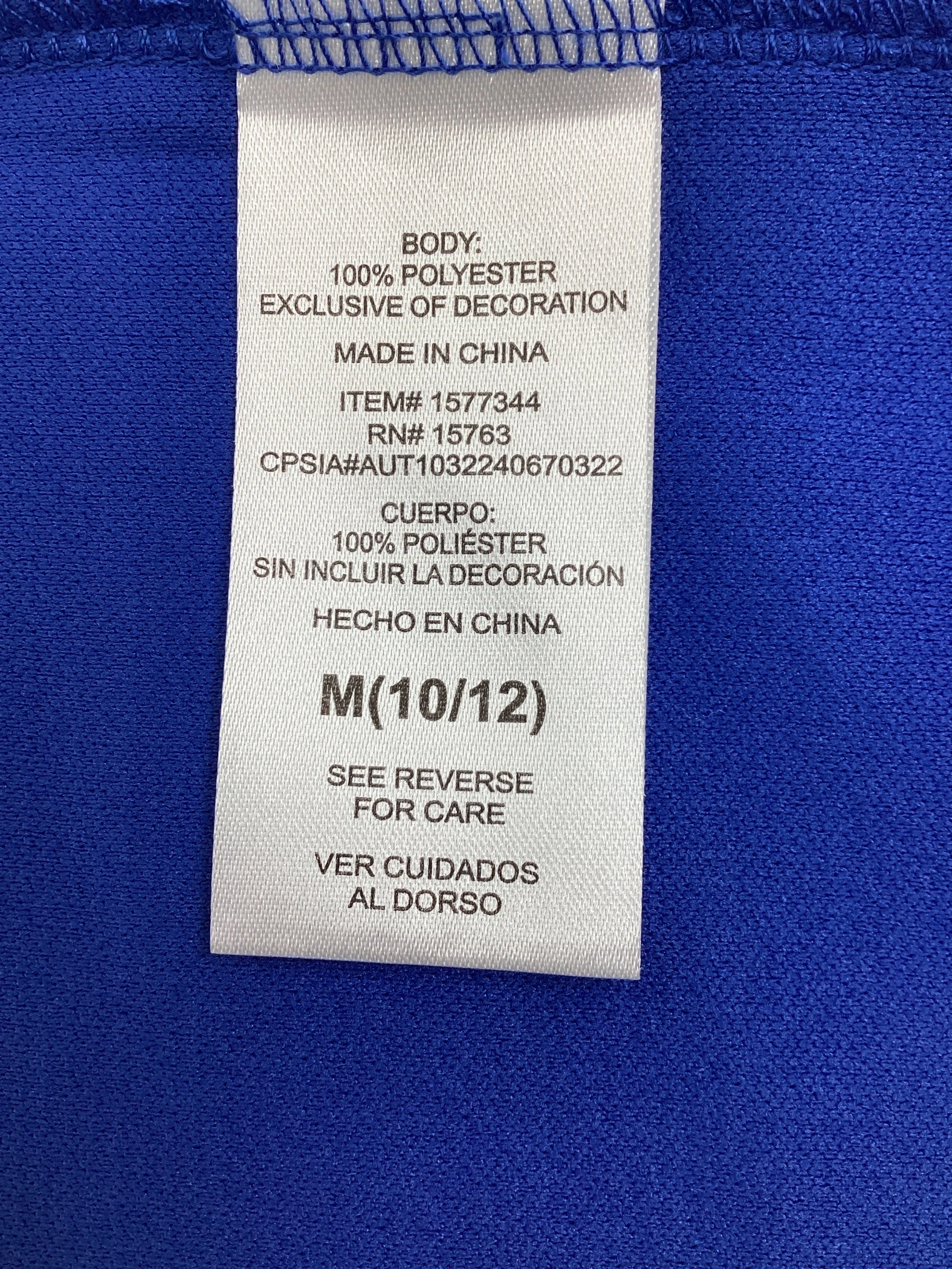 This item is a Champion Kids Graphic Jersey Tee in blue, with short sleeves and a size of medium (10/12).