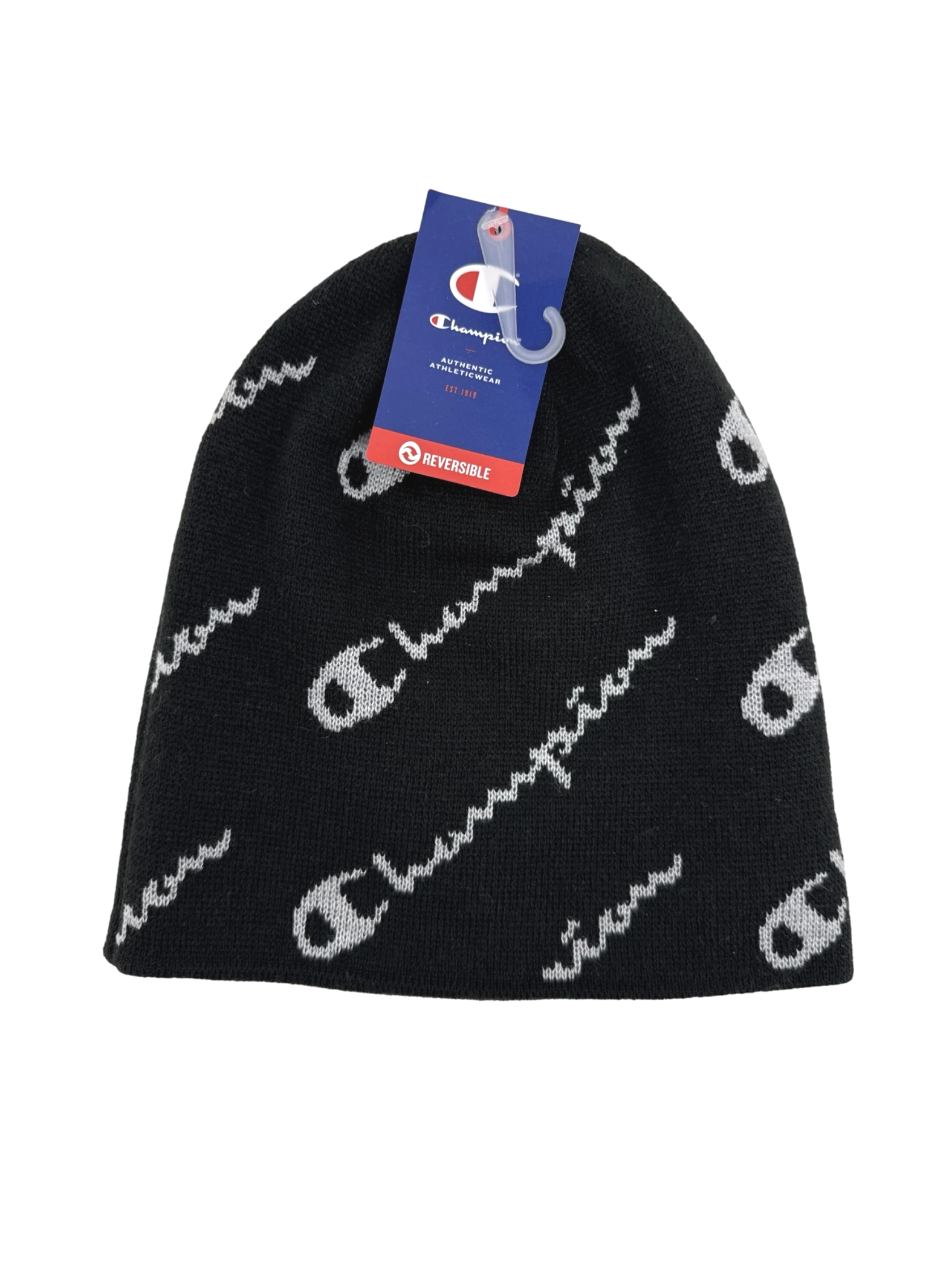 Elevate your winter style with this pre-owned Champion reversible beanie. This versatile accessory showcases the iconic Champion logo in a striking black and white pattern, suitable for various outfits. The one-size-fits-all design ensures a comfortable fit, while the durable acrylic fabric provides warmth. Perfect for adding a touch of sporty flair to your cold-weather wardrobe, the beanie can be flipped to change up your look. A great find for Champion fans, this beanie is a stylish and practical addition to any wardrobe.