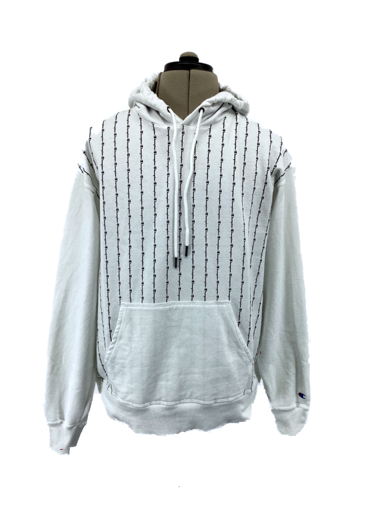 Men's white and black long sleeve hoodie in size XL. Made: Cotton and Polyester. * This hoodie has several of stains but washable.