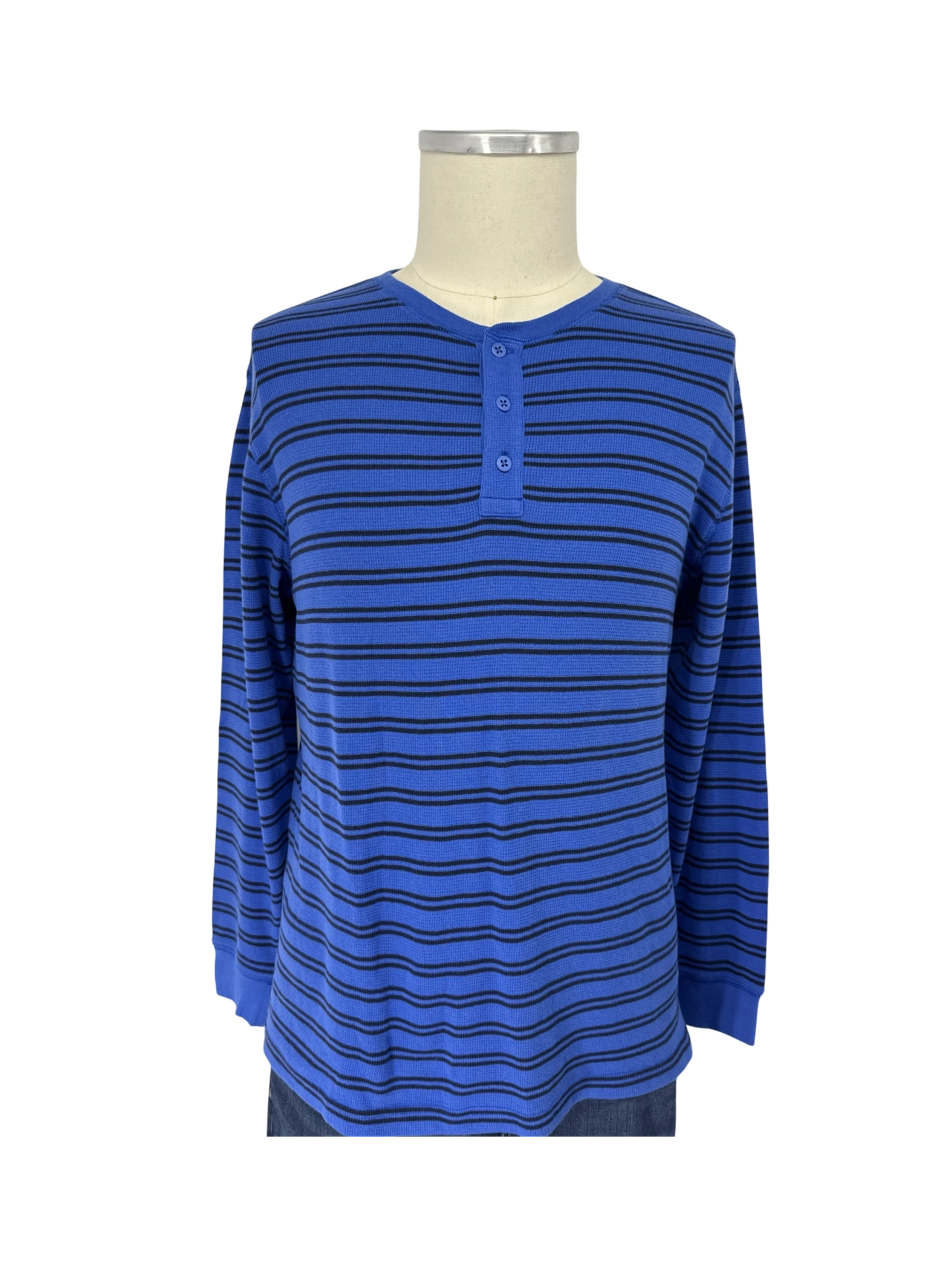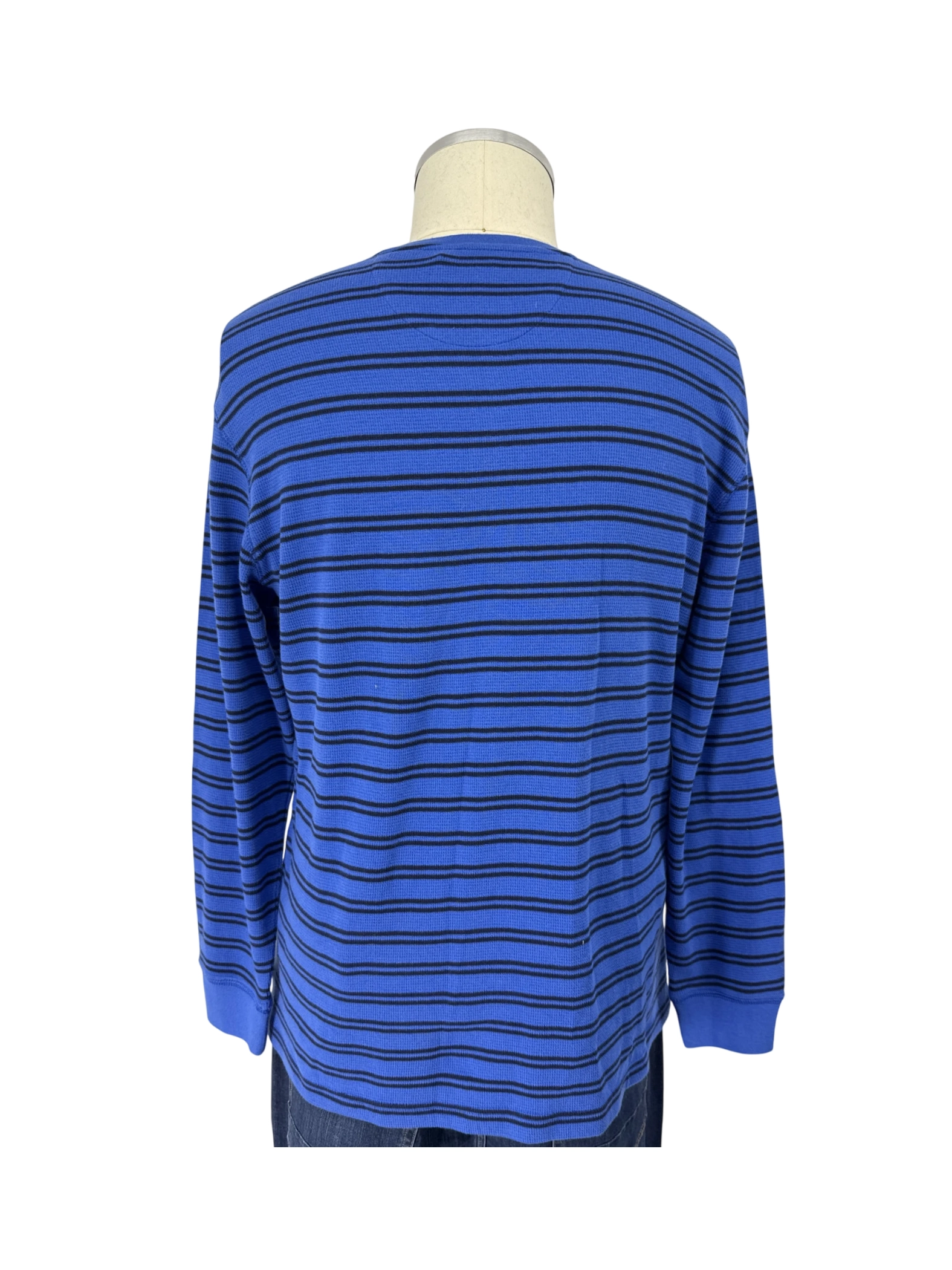 This pre-owned CHAPS men's sweater combines classic style with everyday comfort. Crafted from a soft cotton blend, it features a timeless striped pattern in blue and black. The long sleeves and crew neckline provide warmth, while the button-up placket adds a touch of sophistication. Perfect for layering or wearing on its own, this versatile sweater is a wardrobe staple for any man.