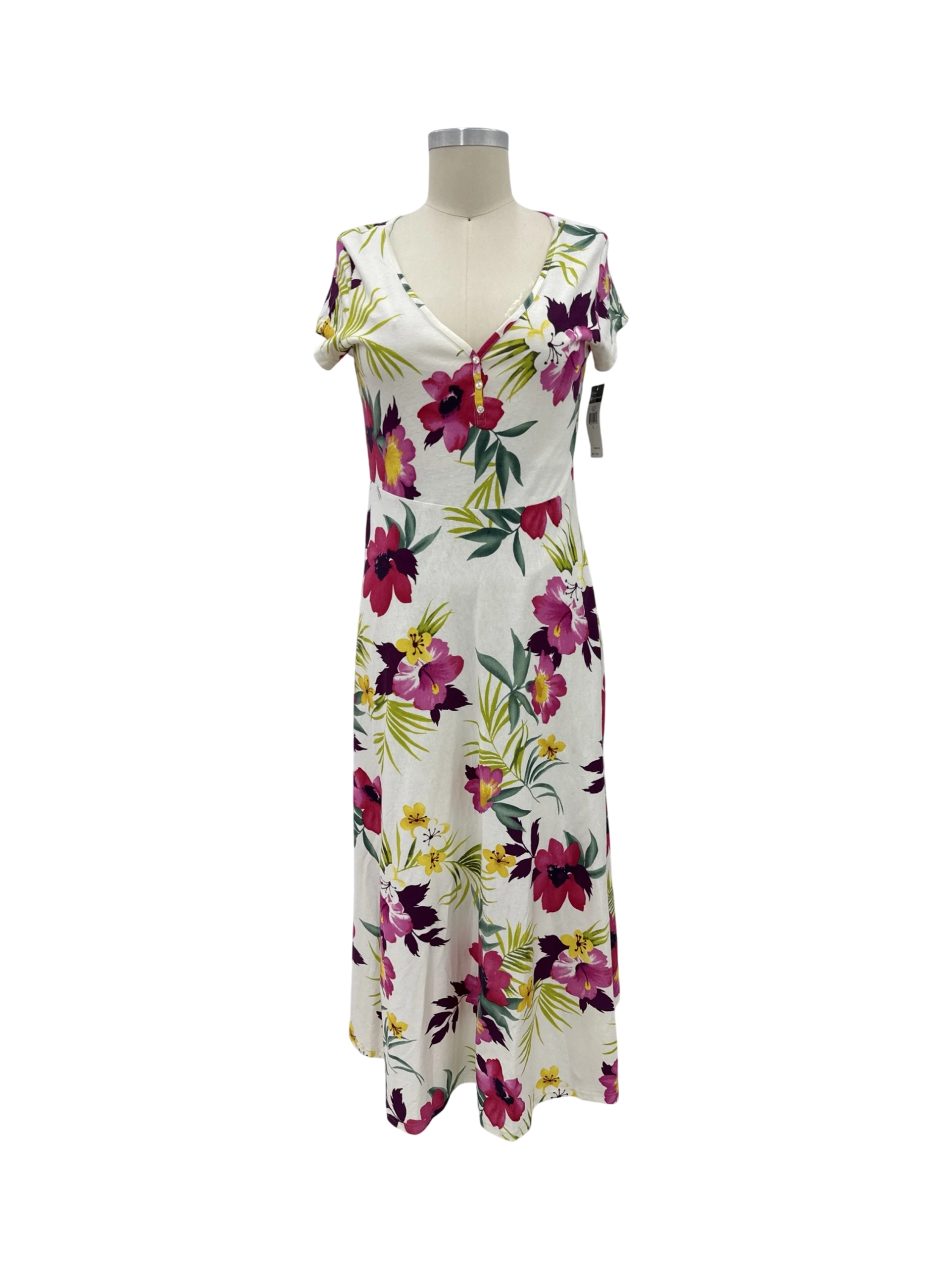 This beautiful, pre-owned CHAPS maxi dress is perfect for a summer day. Featuring a vibrant floral pattern on a white background, this dress is crafted from soft cotton, ensuring all-day comfort. The A-line silhouette flatters all body types. It's ideal for a casual outing or a sunny afternoon stroll. The dress is in excellent condition, offering both style and value.