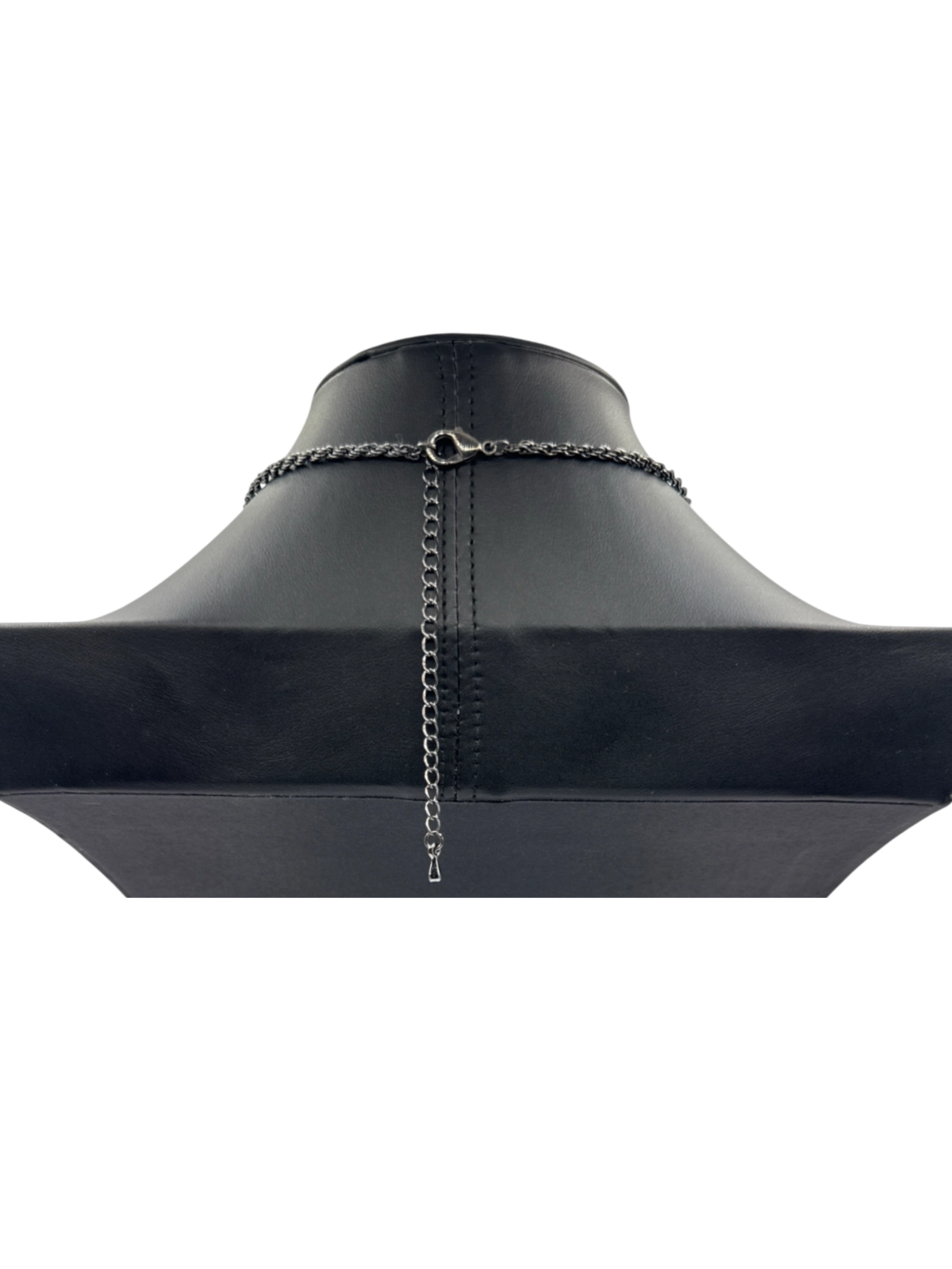 This eye-catching, pre-owned statement necklace is a perfect accessory for any outfit. Featuring a bold, geometric design with bronze and multicolor accents, it exudes a touch of modern elegance. The necklace is a choker length, making it a versatile piece for both casual and formal occasions. Crafted from high-quality metal, this necklace is a unique find that is sure to turn heads. Enhance your jewelry collection with this beautiful piece.
