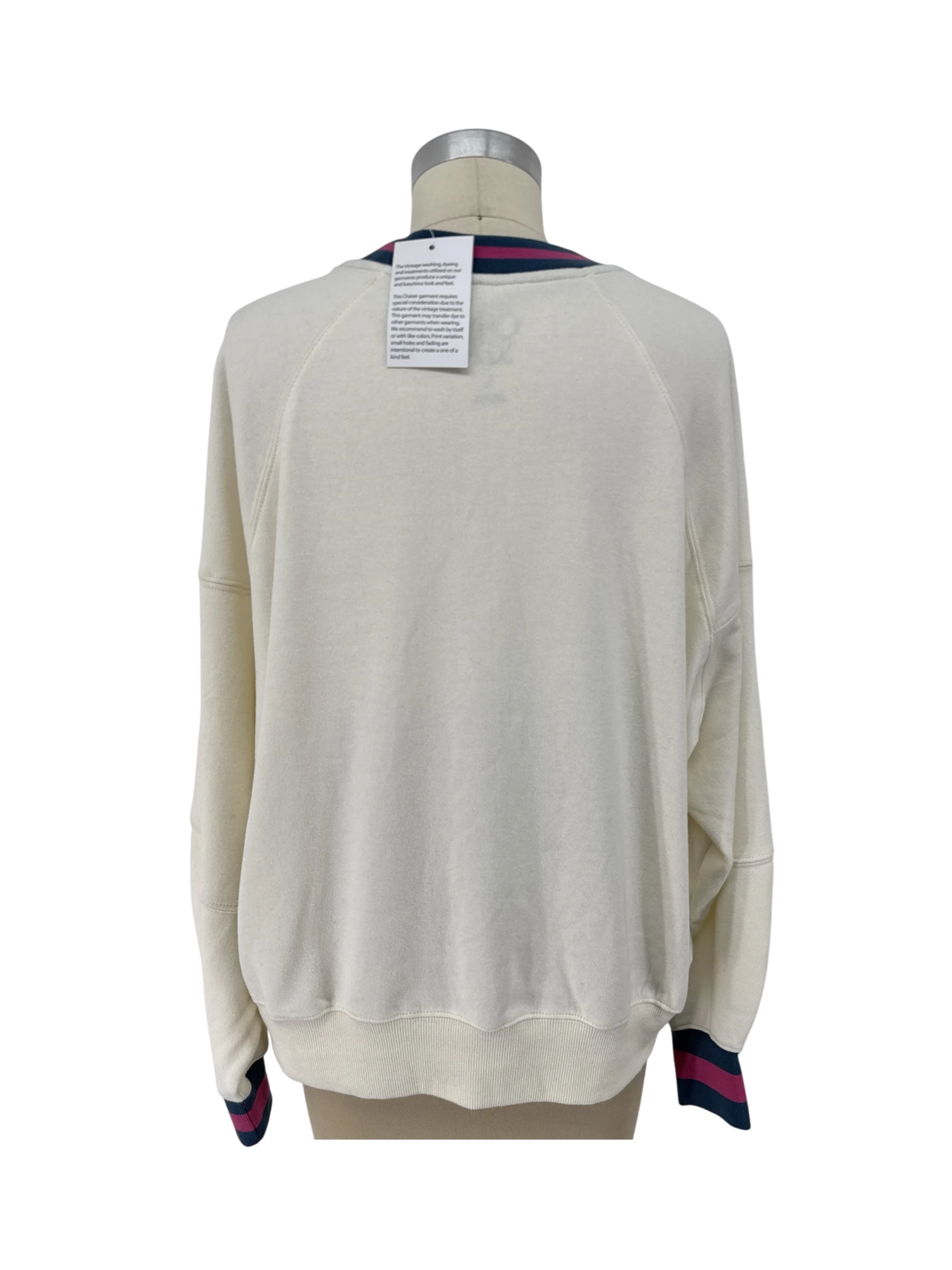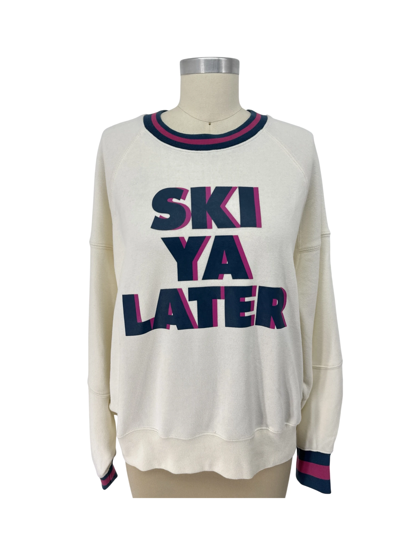 This pre-owned CHASOR sweater is perfect for a casual and cozy look. The ivory crew neck pullover features the phrase 'SKI YA LATER' making it a great choice for fans of skiing or winter sports. Crafted from a blend of cotton and polyester, this sweater offers both comfort and durability. Its classic design and comfortable fit make it an essential addition to any wardrobe. Ideal for chilly days, this sweater combines style and practicality.