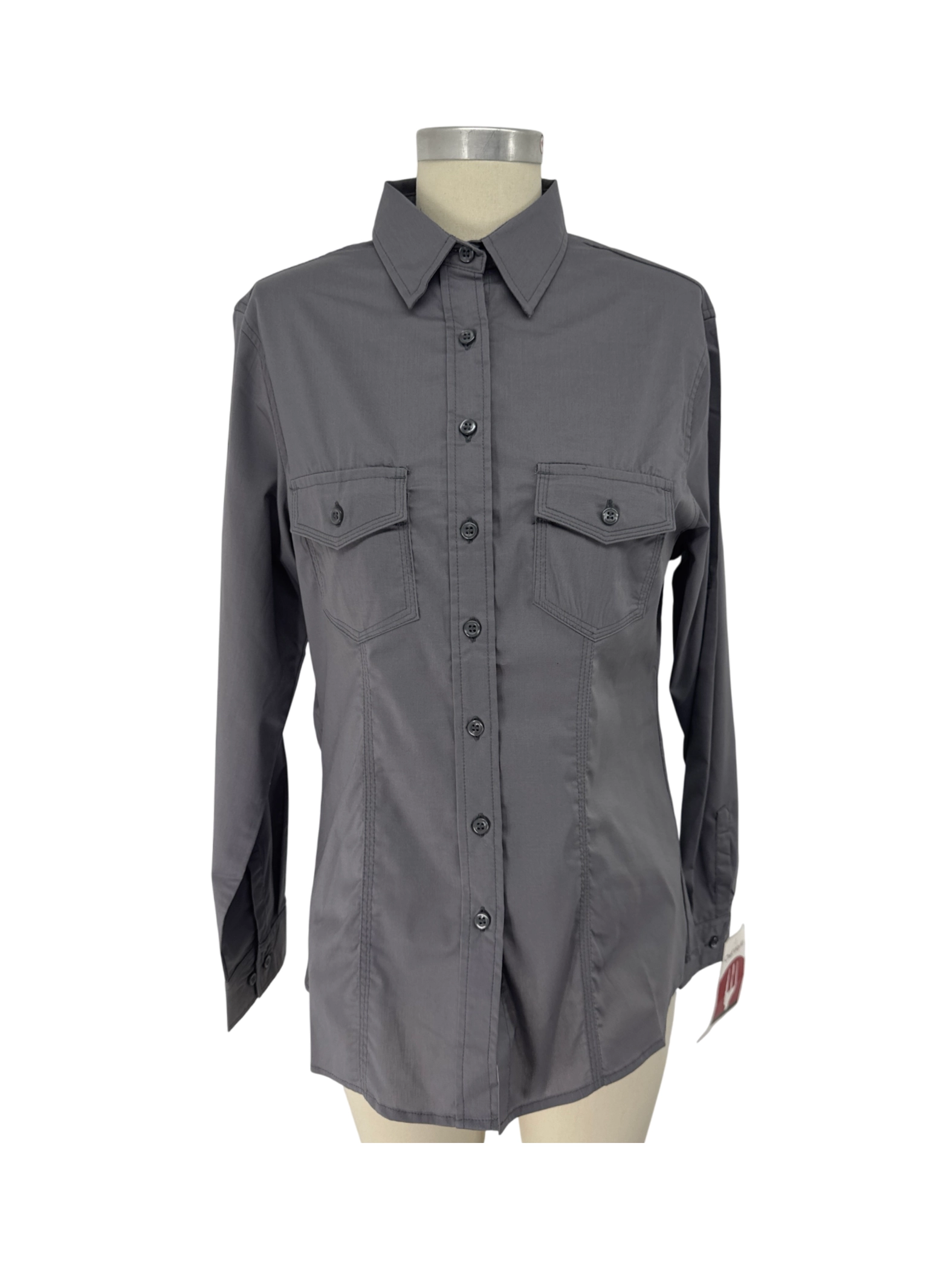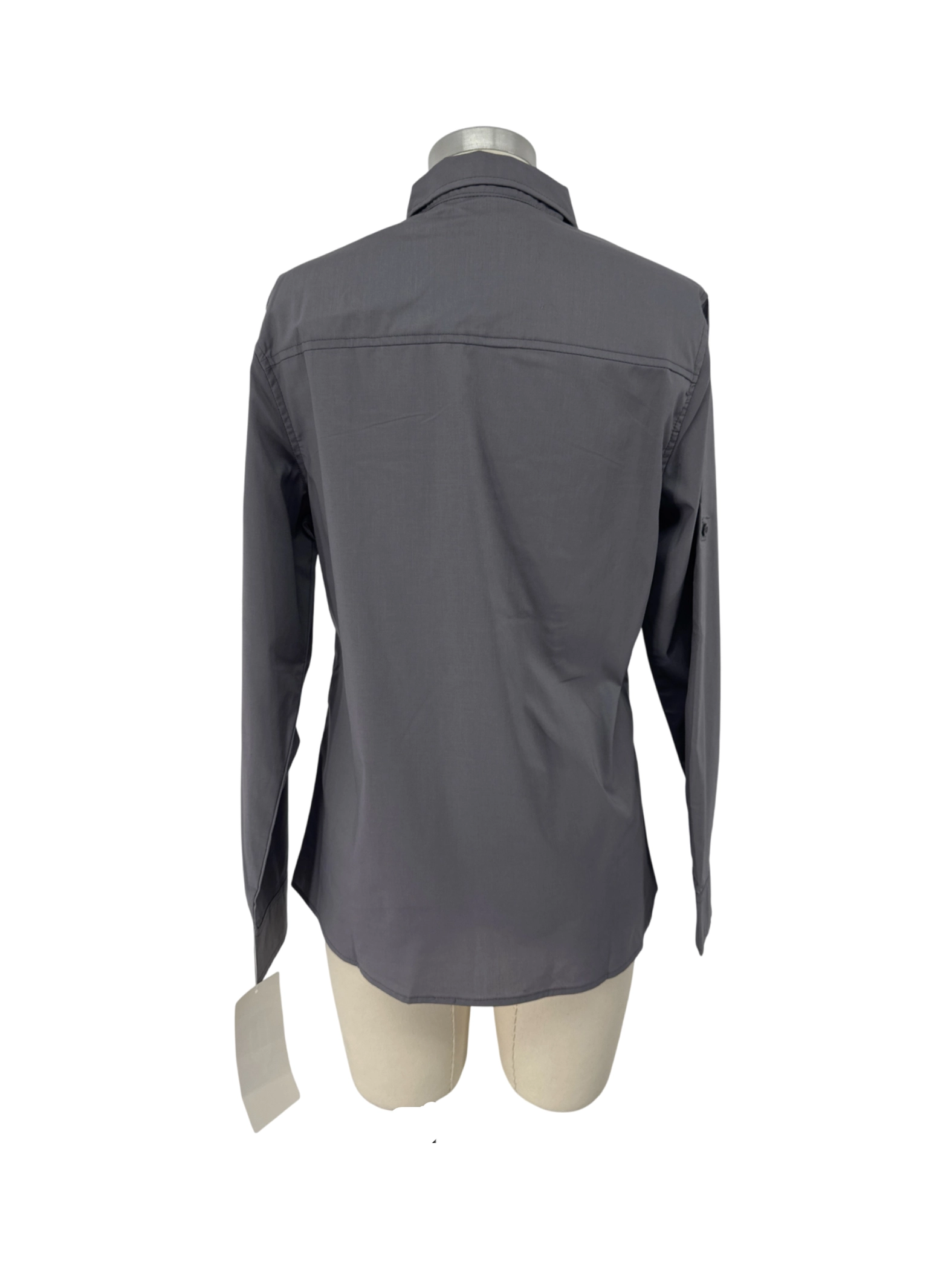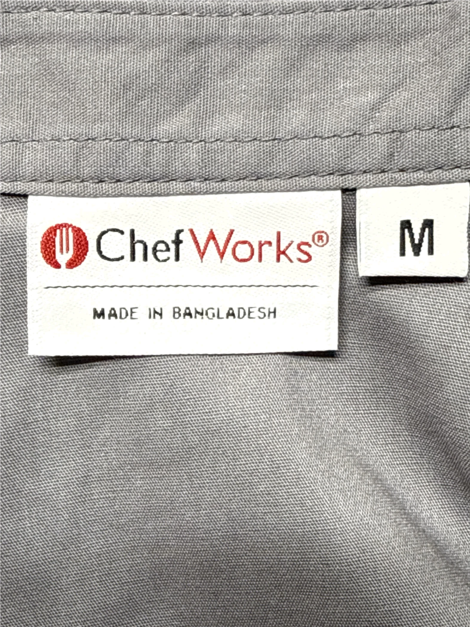 This Chef Works button-up shirt is a stylish and functional addition to any wardrobe. Crafted with durable fabric, this pre-owned shirt offers a sleek, professional look. Perfect for any occasion, this gray shirt is a versatile piece that can be dressed up or down. The classic design includes a collared neckline and long sleeves. Excellent condition.