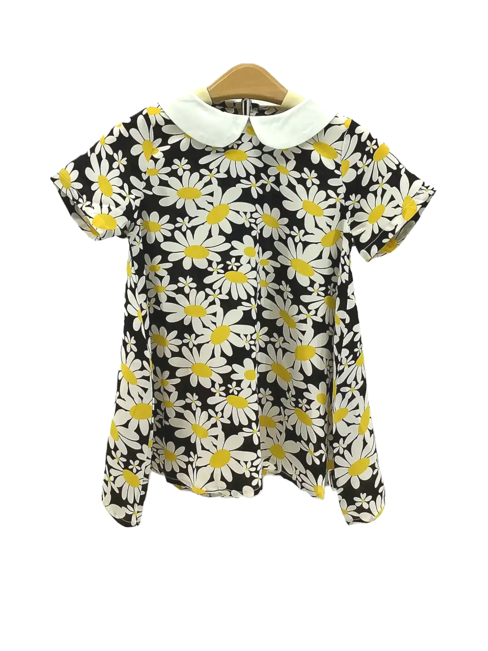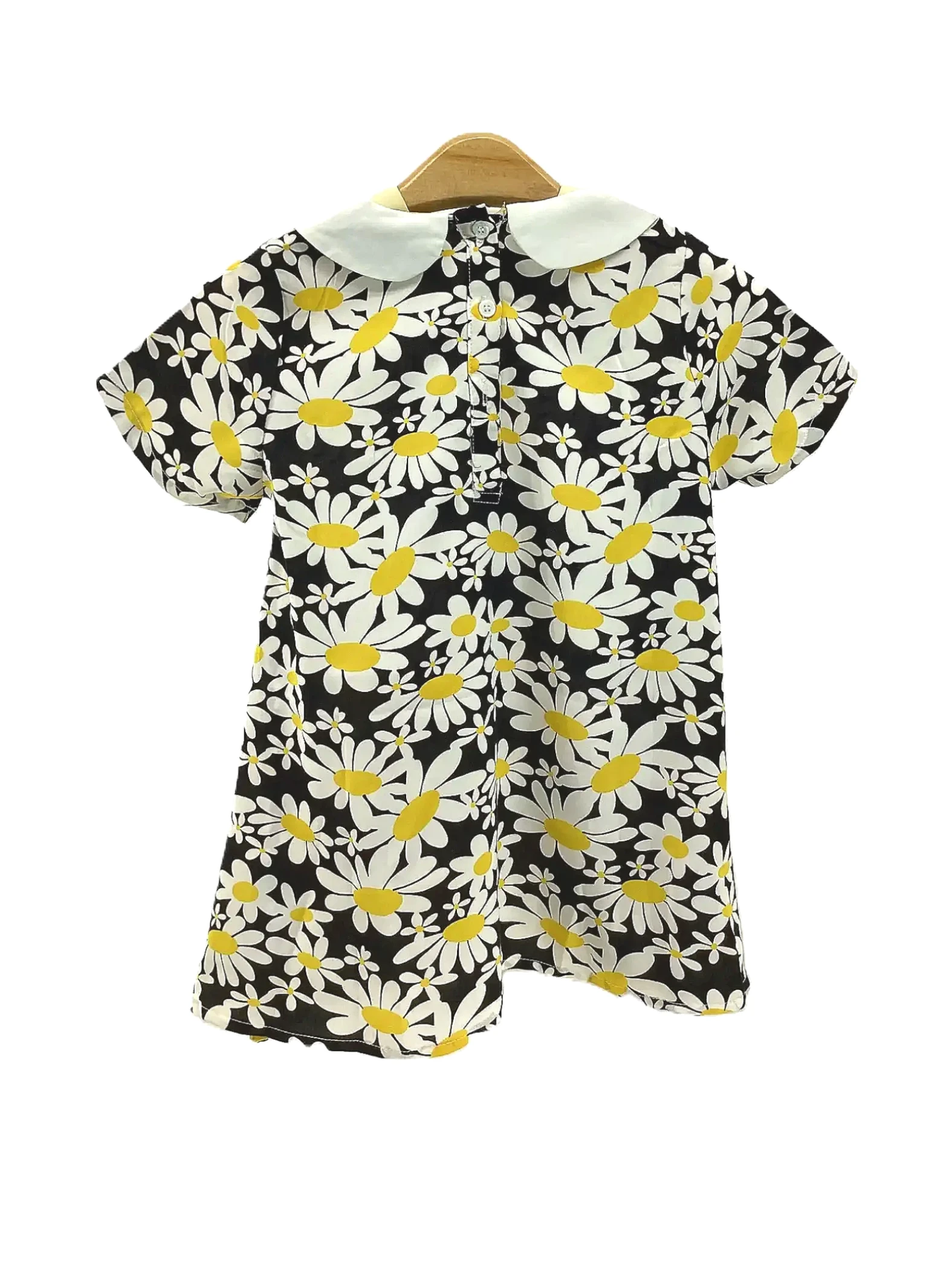 Chenchenma Toddler Girls' yellow and white floral dress with a contrast doll collar, size 3T. Made: 100% Polyester.