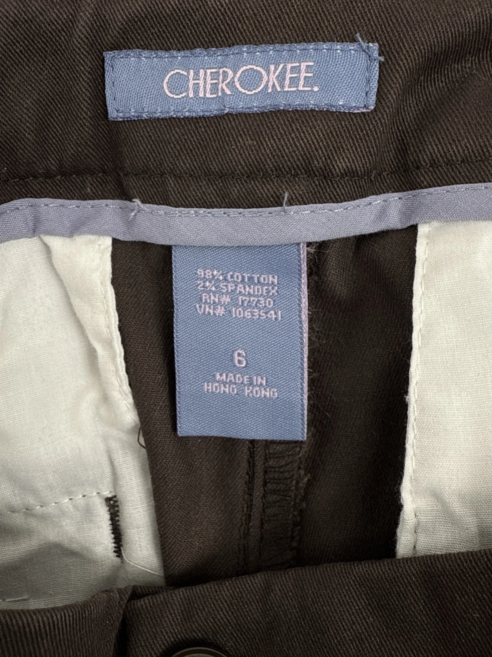 These pre-owned Cherokee dress pants offer a classic, versatile style. Made with a durable cotton blend in a rich brown hue, these pants are perfect for the fall season. Featuring a straight leg cut and a comfortable fit, these pants are a great addition to any wardrobe. Get a timeless look with these comfortable and stylish dress pants.