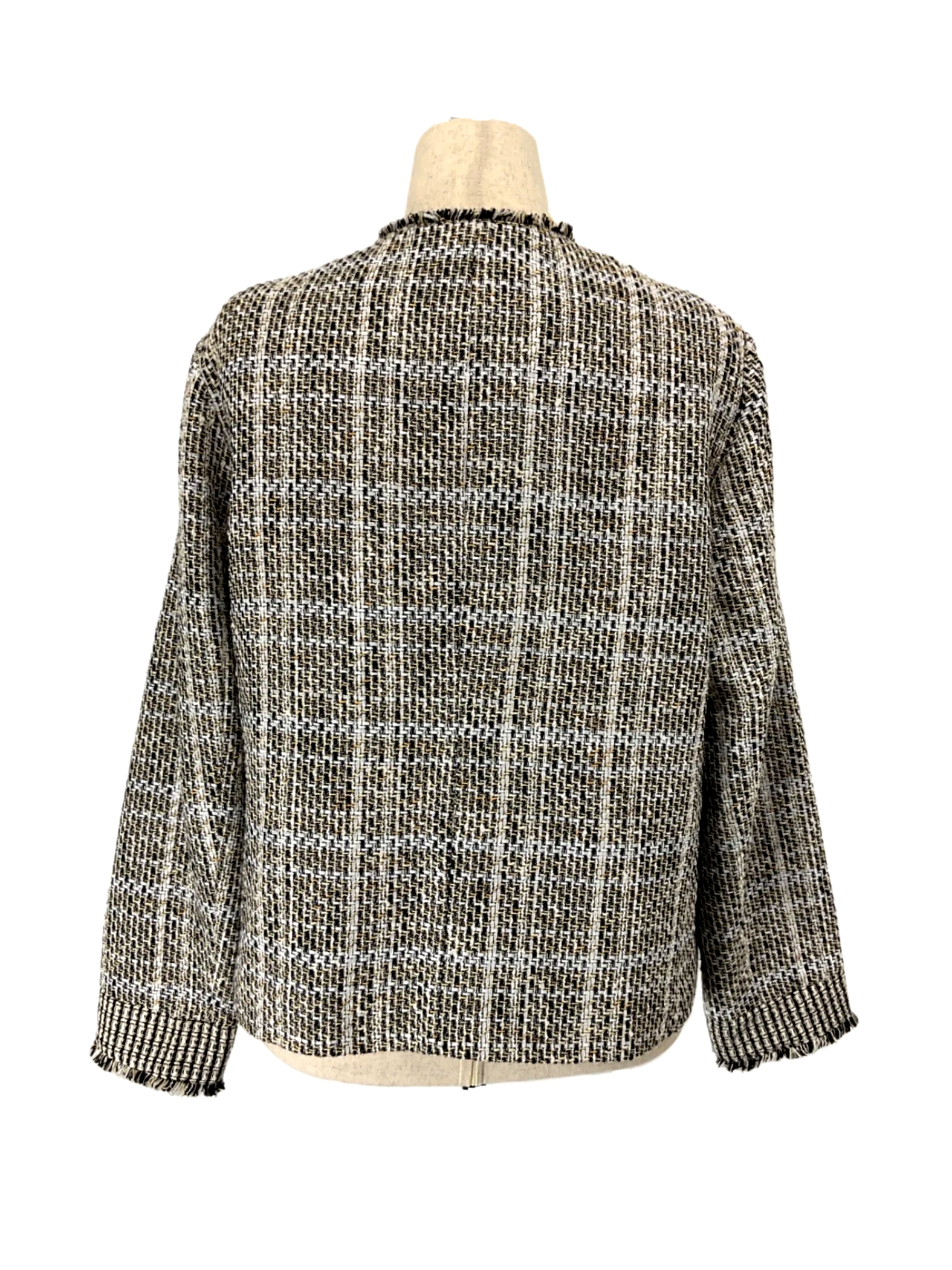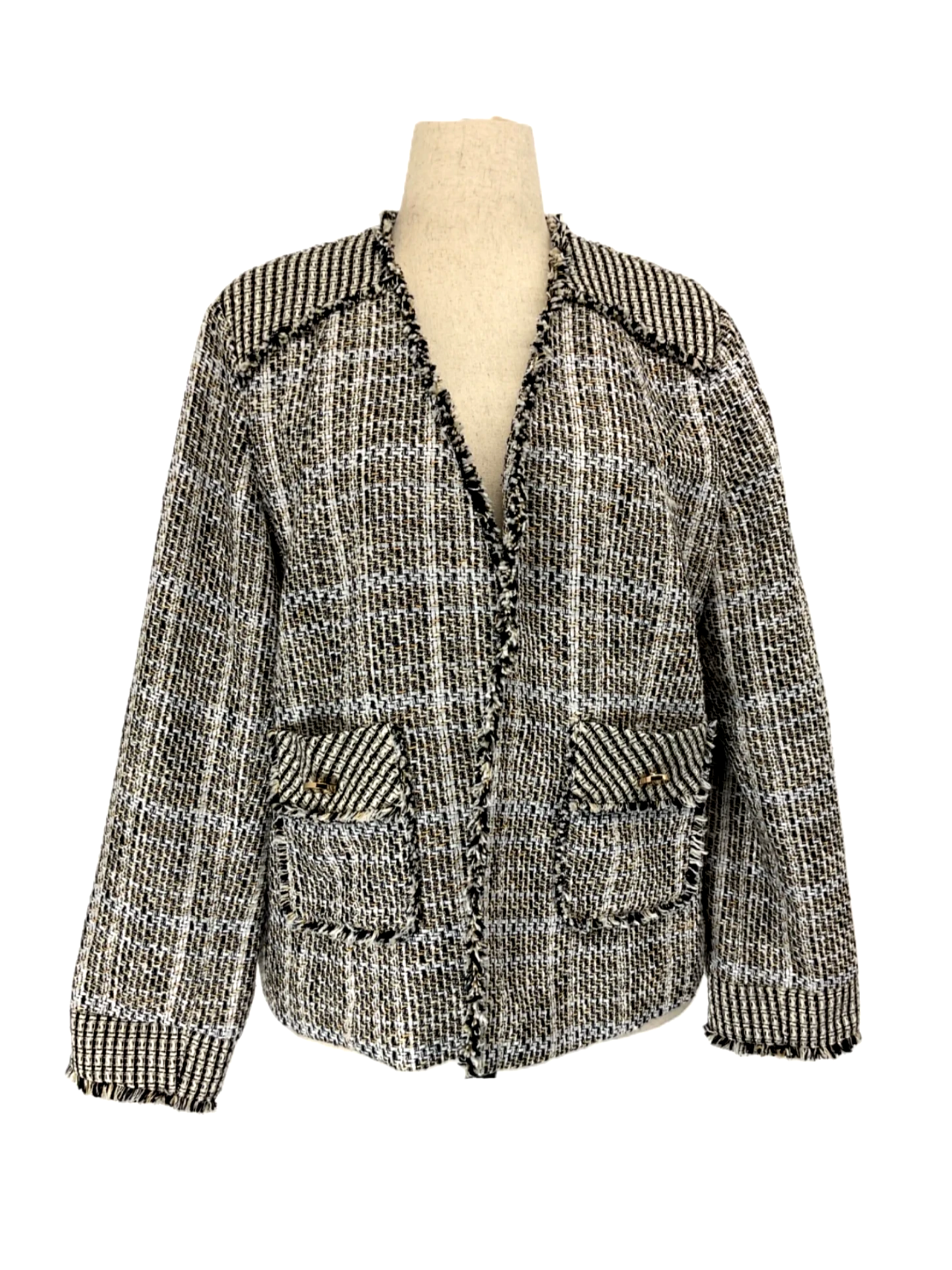 Elevate your wardrobe with this chic, pre-owned Chico's blazer. This stylish jacket features a sophisticated multicolor pattern and is crafted from a comfortable blend of cotton and polyester. Perfect for layering during the cooler seasons, this blazer offers both style and versatility. The classic design is complemented by a flattering fit, making it a timeless addition to any outfit. Excellent pre-loved condition, offering exceptional value. A great option for casual and formal wear.
