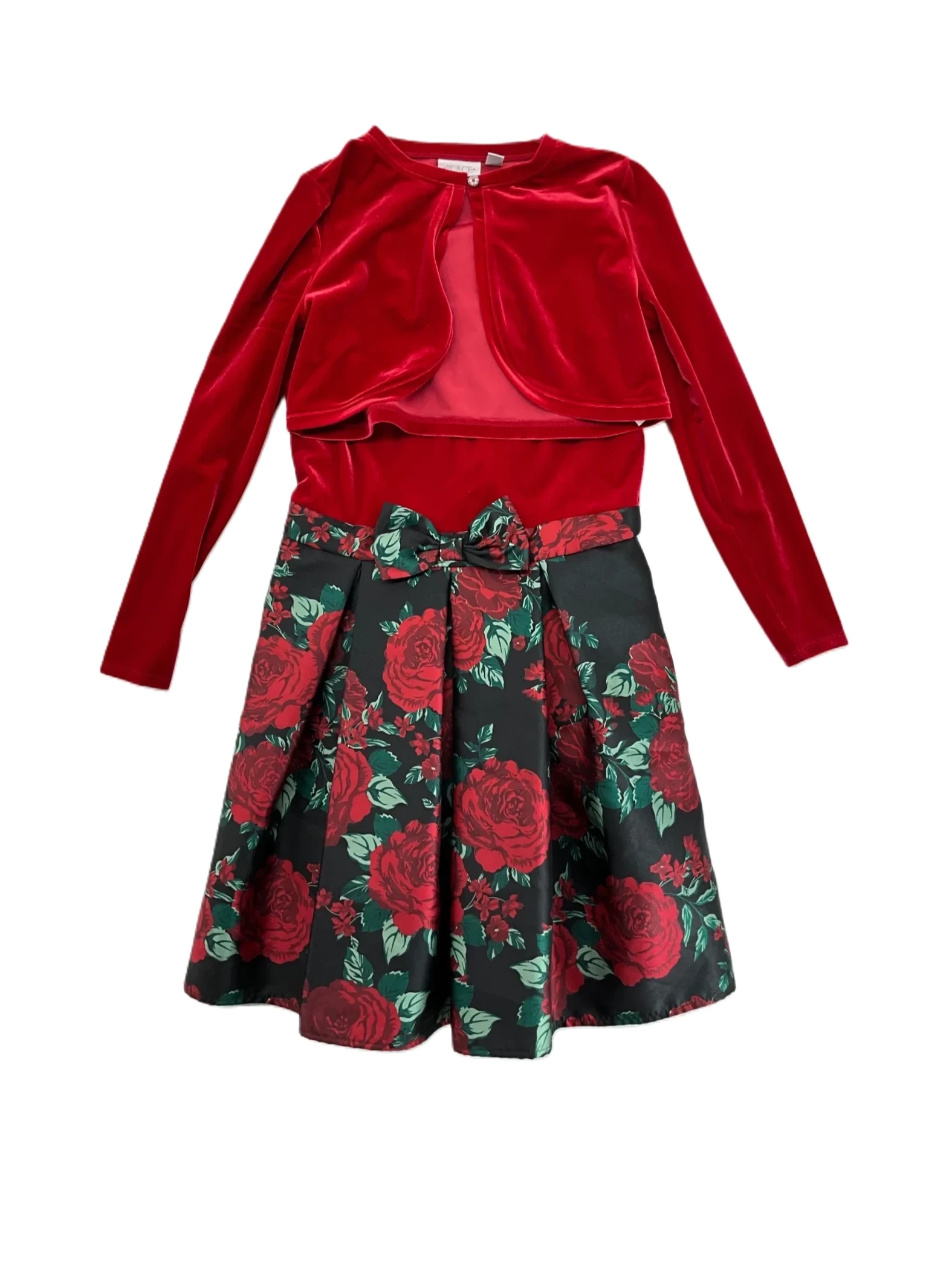 This is a dress and cardigan set from Children's Place. Size 16. Made: Polyester and Spandex.