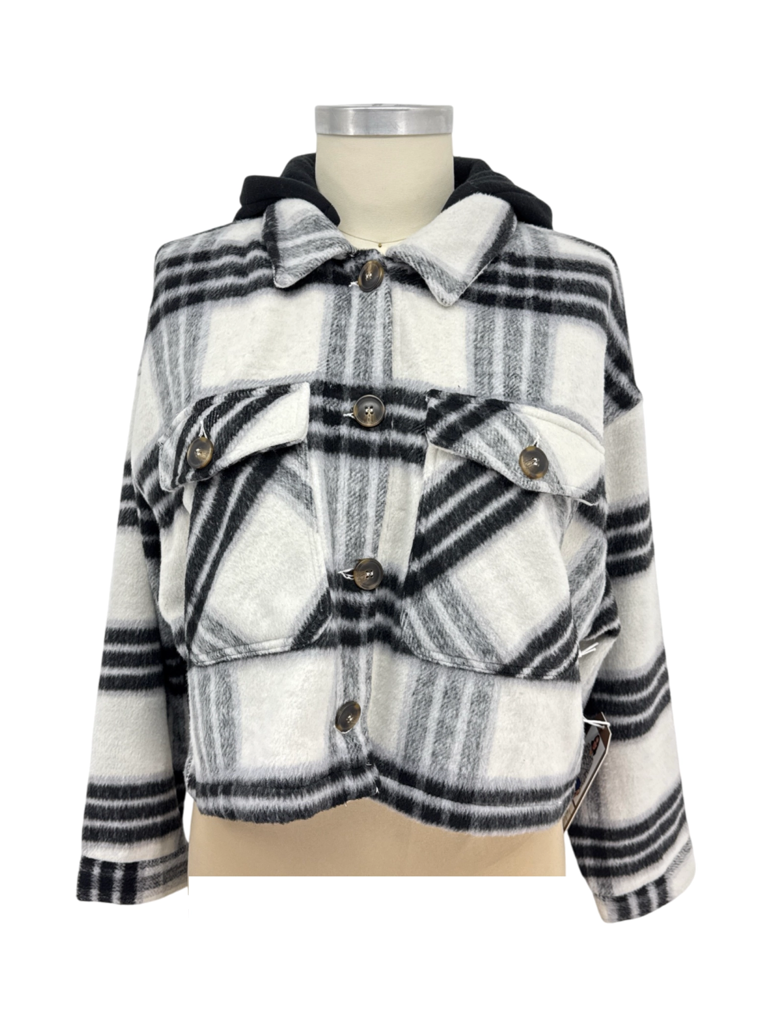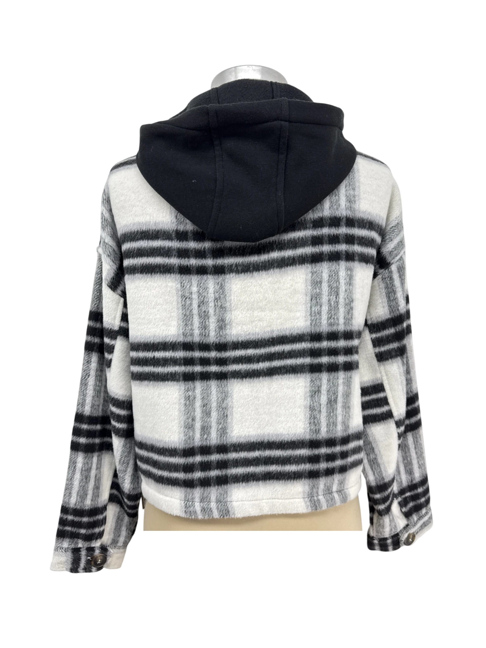 Elevate your outerwear collection with this stylish pre-owned hooded jacket from CI SONO. Featuring a classic plaid pattern in black and white, this jacket combines comfort and style. Crafted from durable polyester, it offers a cozy feel, perfect for cooler seasons. The hood adds an extra layer of warmth and a trendy touch. This versatile jacket is ideal for everyday wear, providing both fashion and function for any casual outfit.