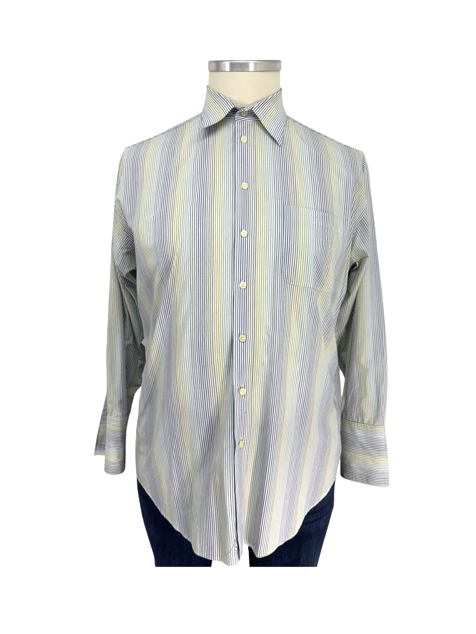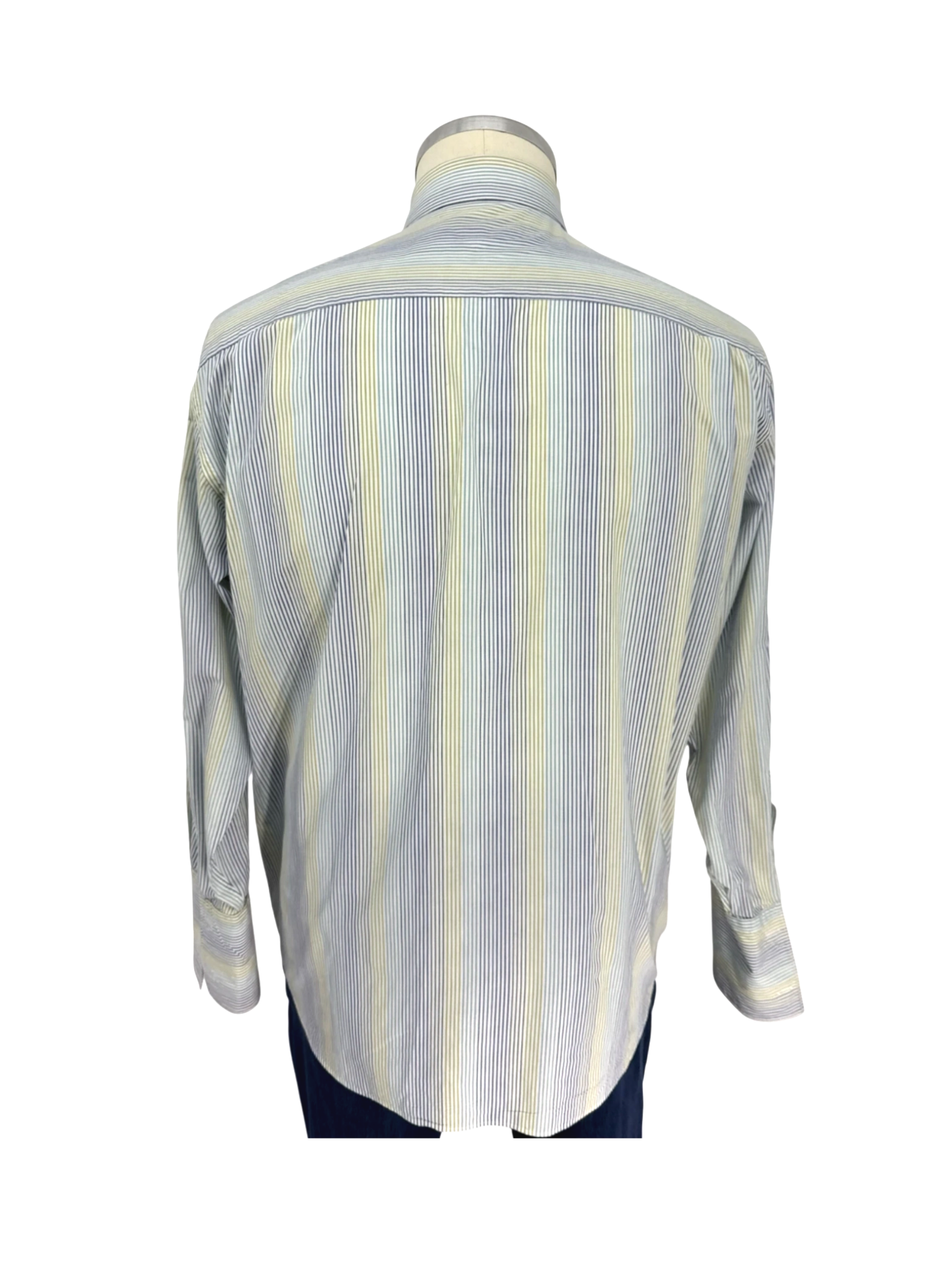Elevate your wardrobe with this pre-owned Claiborne men's long sleeve shirt, featuring a classic striped design. Crafted from 100% cotton, this shirt offers comfort and style. The button-up closure and collar neckline add a touch of sophistication, perfect for casual or semi-formal occasions. The multicolor stripes provide a versatile and timeless look, suitable for both spring and fall seasons. This X-Large shirt is a great addition to any stylish man's collection. - Elevate your wardrobe with this pre-owned Claiborne long sleeve shirt, perfect for men seeking a blend of style and comfort. Crafted from 100% cotton, this shirt features a classic striped pattern in multiple colors. The button-up closure and collared neckline offer a timeless appeal, making it suitable for both casual and semi-formal occasions. Its XL size ensures a comfortable fit, while the long sleeves provide versatility across seasons. A stylish choice for a sophisticated look, this shirt is an excellent addition to any fashion-conscious man's collection.