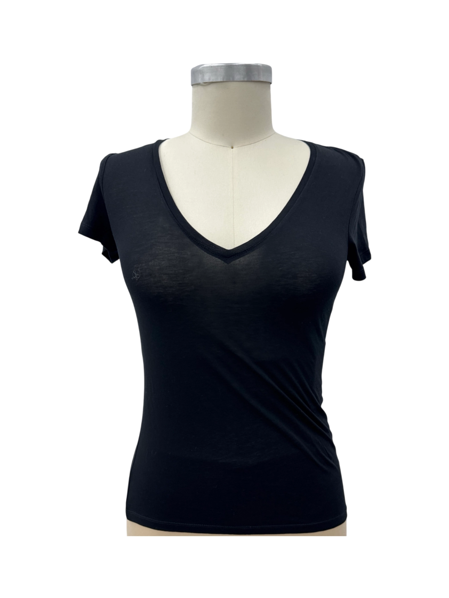 Elevate your basics with this pre-owned Club Monaco T-shirt. Crafted from a blend of cotton and modal for a soft and comfortable feel. This classic V-neck tee features short sleeves, making it perfect for warmer weather. Ideal for casual wear, this versatile top can be dressed up or down. A timeless addition to any wardrobe, offering both style and comfort. Made in India.