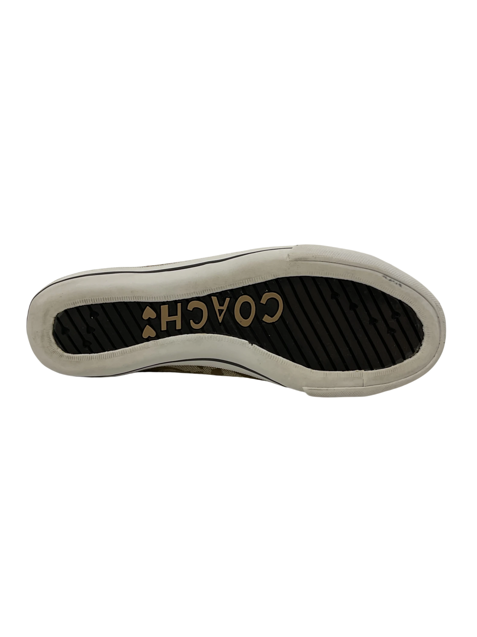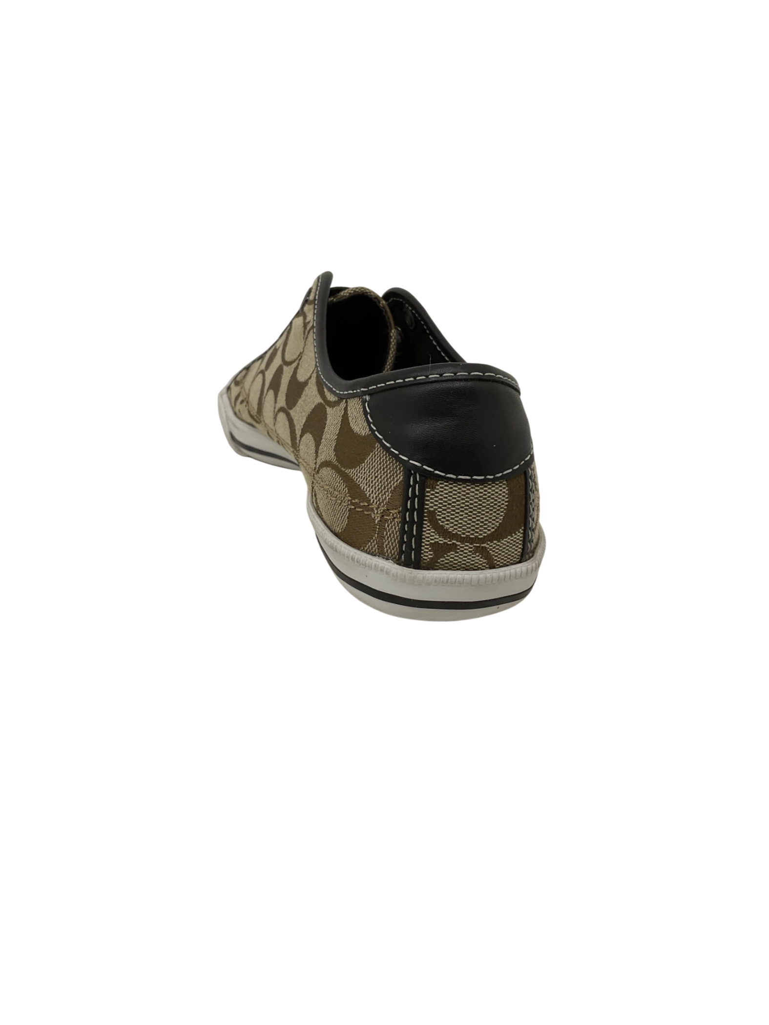 The coach women's Barrett brown signature lace-up low-top sneakers are available in size 9B.