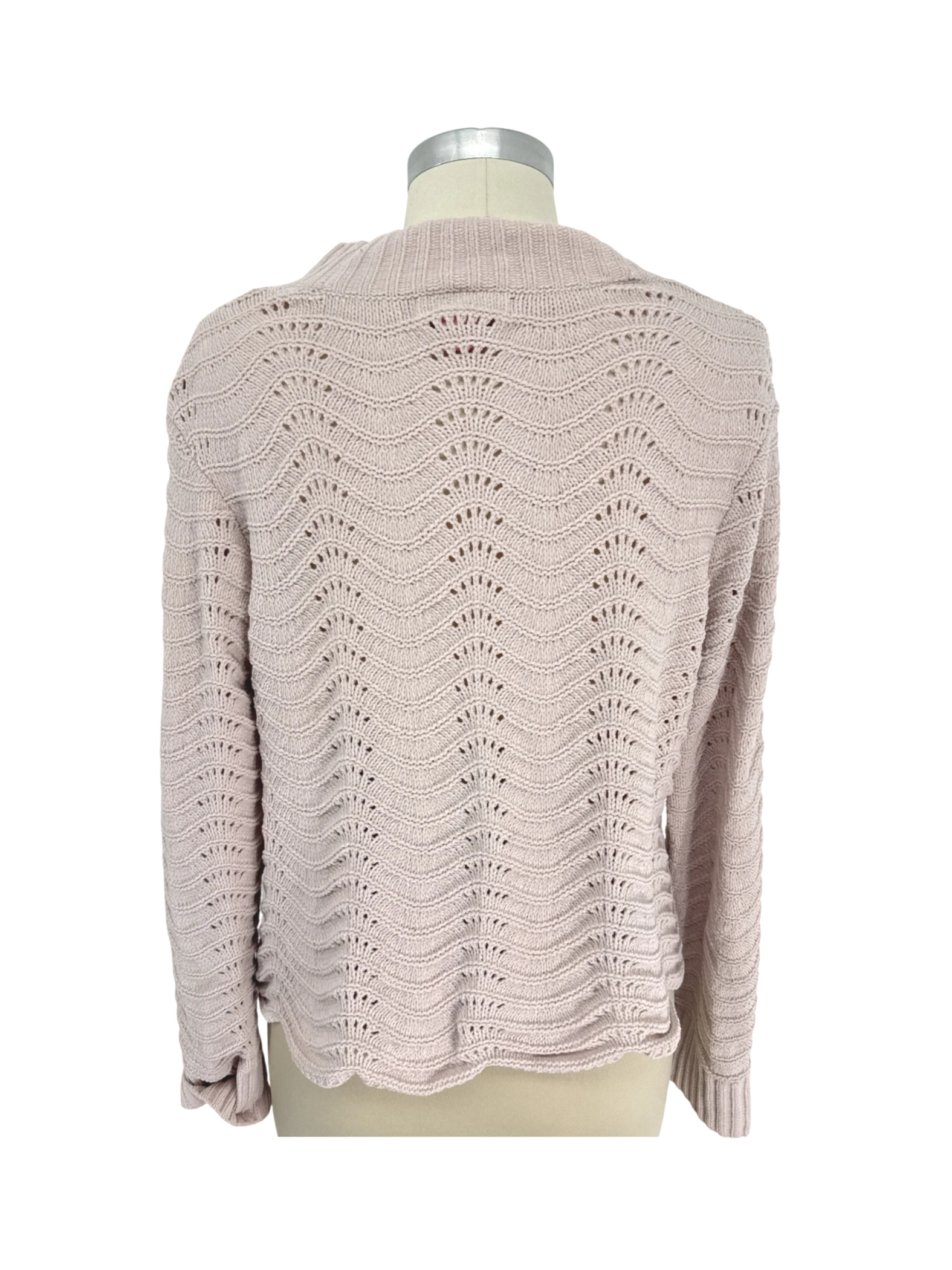This pre-owned COCO & SHAY sweater is a cozy addition to any wardrobe. Crafted from a soft chenille fabric, this sweater features a delicate knit design in a flattering pink hue. The round neckline and comfortable fit make it perfect for layering or wearing on its own. Ideal for cooler weather, this sweater offers both style and comfort. The medium size ensures a versatile fit.