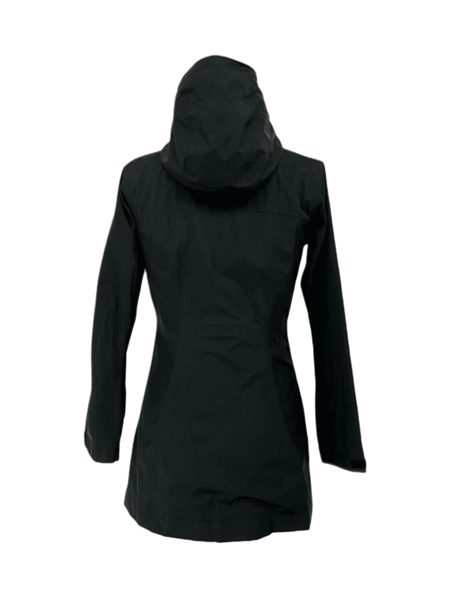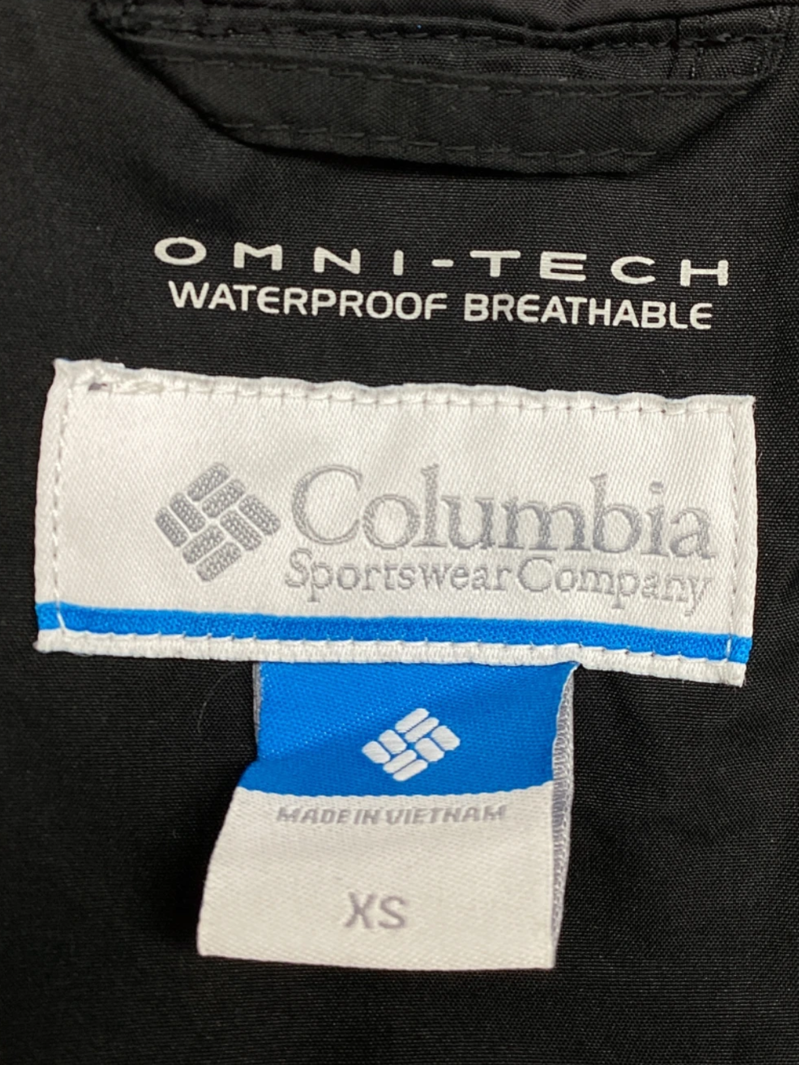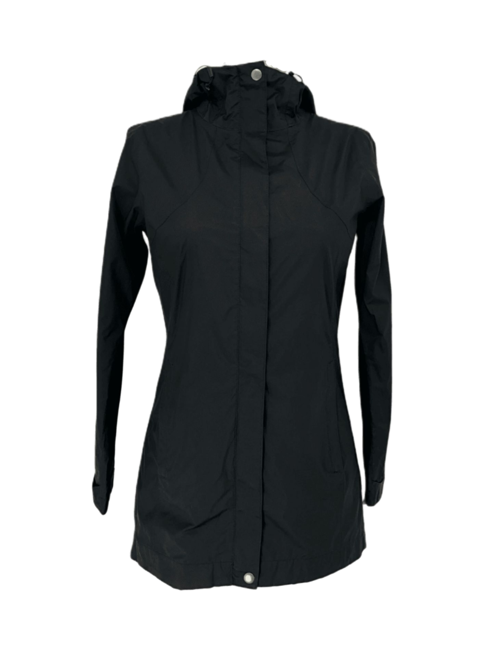 Columbia Black Hooded Zip & Button-Up Rain Coat, Womens Size XS.