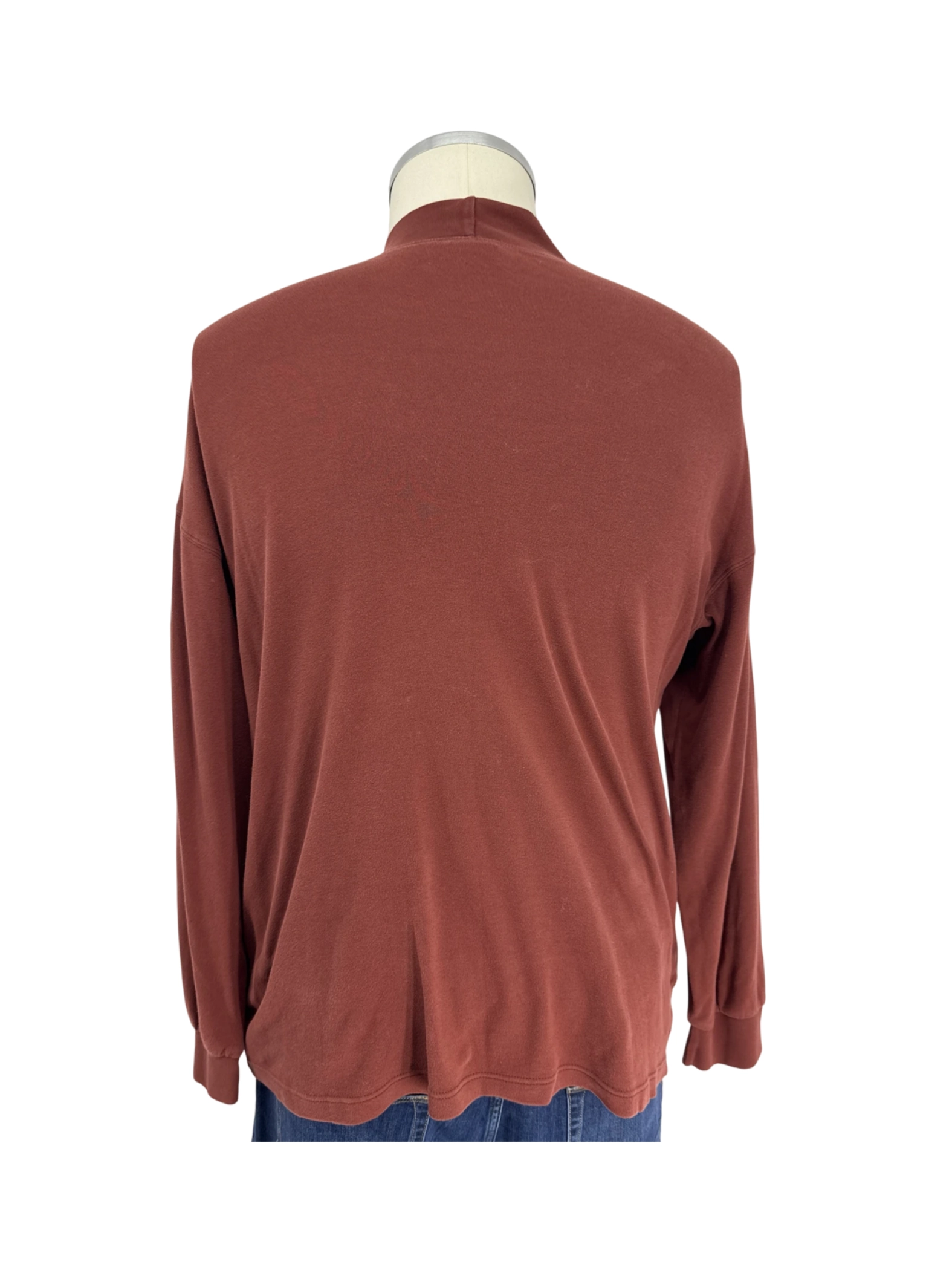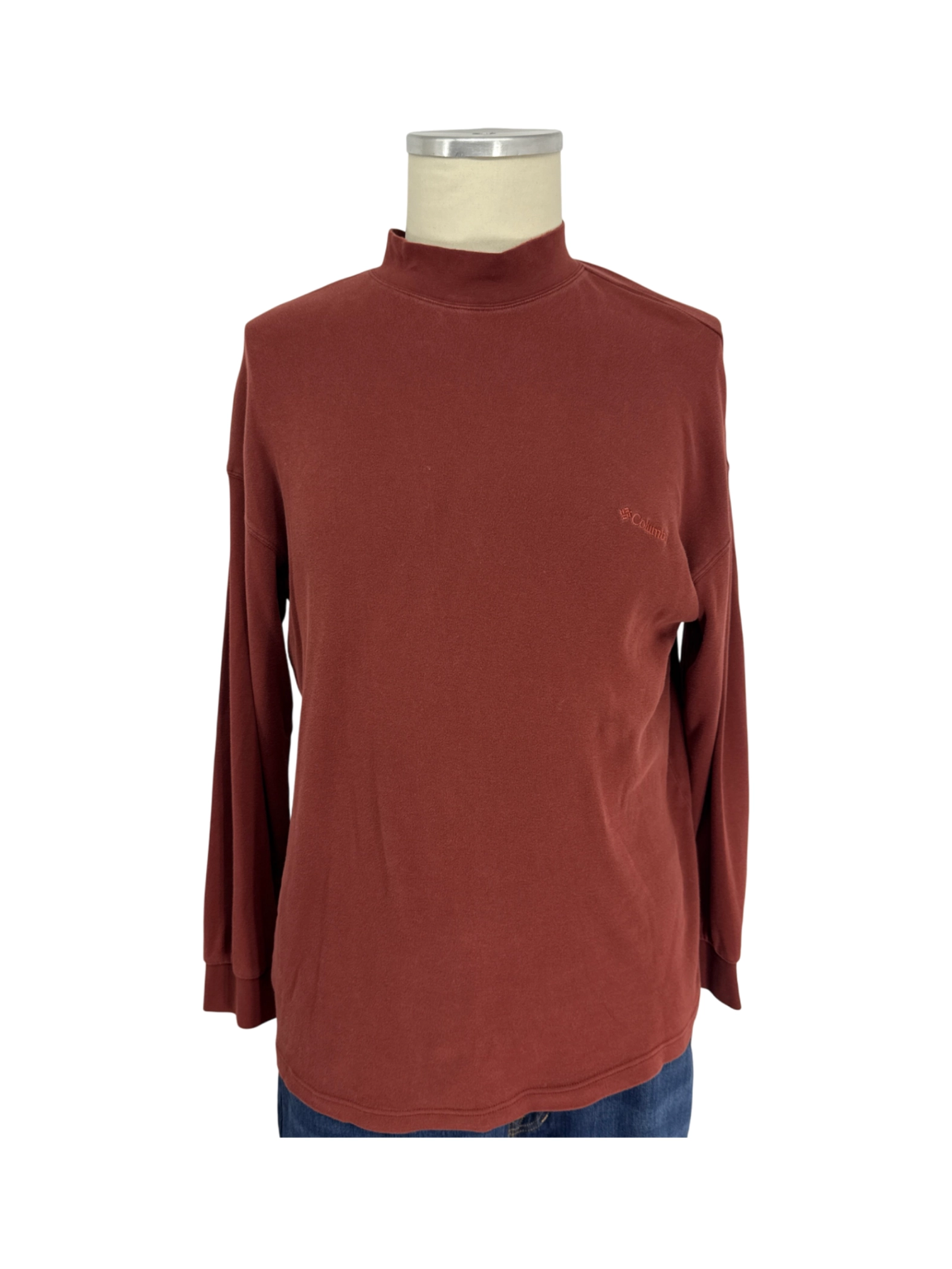 This pre-owned Columbia men's sweater is a stylish and comfortable addition to your wardrobe. Featuring a mock neck, long sleeves, and a classic pullover design, it's perfect for cooler weather. Made from 100% cotton, this sweater offers both warmth and breathability. The rich brown color adds versatility, easily pairing with jeans or chinos. Available in size XXL, this Columbia sweater is ideal for casual outings or layering. Get ready to experience style and comfort with this timeless piece.