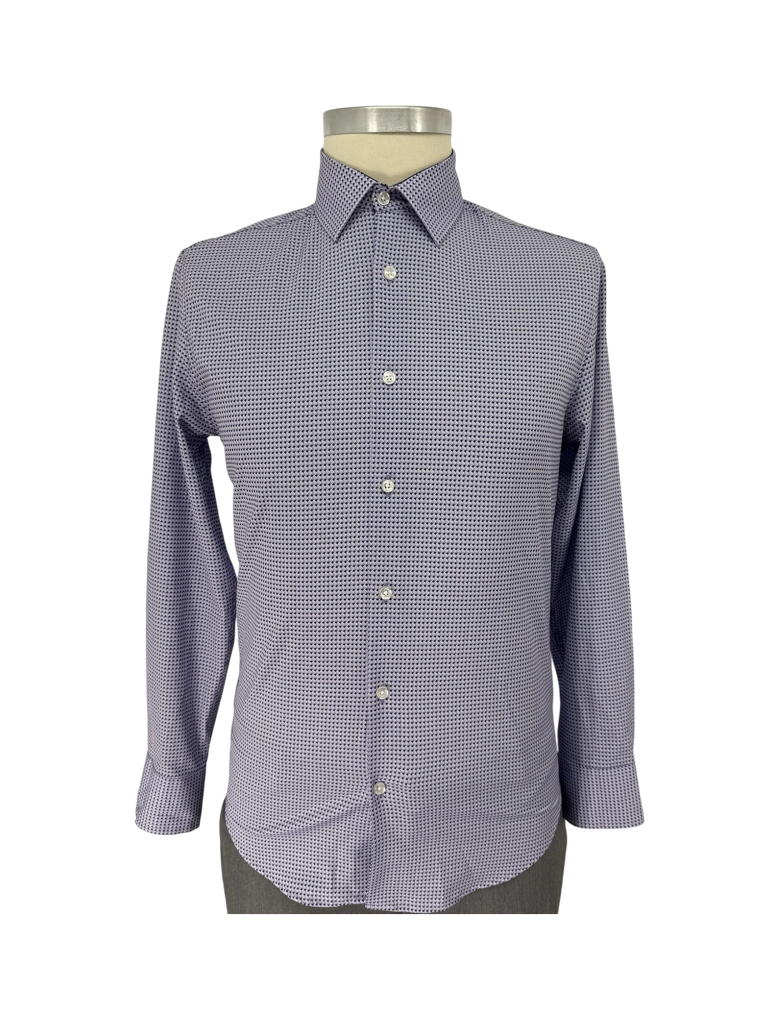 Elevate your wardrobe with this stylish CON.STRUCT long sleeve shirt. This pre-owned shirt features a classic collar and a modern slim fit, perfect for any occasion. The shirt is crafted from a comfortable polyester and spandex blend, ensuring a great fit and all-day comfort. Featuring a subtle dot pattern, this shirt is a versatile addition to your collection. Pair it with jeans or chinos for a polished look.