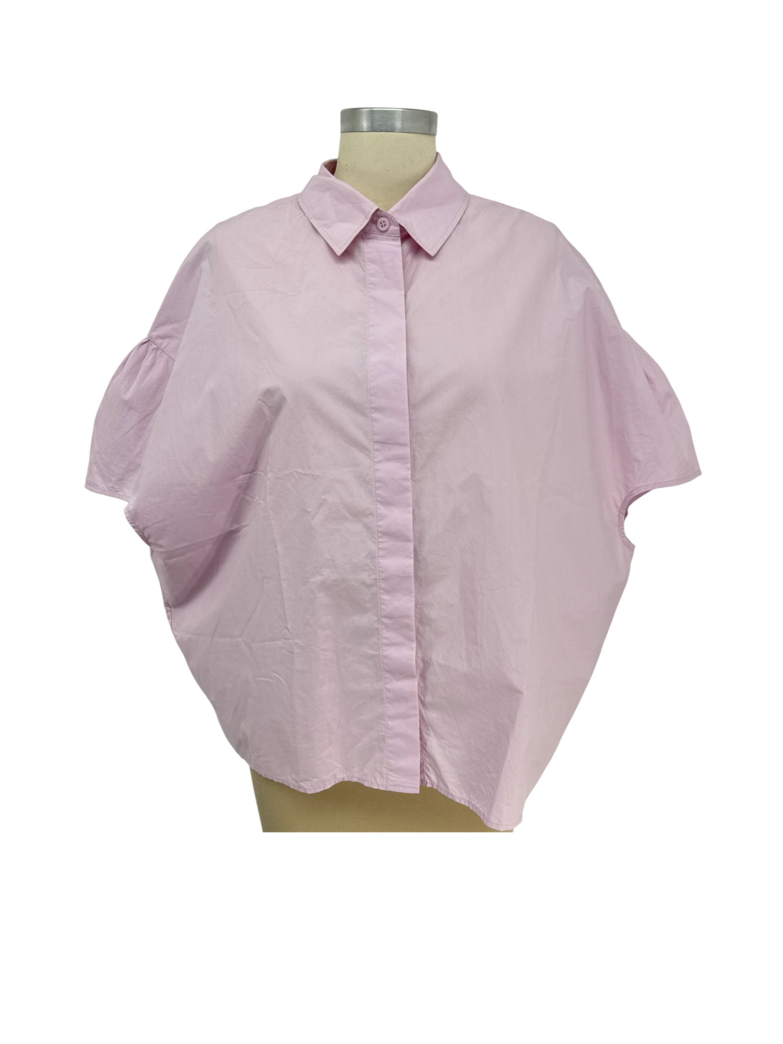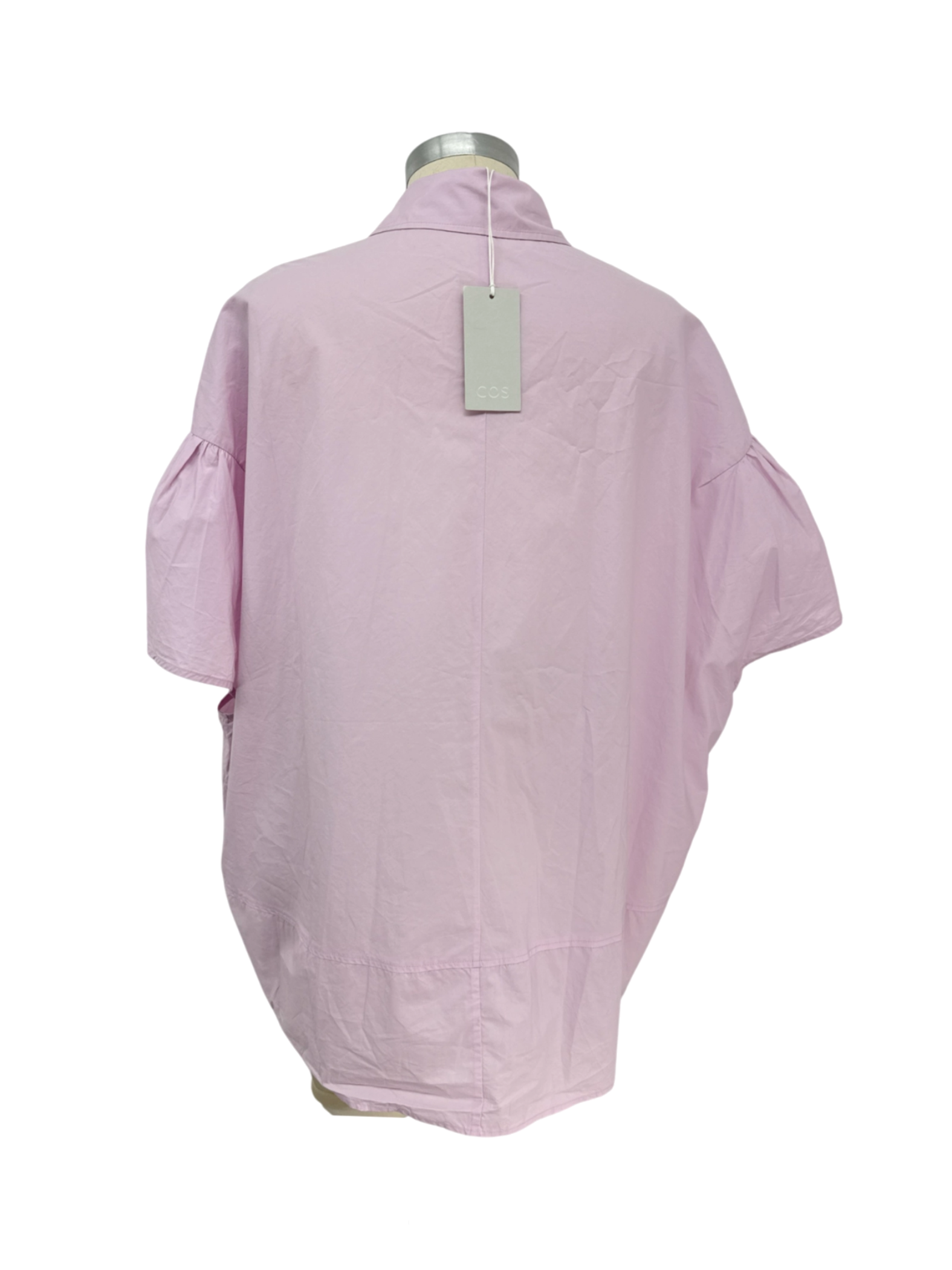 Elevate your wardrobe with this stylish pre-owned COS pink blouse. Made from a soft and breathable cotton, this blouse is perfect for warm weather. Featuring a classic collar and short sleeves, it offers a chic, relaxed fit. This versatile top can be dressed up with a skirt or dressed down with jeans, making it a must-have for any fashion-forward individual.