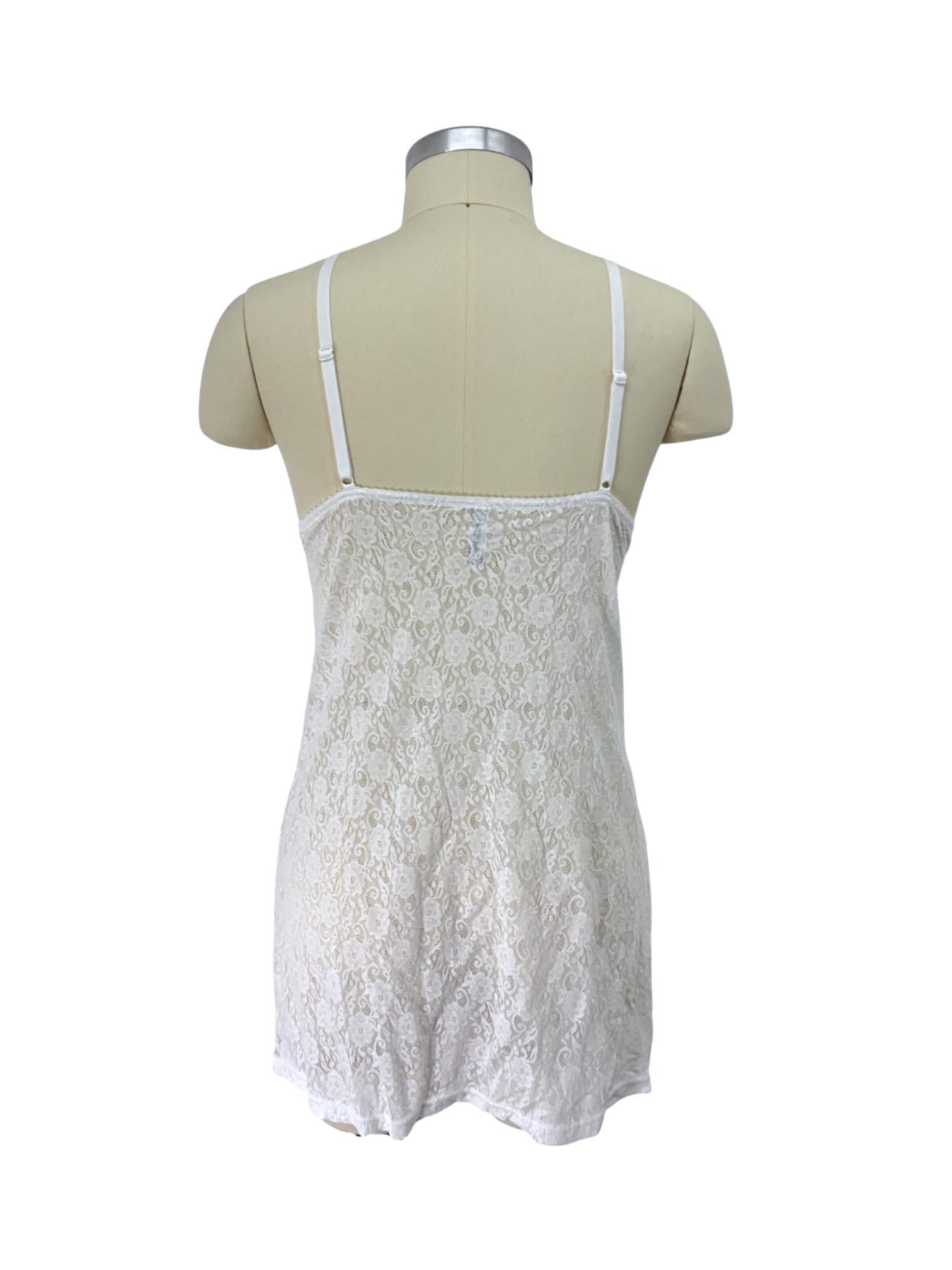 Pullover style babydoll lace nightgown with adjustable straps.