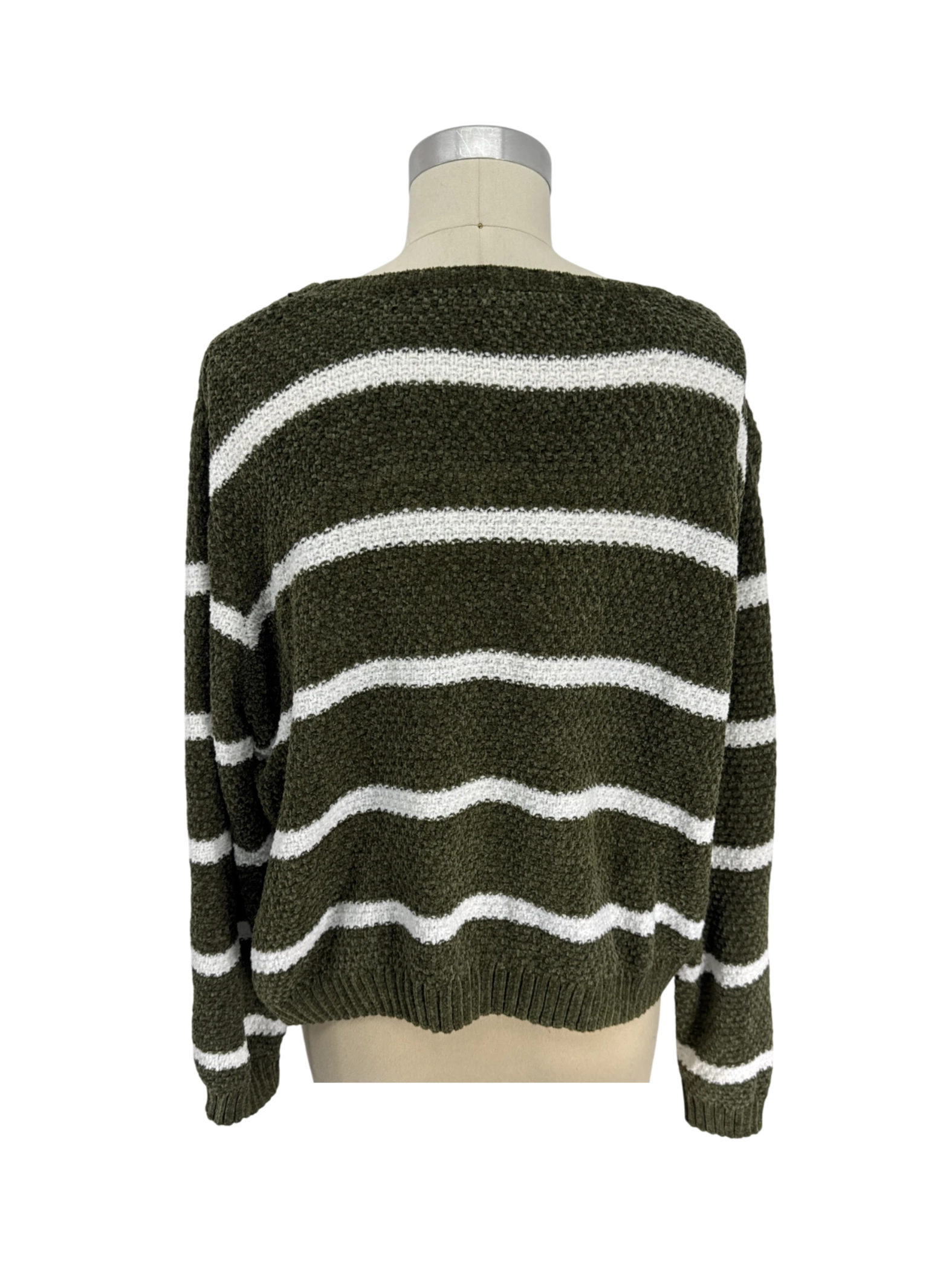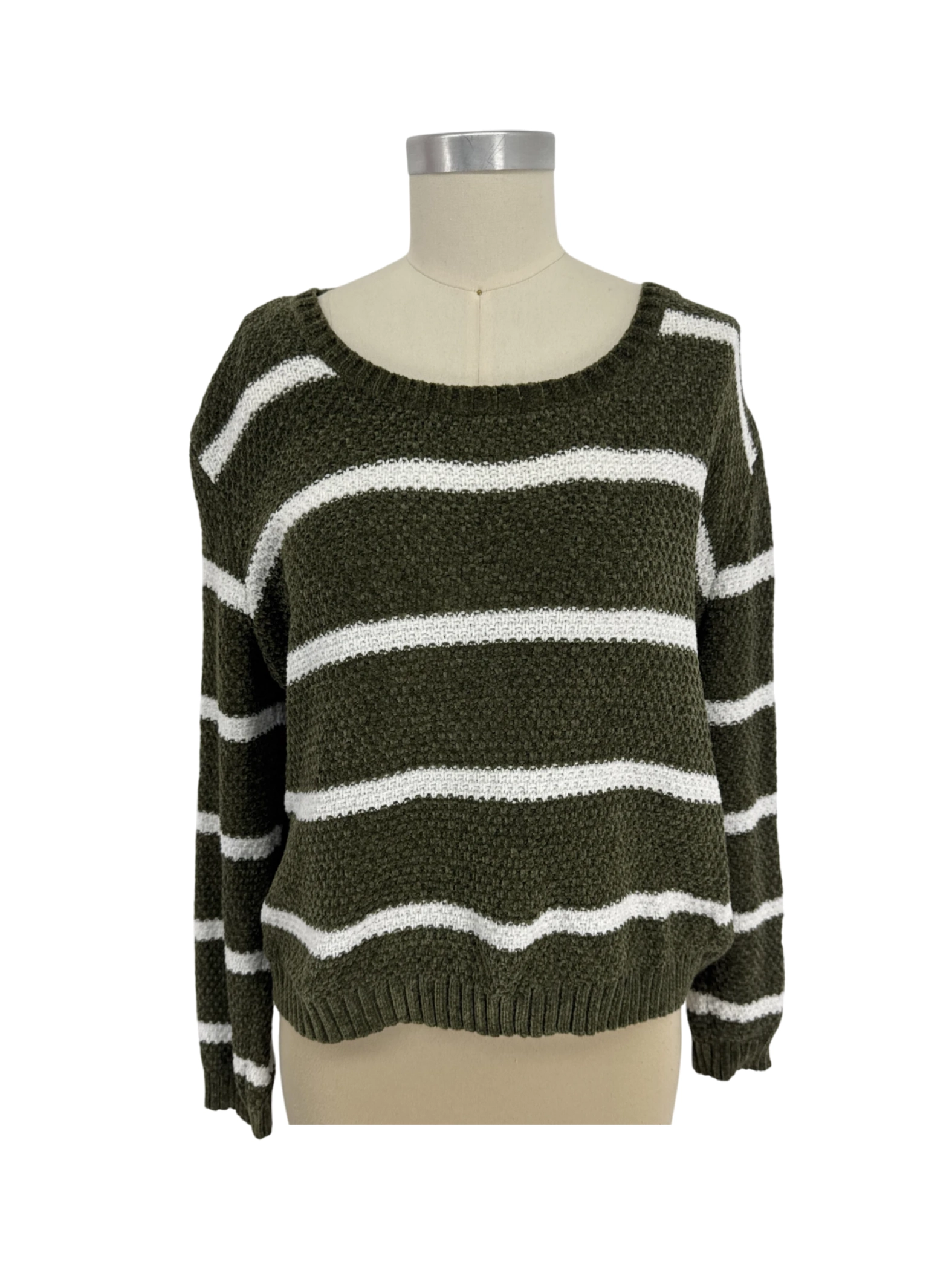 This pre-owned Cotton Emporium sweater is a cozy and stylish addition to any wardrobe. Featuring a classic round neck and a striking green and white striped pattern, it's perfect for colder seasons. The sweater is crafted from a blend of polyester and viscose, ensuring both comfort and durability. Its size S makes it an ideal fit for many. This sweater is a versatile piece that can be dressed up or down, making it a great choice for everyday wear. Get ready to embrace warmth and style!