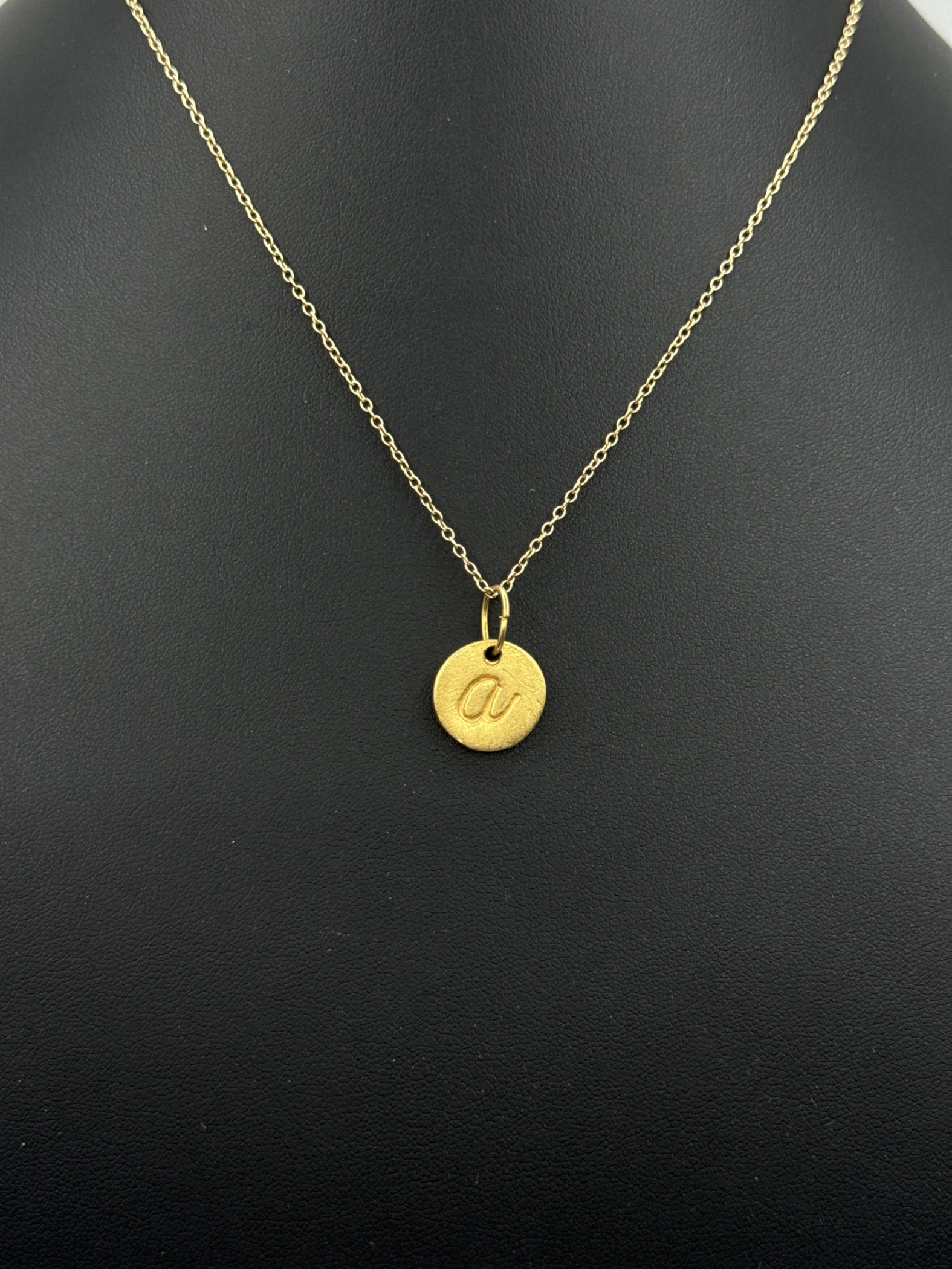 Women's 16.5in necklace with a cursive lowercase 'a' engravement.
