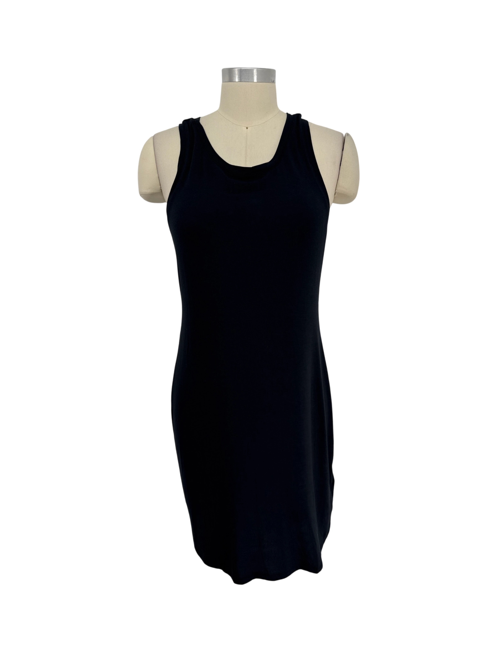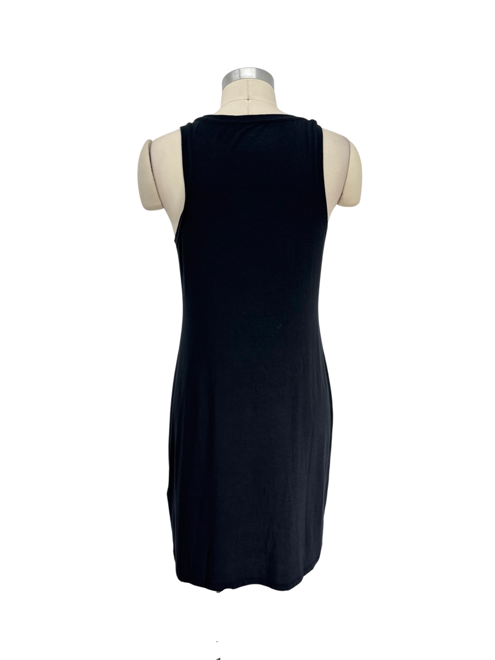 This stylish, pre-owned Daily Ritual dress is a versatile addition to any wardrobe. Featuring a sleek black design, this bodycon dress is perfect for warm weather. Made from a comfortable blend of viscose and elastane, it offers a flattering fit and easy wear. The sleeveless design and mini skirt length make it ideal for casual outings or layering for a more dressed-up look. A must-have for your collection!