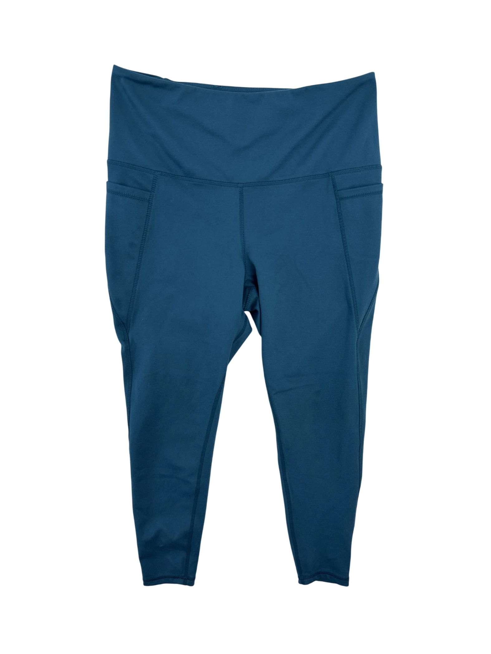 These Danskin activewear leggings are a stylish and comfortable choice for any workout or casual wear. Made from a blend of polyester and spandex, these leggings offer a stretchy fit and provide support. The deep blue color adds a touch of elegance, and the size L ensures a comfortable fit. Perfect for yoga, running, or everyday activities. Second-hand item.