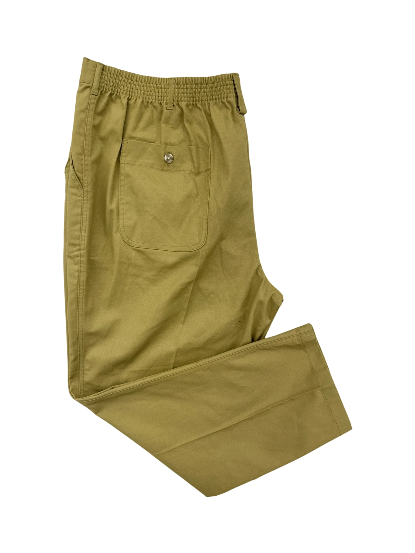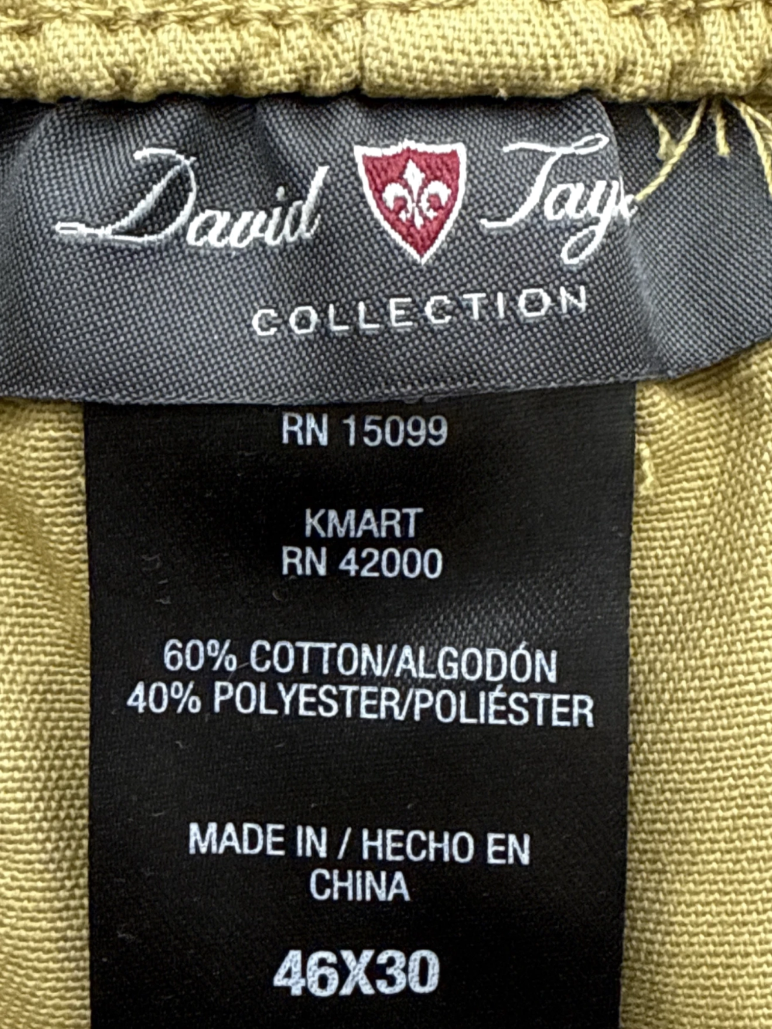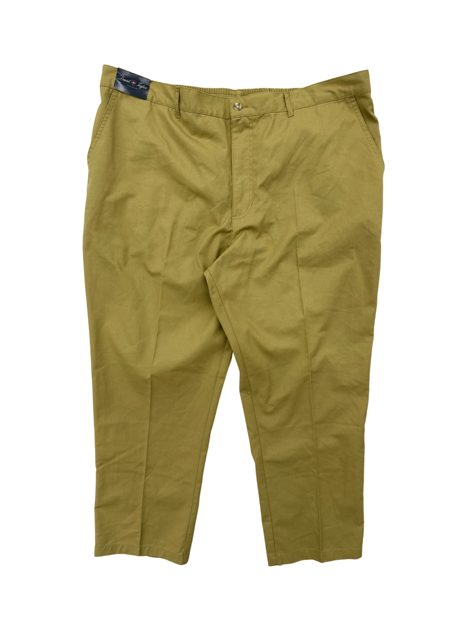 These pre-owned David Taylor Chino pants are a stylish and versatile addition to any wardrobe. Crafted from a comfortable cotton blend, these pants offer a classic straight leg fit, perfect for a variety of occasions. The khaki color makes them easy to pair with different tops, while the timeless design ensures they'll remain a staple in your closet for years to come. Durable and well-maintained, these pants are a great value for their quality and style. - Elevate your wardrobe with these pre-owned David Taylor Collection pants. These stylish dress pants in a versatile khaki hue are perfect for various occasions, featuring a classic straight-leg cut. They're designed for comfort and style, making them a great addition to your collection. The pants are made of a comfortable cotton and polyester blend and come in a size 46x30.