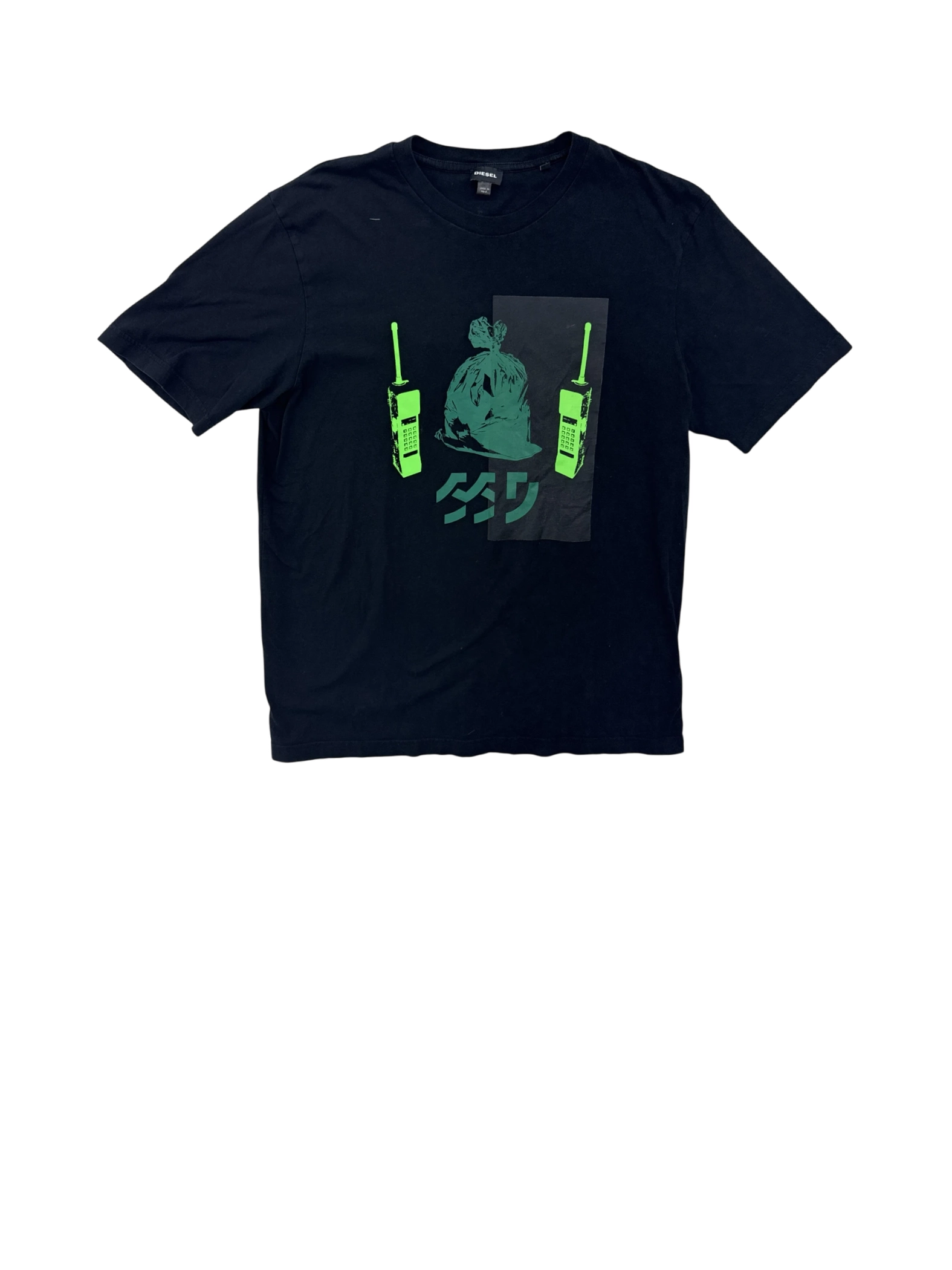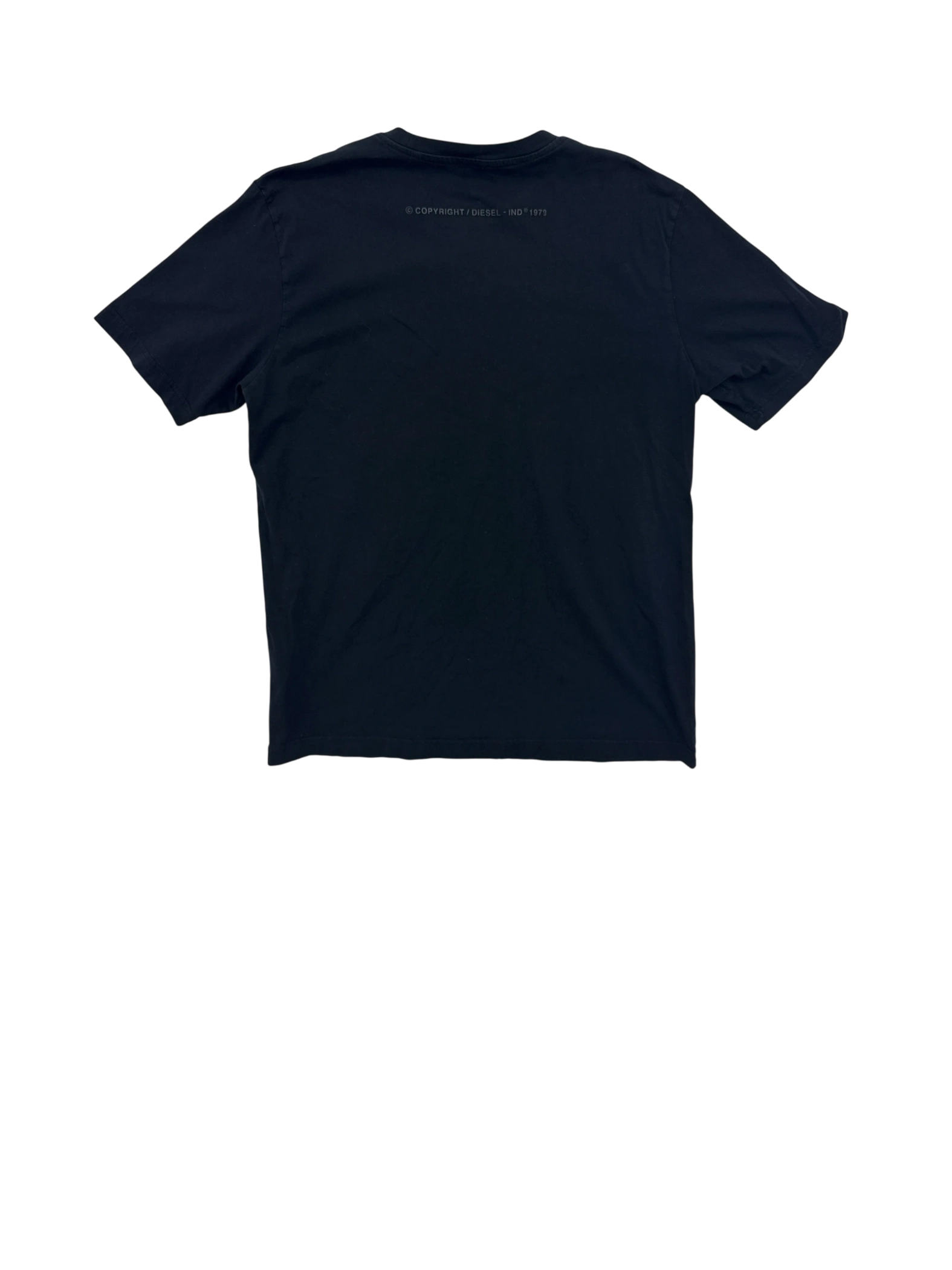 This pre-owned Diesel men's tank top is a stylish addition to any wardrobe. Made from 100% cotton, it offers both comfort and durability. The shirt features a crew neck and short sleeves. This unique piece showcases a striking graphic on the front, adding an urban and modern aesthetic. The classic black color makes it versatile for pairing with various outfits. Perfect for a casual day out or layering, this Diesel tank top is a statement piece for the fashion-forward individual.