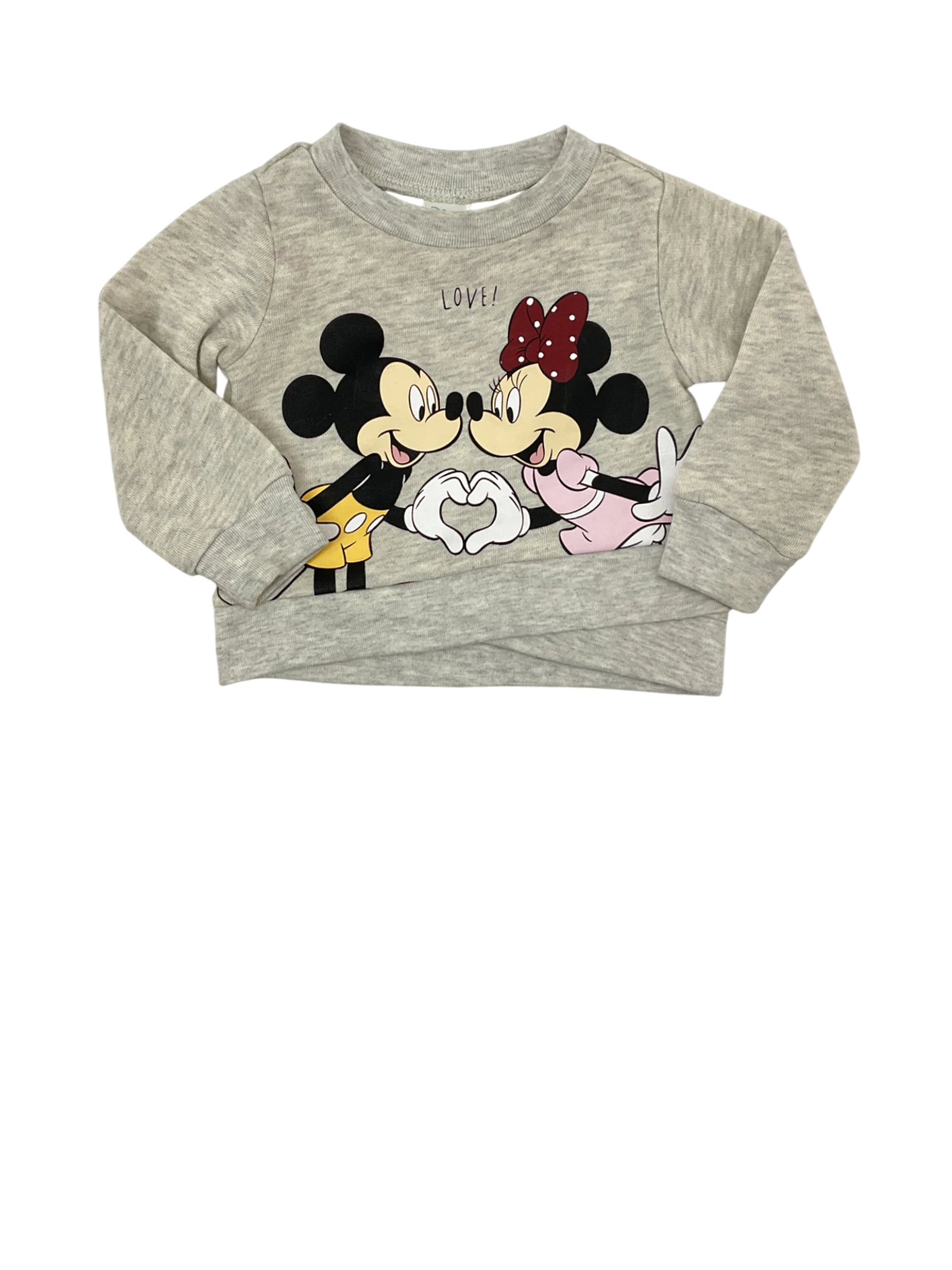 Disney gray sweater for girls with Mickey and Minnie Mouse print, long sleeves, and round neck, in size 3-6 months.