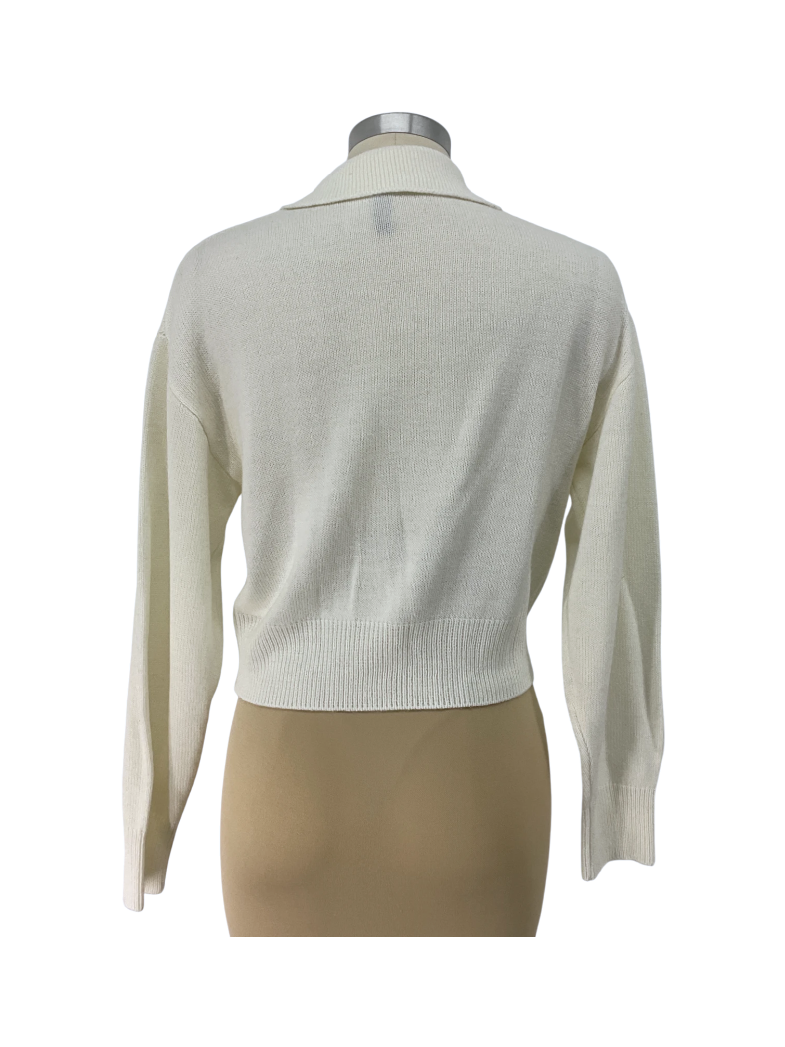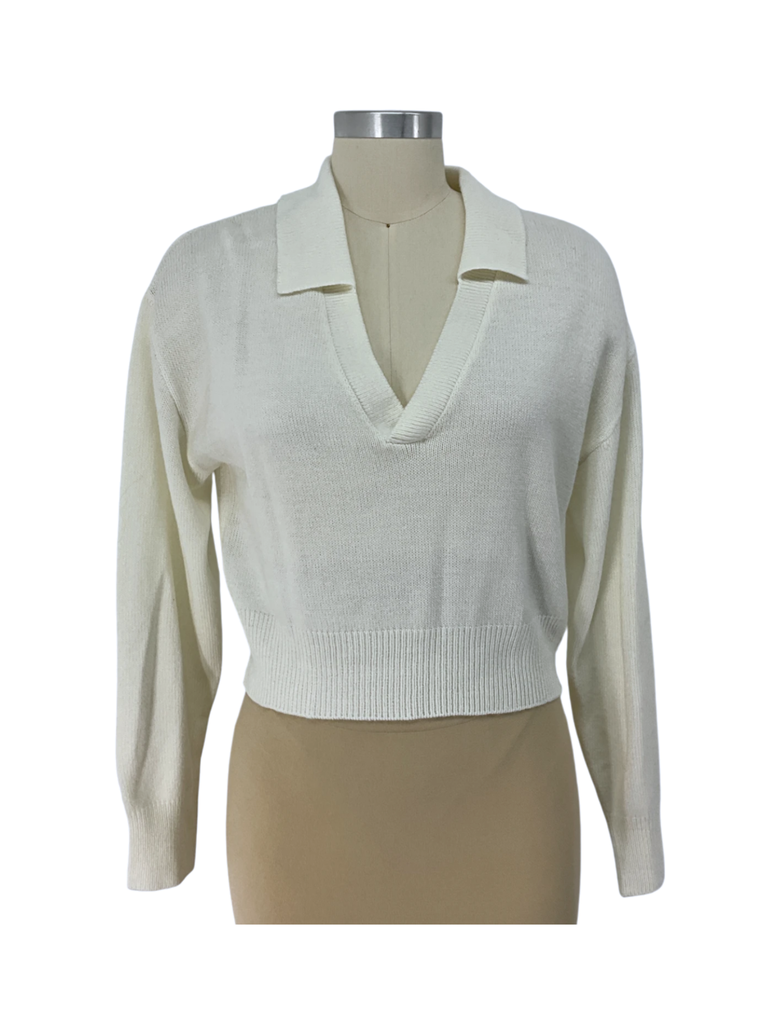 Divided H&M Womens Cropped Collared V-Neck Ivory Sweater Size M.