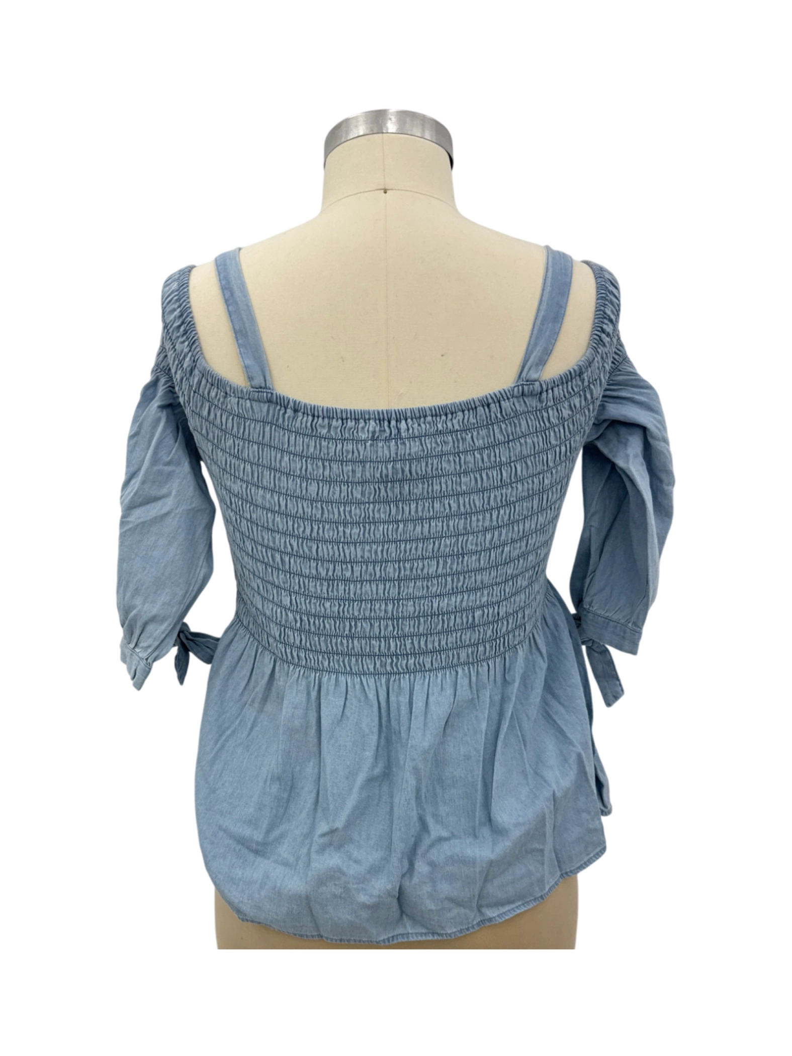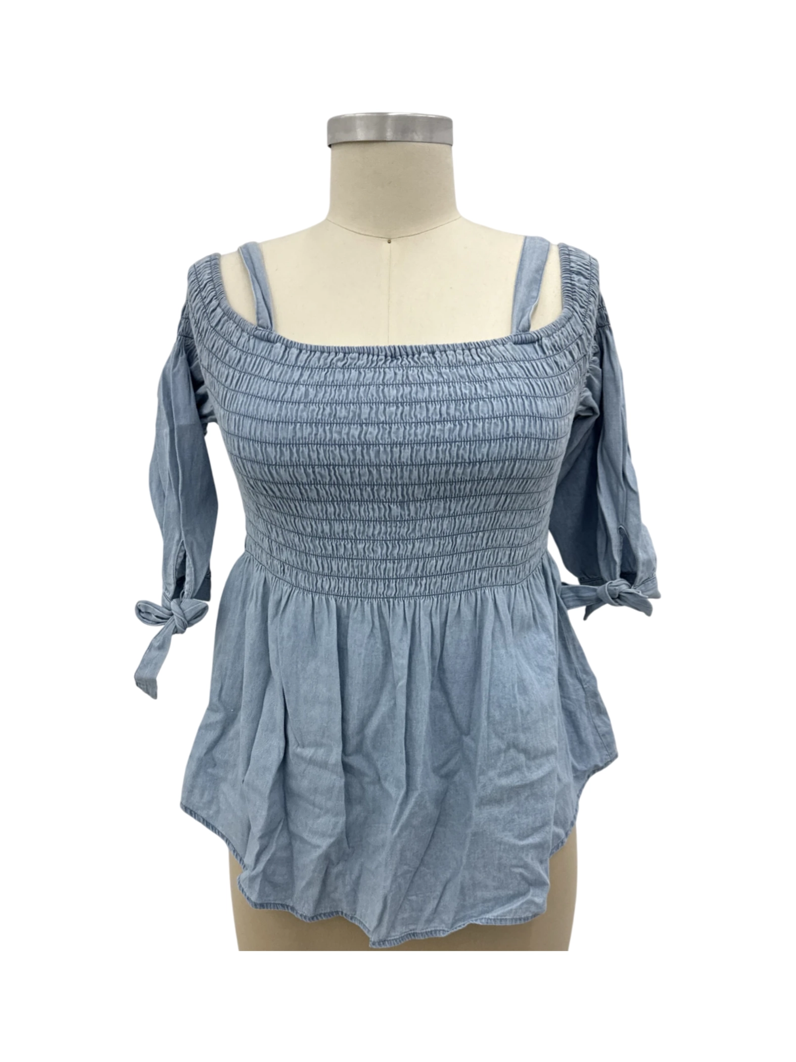 Elevate your wardrobe with this stylish, pre-owned DIZZIRE top. Crafted from comfortable 100% cotton, this top features a flattering square neckline and short sleeves with tie details. The smocked bodice adds a touch of sophistication. Perfect for warm weather, this versatile piece is a great addition to any outfit, offering both comfort and chic style. Its easy slip-on closure makes it ideal for everyday wear.