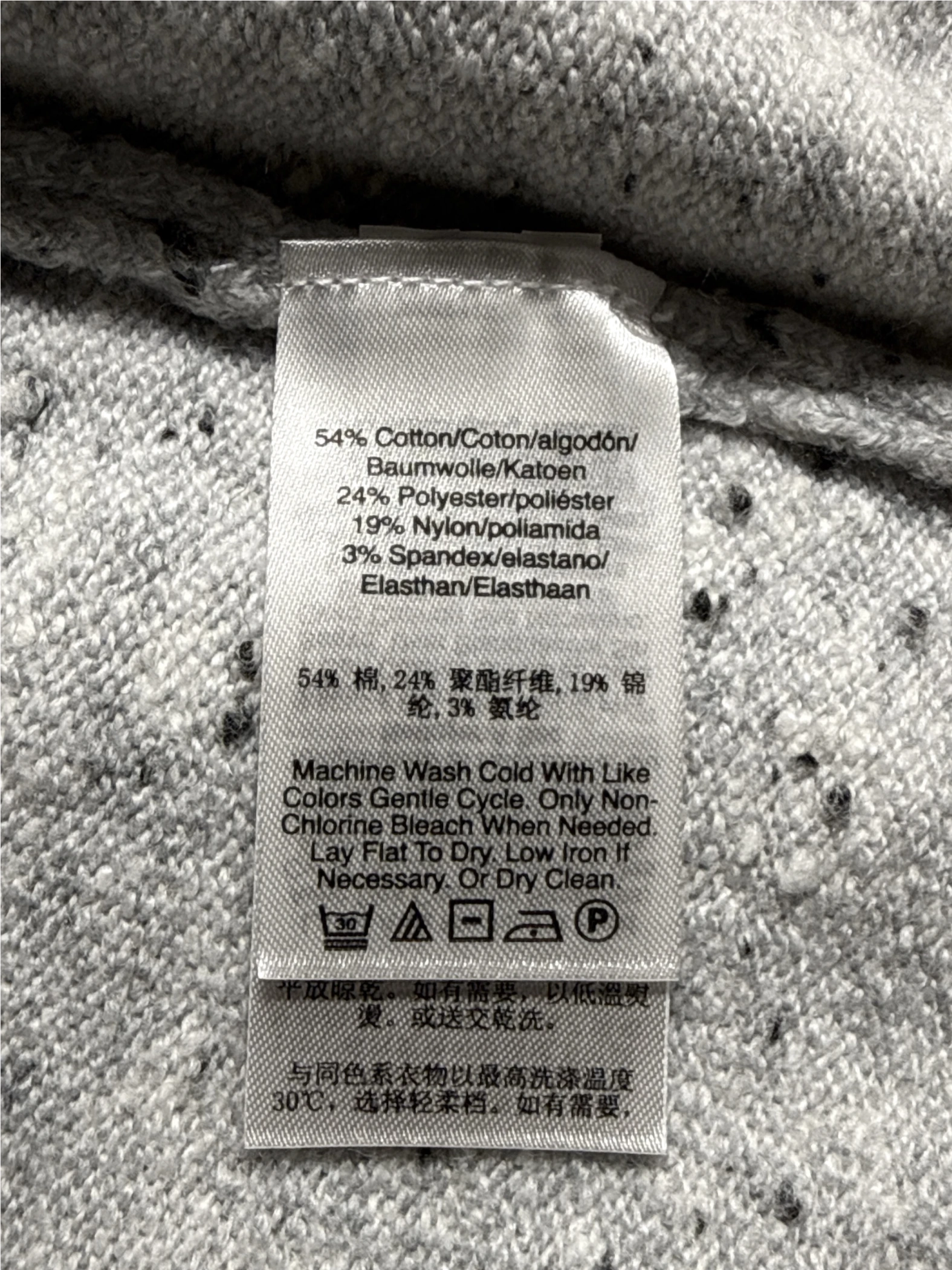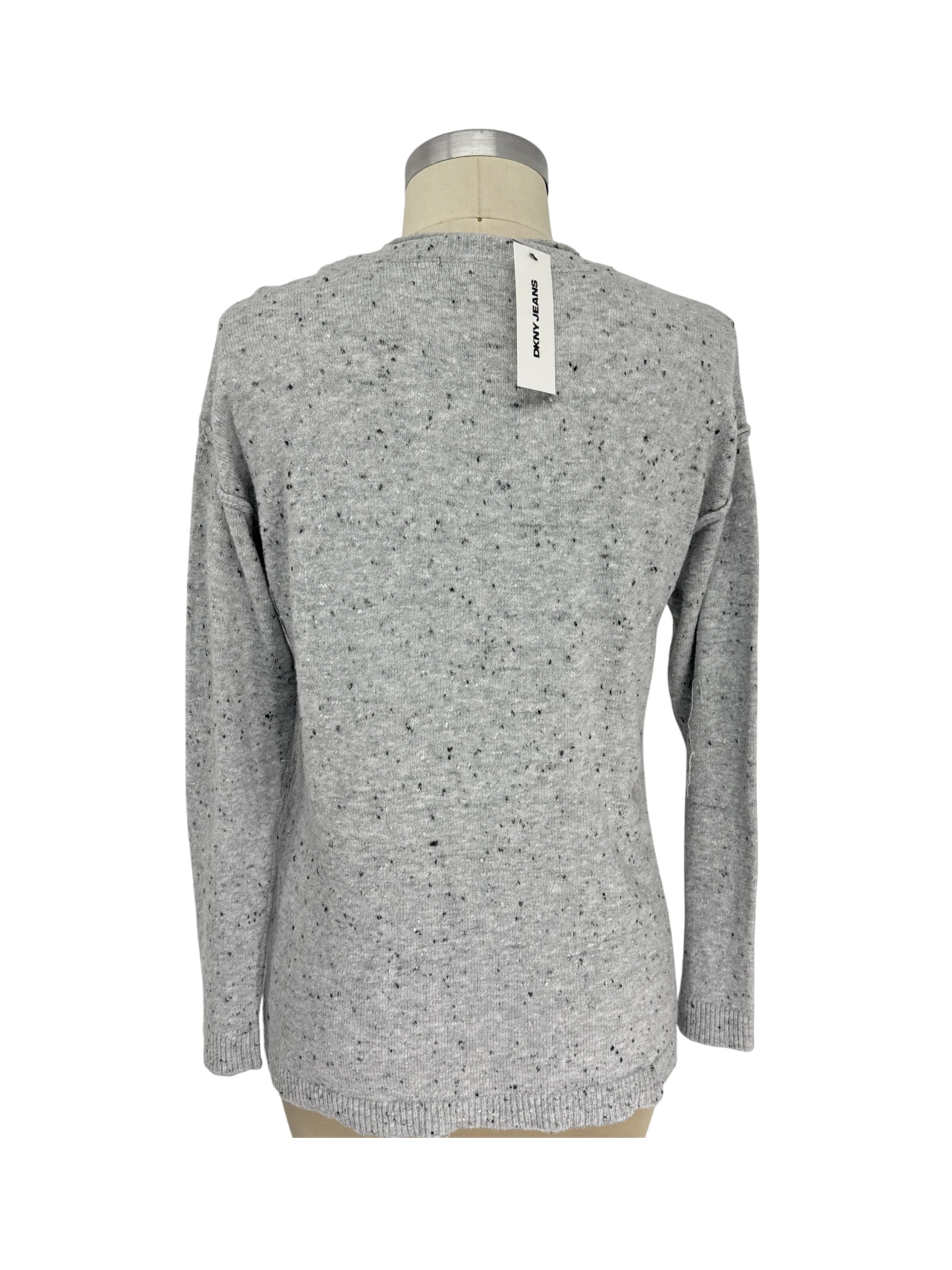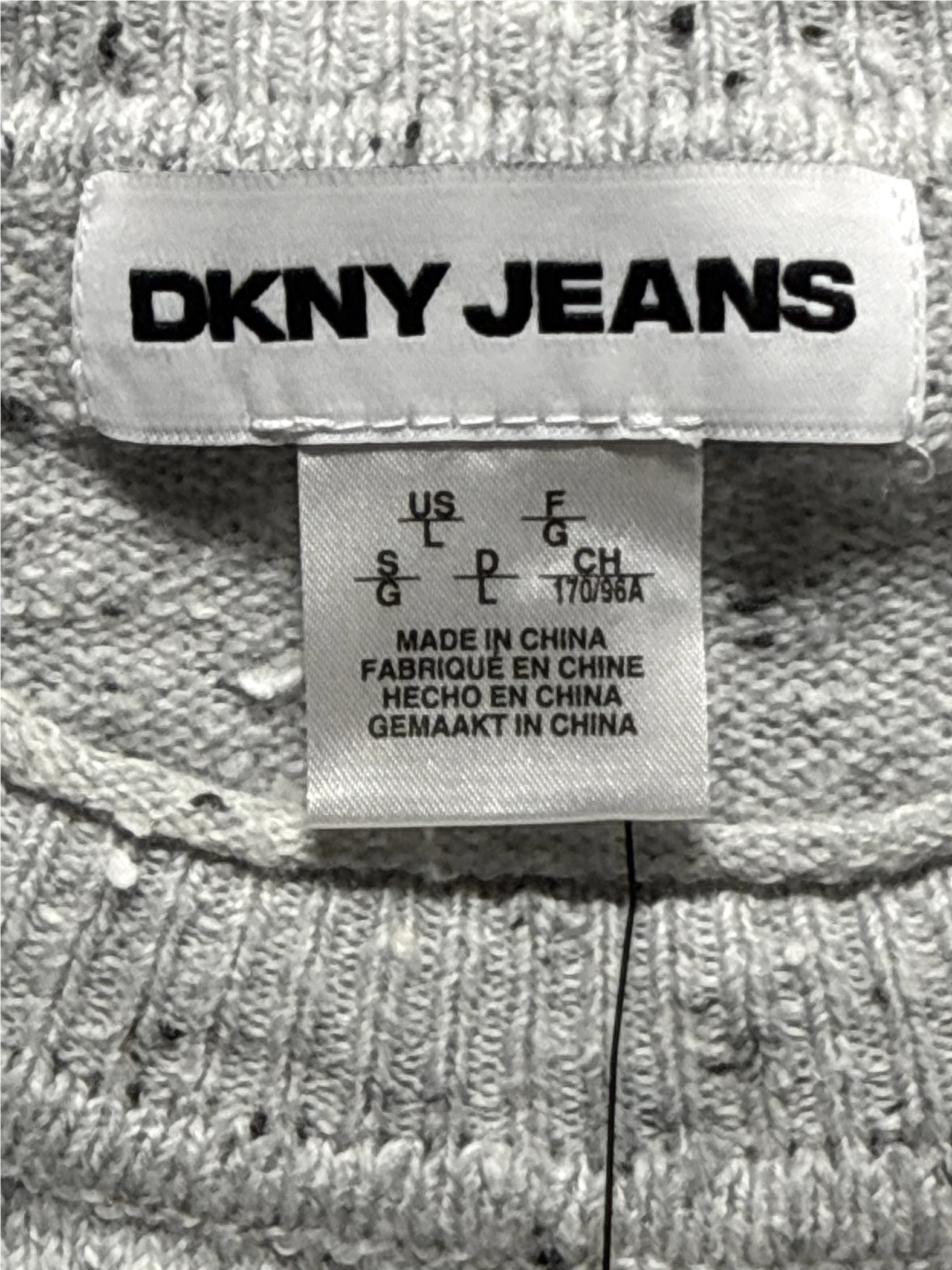 Elevate your wardrobe with this pre-owned DKNY Jeans sweater. This stylish pullover, in a versatile gray, is perfect for a casual yet chic look. Crafted from a comfortable blend of cotton, polyester, nylon, and spandex. This sweater features a classic round neck and a speckled design, making it an ideal addition to any fall or winter outfit. Its a lightweight and comfortable option for everyday wear.