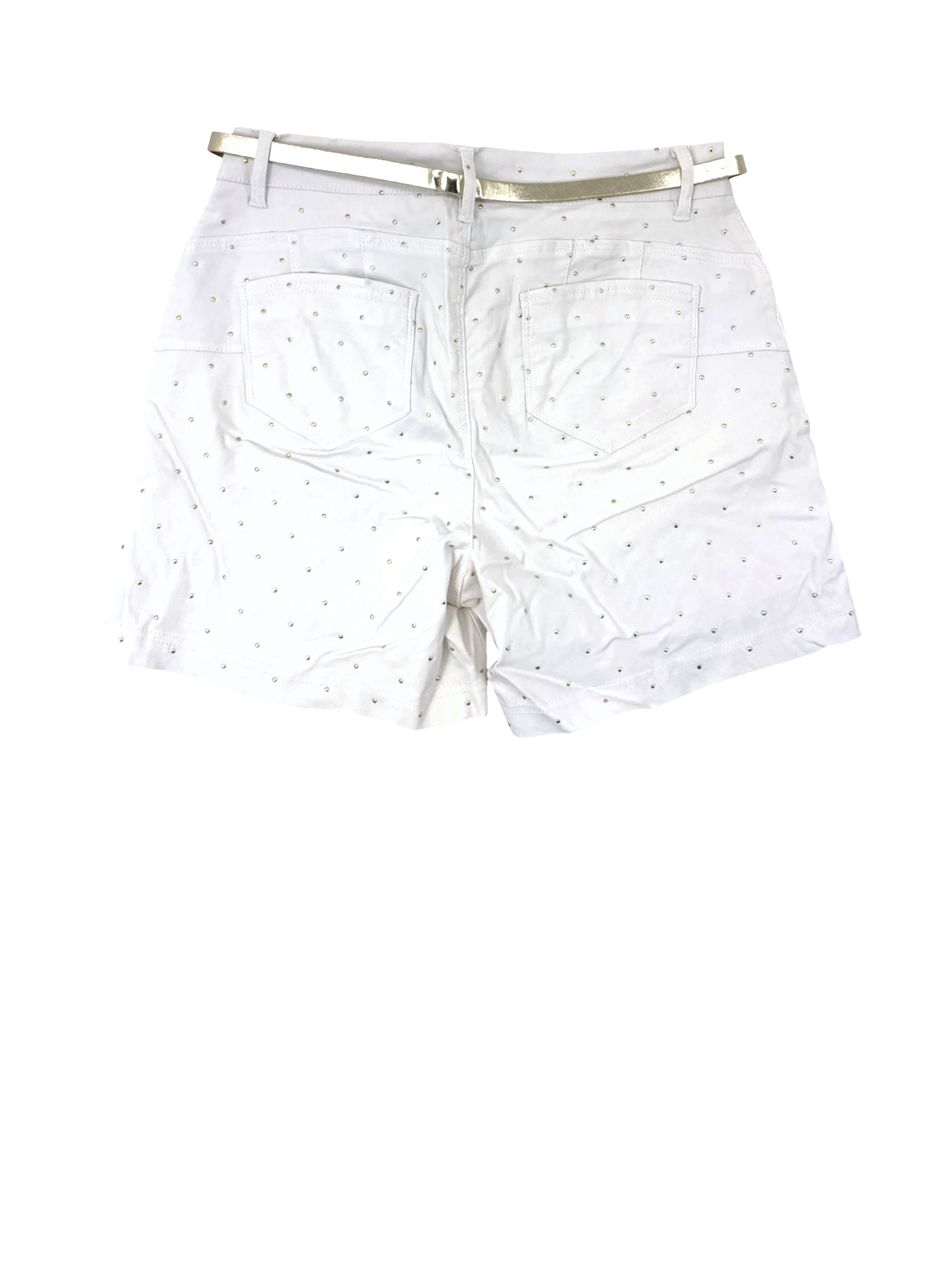 Elevate your summer wardrobe with these chic Donna L'Oren shorts. These pre-owned shorts feature a high-waisted design, perfect for a flattering fit. Embellished with subtle stud details and a stylish belt, they add a touch of glamour to any outfit. Crafted from a blend of rayon, nylon, and spandex, these shorts provide comfort and a great fit. Ideal for casual outings or a summer evening, these shorts are a must-have for the fashion-forward woman.