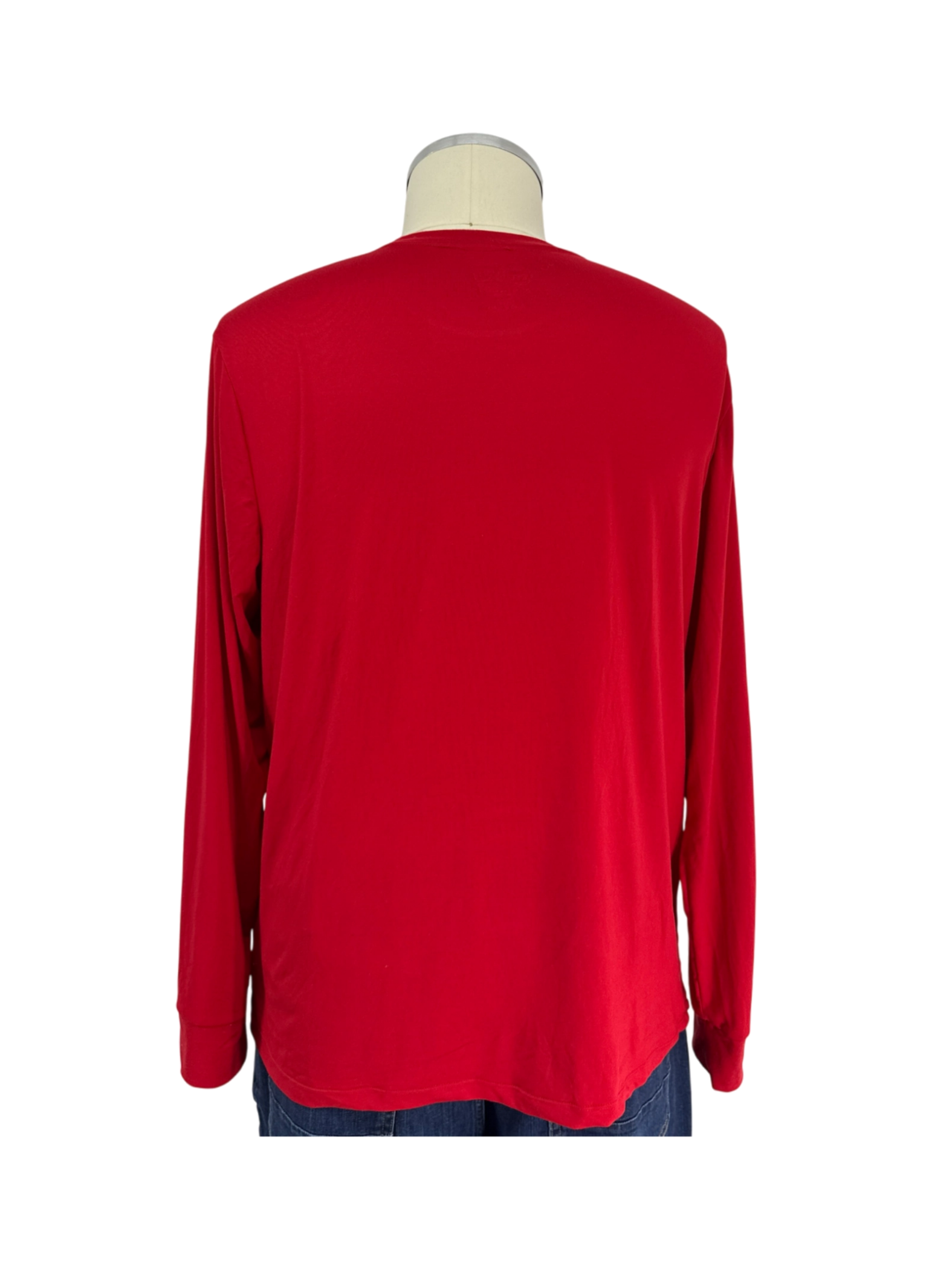 Get into the holiday spirit with this pre-owned Dr. Seuss Grinch long sleeve tee! This vibrant red shirt features a playful graphic of the Grinch. Perfect for Christmas, this cozy top is made from soft, comfortable material. Its classic design makes it a versatile addition to any wardrobe. A fun and festive way to celebrate the season.