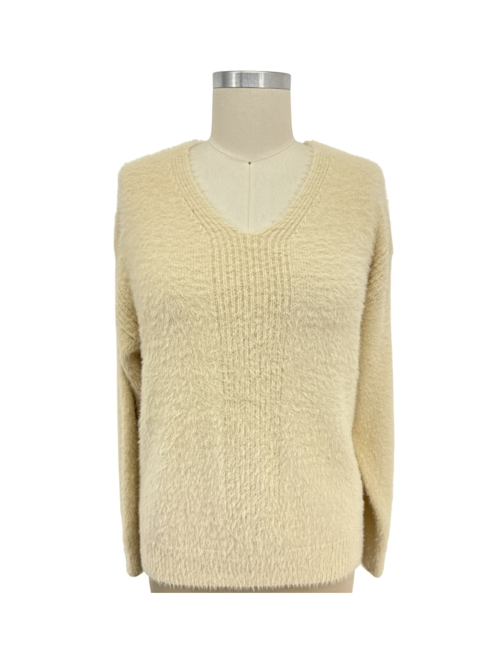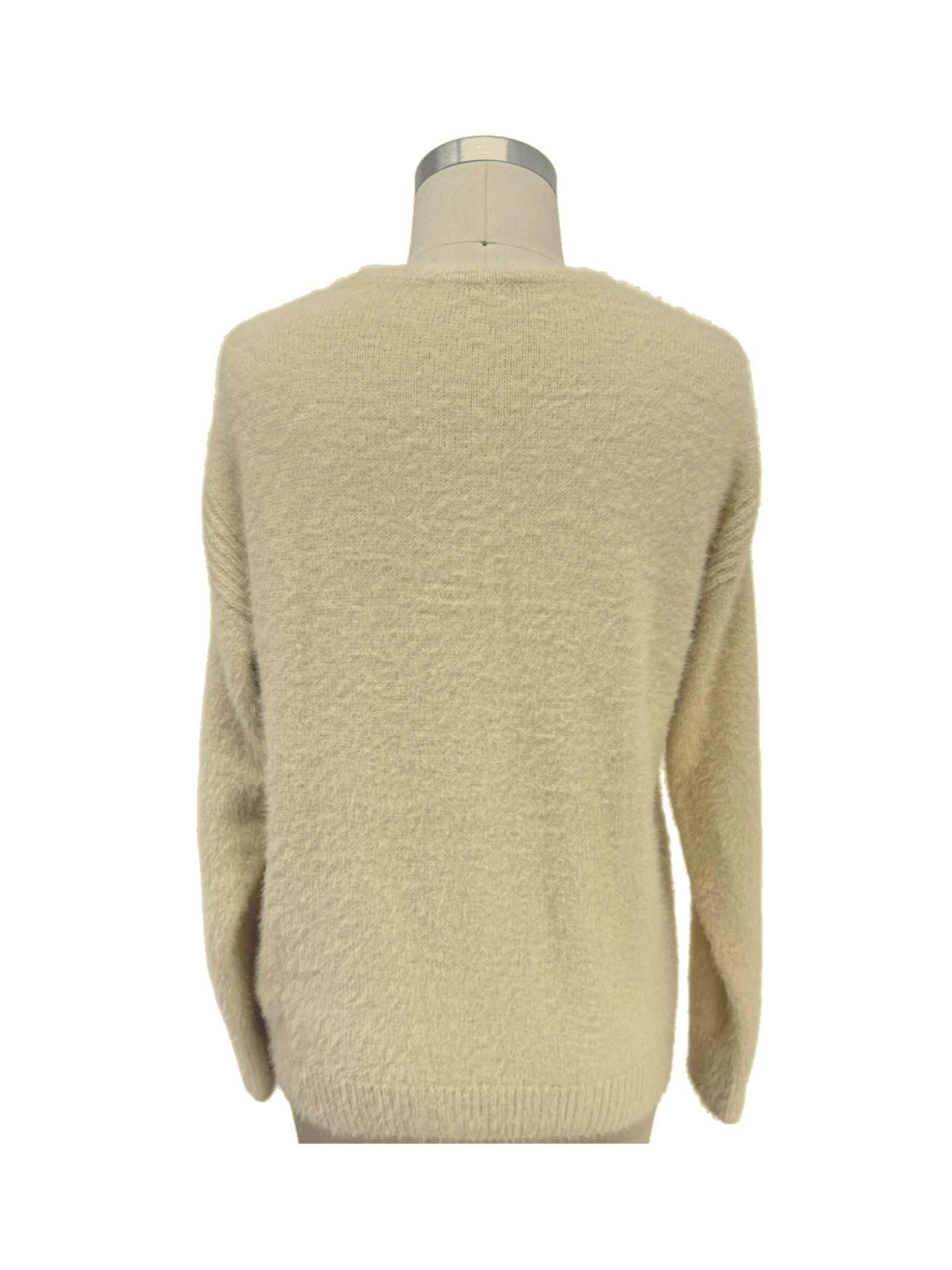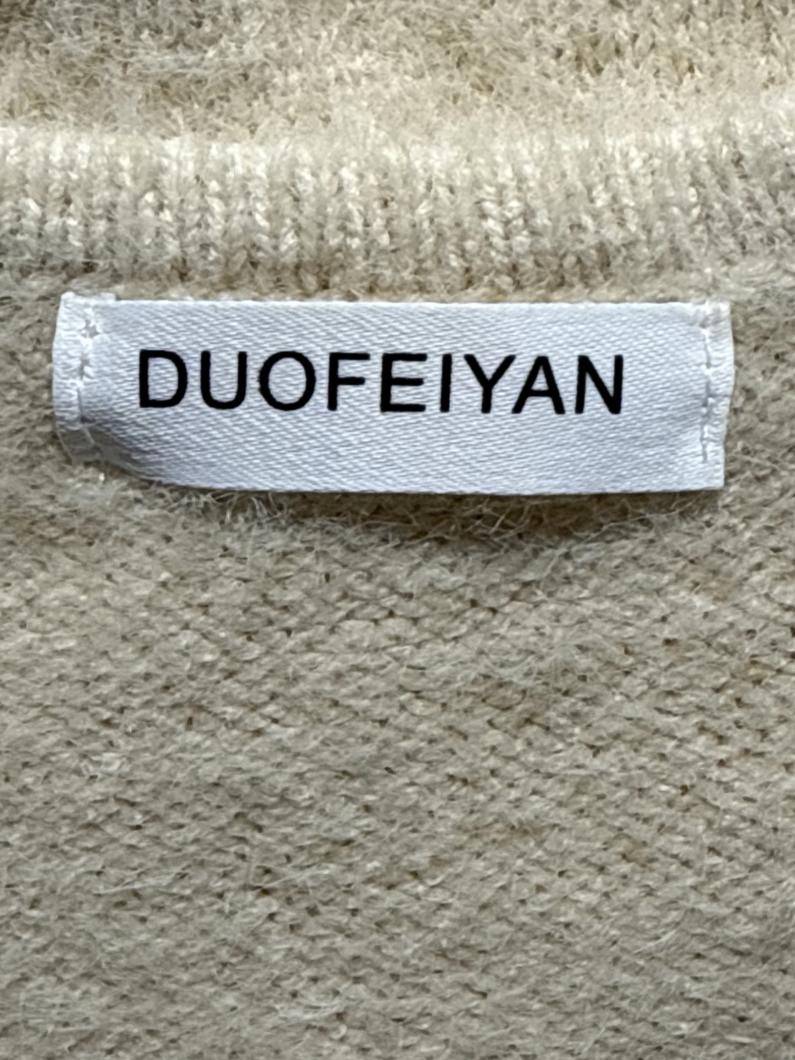 This cozy pre-owned DUOFEIYAN sweater is the perfect addition to your wardrobe. Featuring a soft and fuzzy texture in a classic ivory hue, this pullover sweater offers a comfortable and stylish look. The V-neck design adds a touch of elegance, while the long sleeves provide warmth. Ideal for Fall or Winter, this sweater is a versatile piece that can be dressed up or down. Made with a blend of cotton and acrylic, this sweater is not only comfortable but easy to care for. A great addition to your sustainable fashion collection!