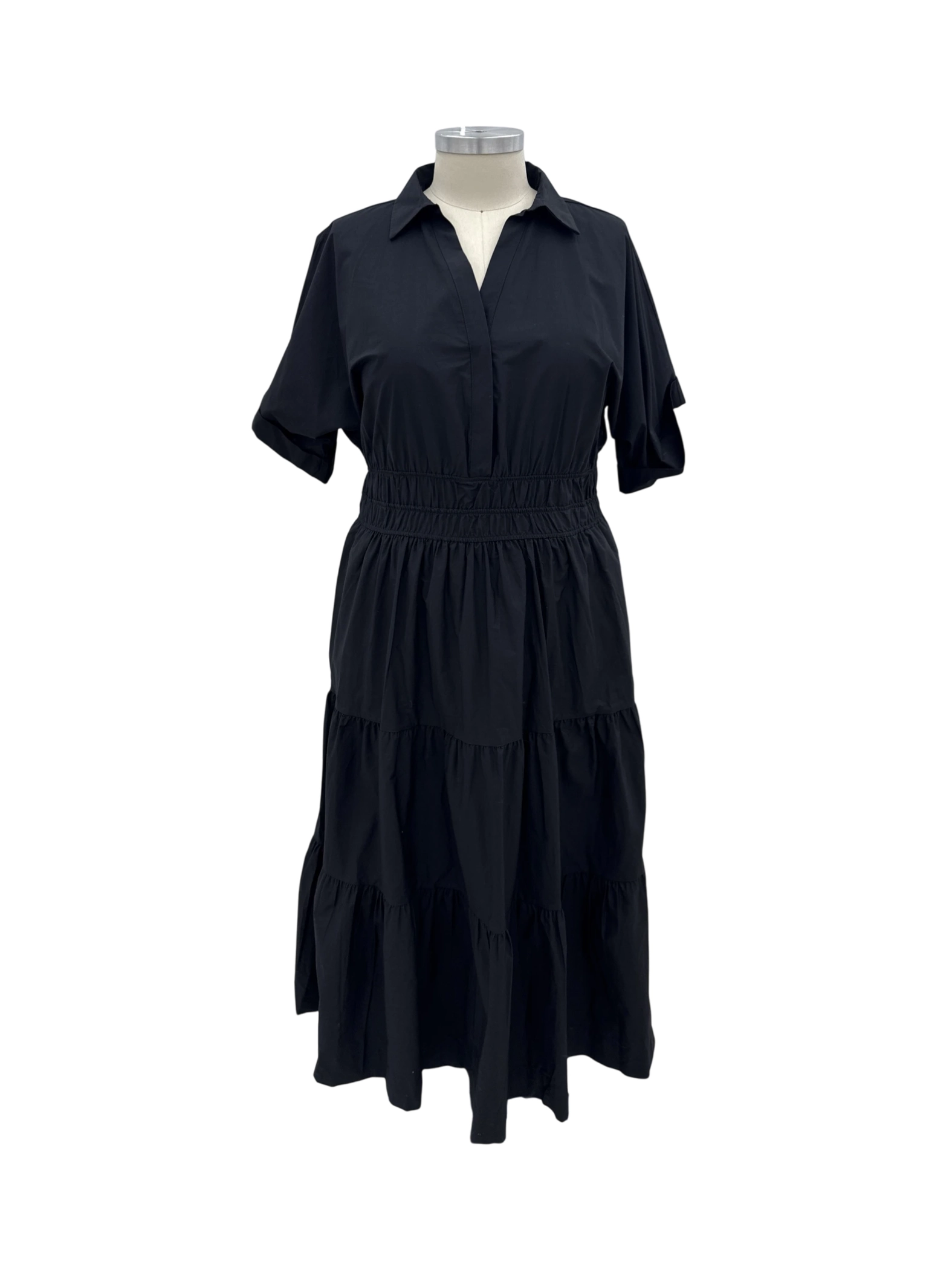 This pre-owned Anthropologie A-line dress is perfect for a casual summer look. The dress features a flattering midi length and is made of breathable 100% cotton fabric. It includes a collar neckline and short sleeves, with a tiered skirt. A versatile piece that can be dressed up or down. Get ready for warm weather in style with this must-have dress! Original price $168.