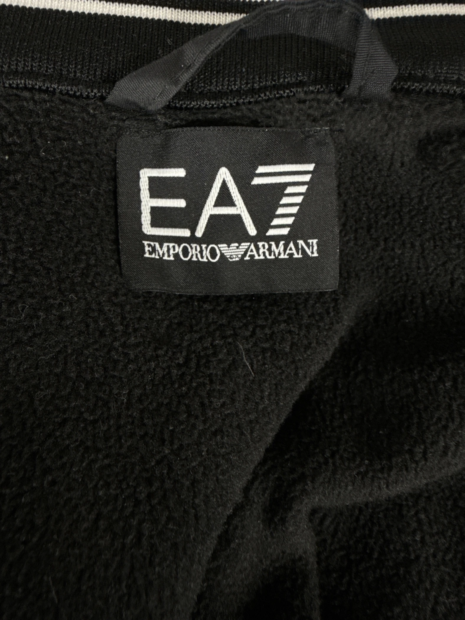 Pre-owned EA7 Emporio Armani black jacket. This stylish jacket is perfect for a casual, sporty look. Crafted with quality polyester, it provides both comfort and durability. The jacket features a classic black color, ribbed detailing, and the iconic EA7 logo. Suitable for the fall and spring seasons, it can be paired with various outfits. The sleek design and comfortable fit make it a must-have addition to any wardrobe. A timeless piece that combines fashion and functionality.