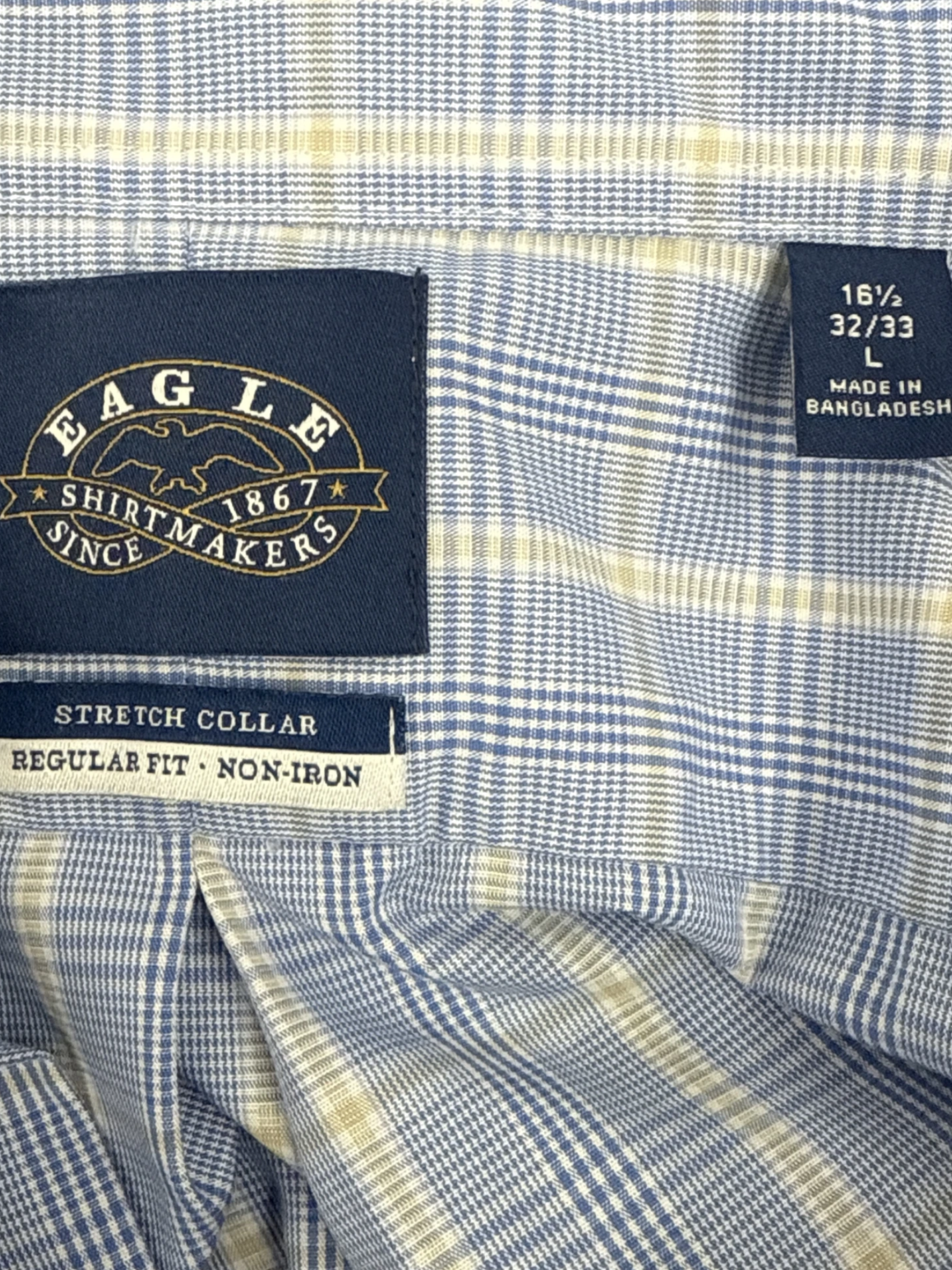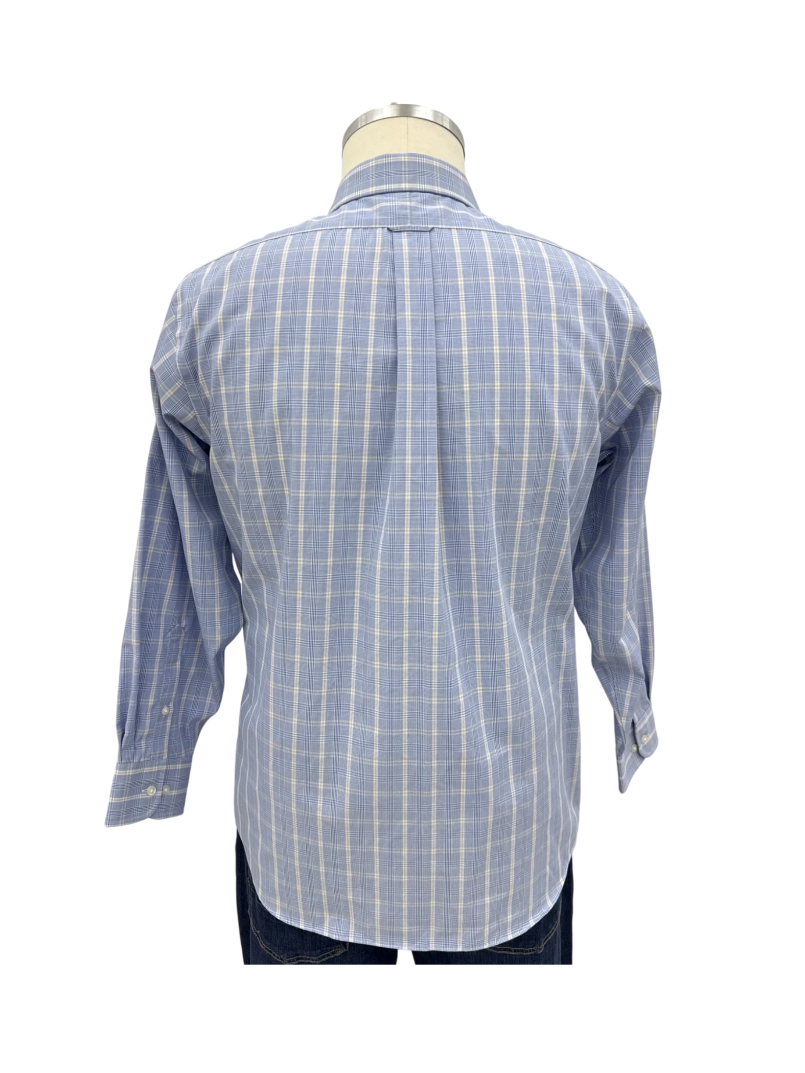 This pre-owned men's long sleeve shirt by EAGLE is a stylish addition to any wardrobe. Crafted from a comfortable cotton blend, the shirt features a classic plaid pattern in blue and white. With a button-down closure and a collared neckline, it offers a versatile look suitable for various occasions. The shirt is designed for a regular fit and includes a chest pocket. A perfect choice for a smart-casual ensemble, this shirt is ideal for spring and fall seasons.