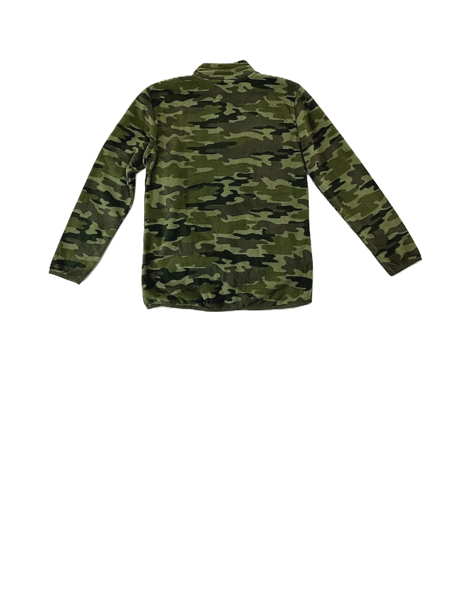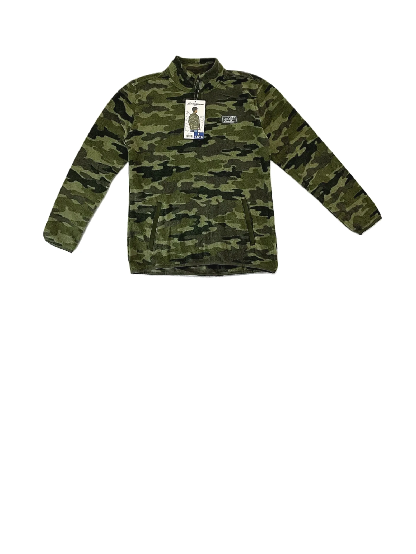 This is an Eddie Bauer Youth Boys Quest Fleece 1/4 Zip in size Large 14/16 with a camouflage pattern.