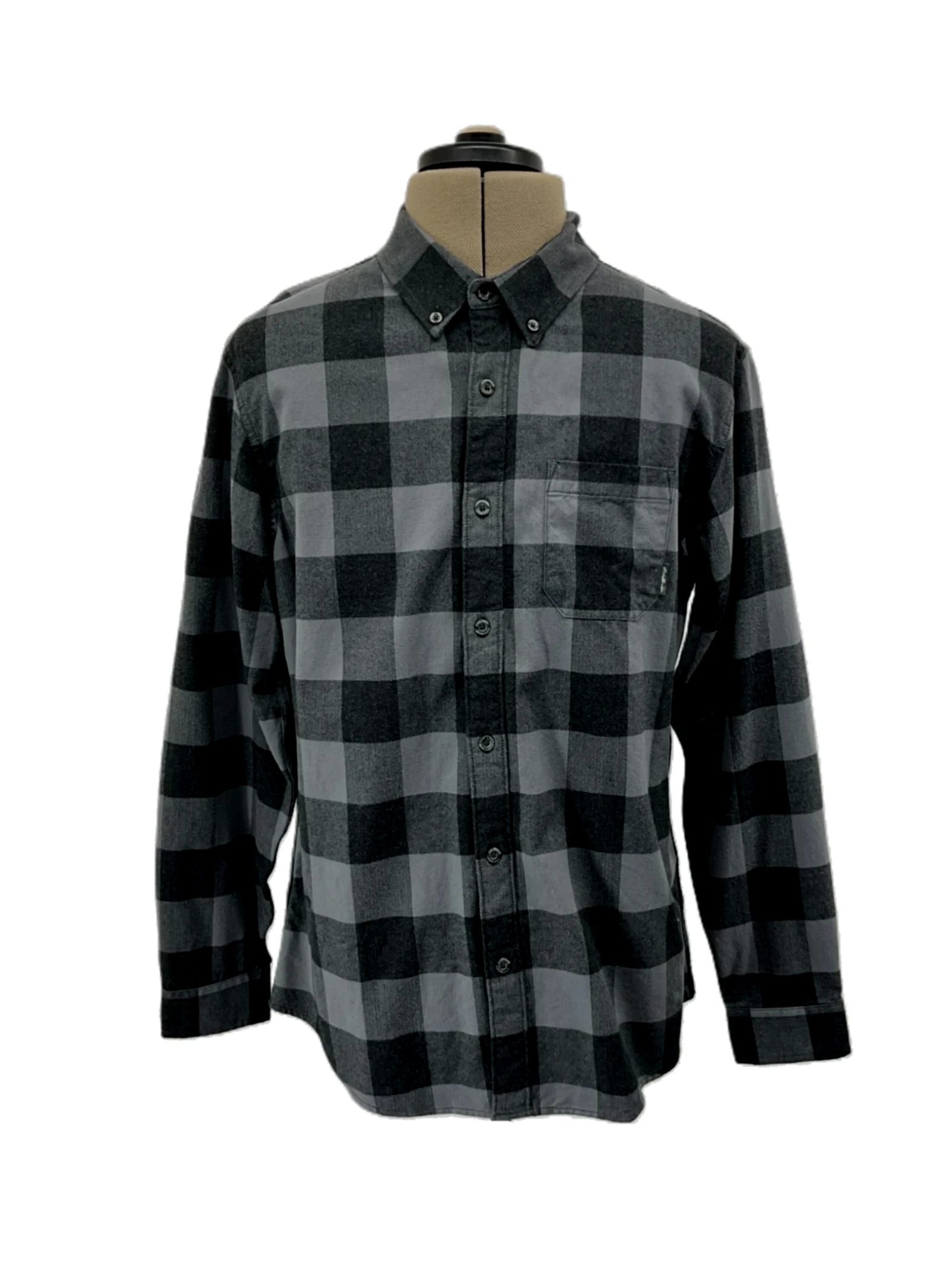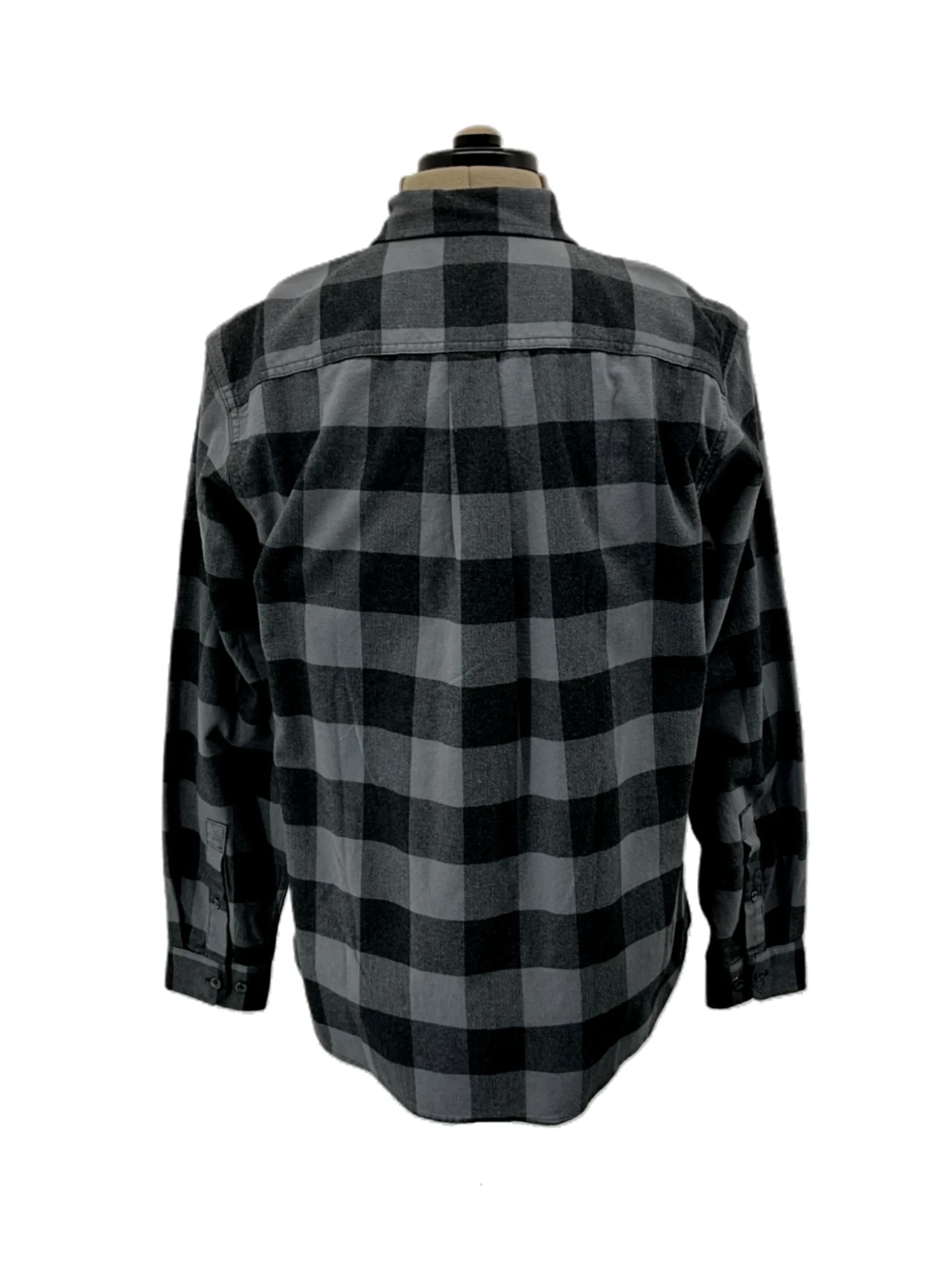 This is a regular fit, long-sleeve casual plaid flannel button-down shirt.
