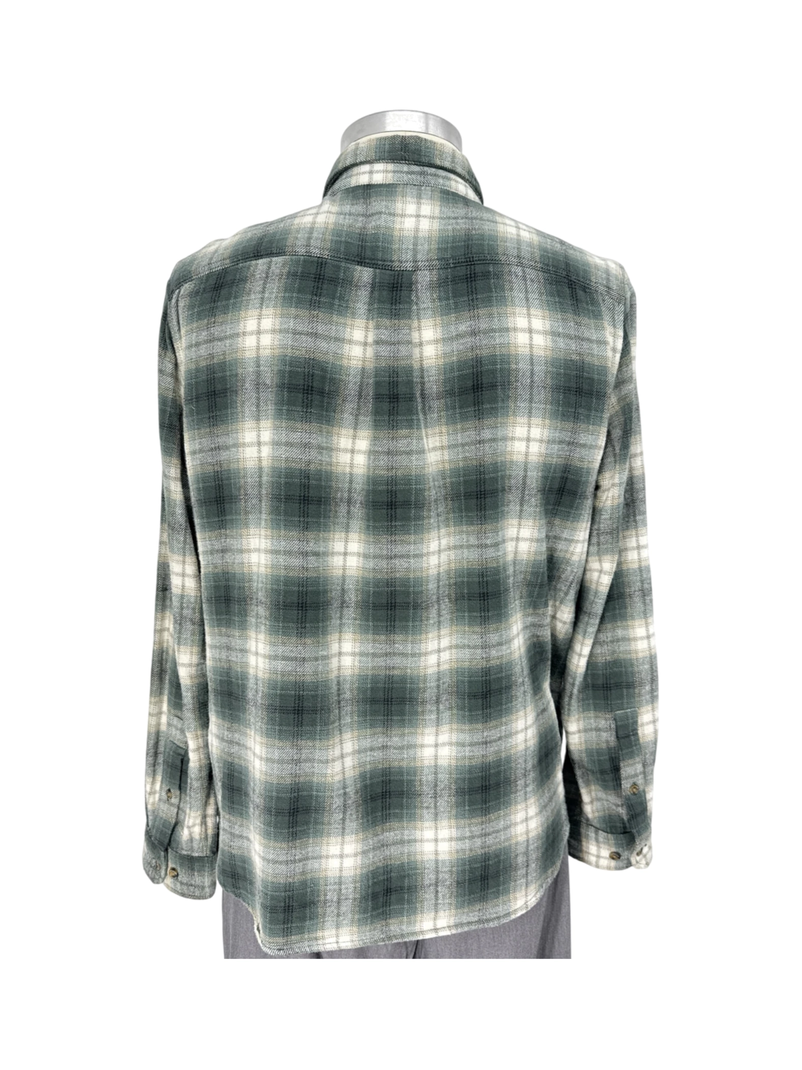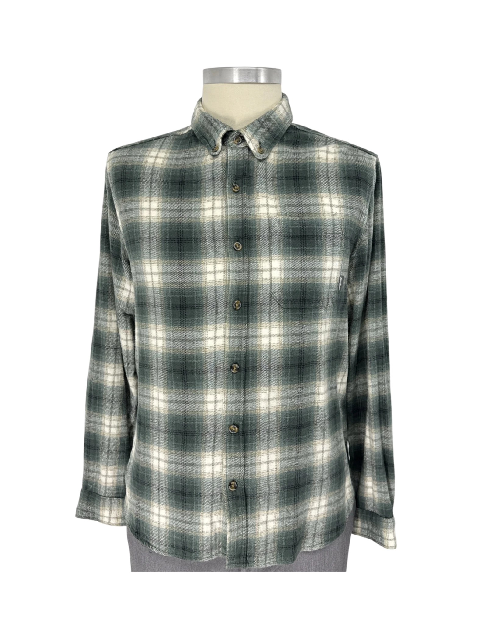 This pre-owned Eddie Bauer men's long sleeve shirt is a classic addition to any wardrobe. Made with a comfortable cotton blend, this plaid shirt is perfect for the fall season. The button-up design and collared neckline offer a versatile look, suitable for casual or slightly more dressed-up occasions. The shirt shows some signs of wear, adding to its unique character. A great find for those seeking a comfortable, stylish, and affordable shirt.