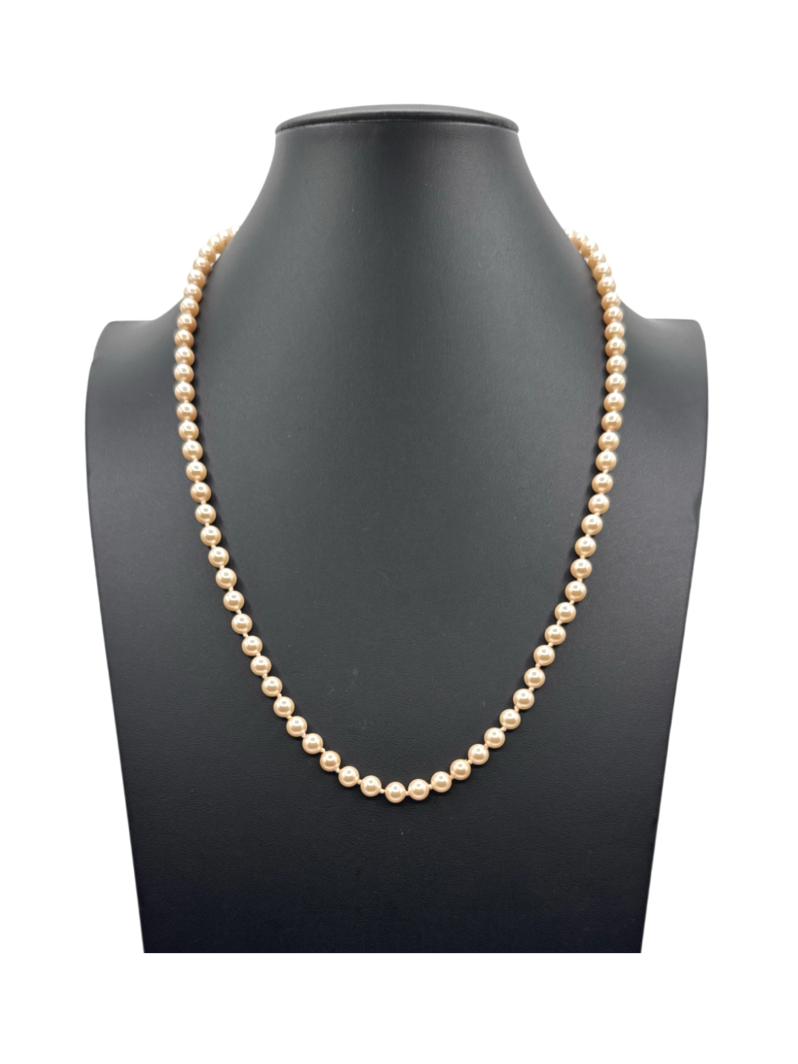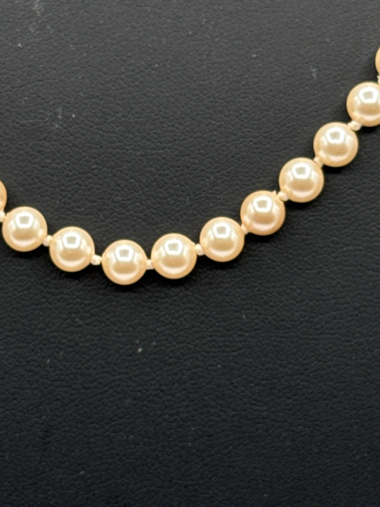 Elegant and timeless, this pre-owned necklace features lustrous ivory pearls strung together on a classic chain. This necklace adds a touch of sophistication to any outfit, from everyday wear to special occasions. The delicate design showcases the beauty of the pearls. A perfect addition to any jewelry collection, offering a classic yet versatile style that will never go out of fashion.