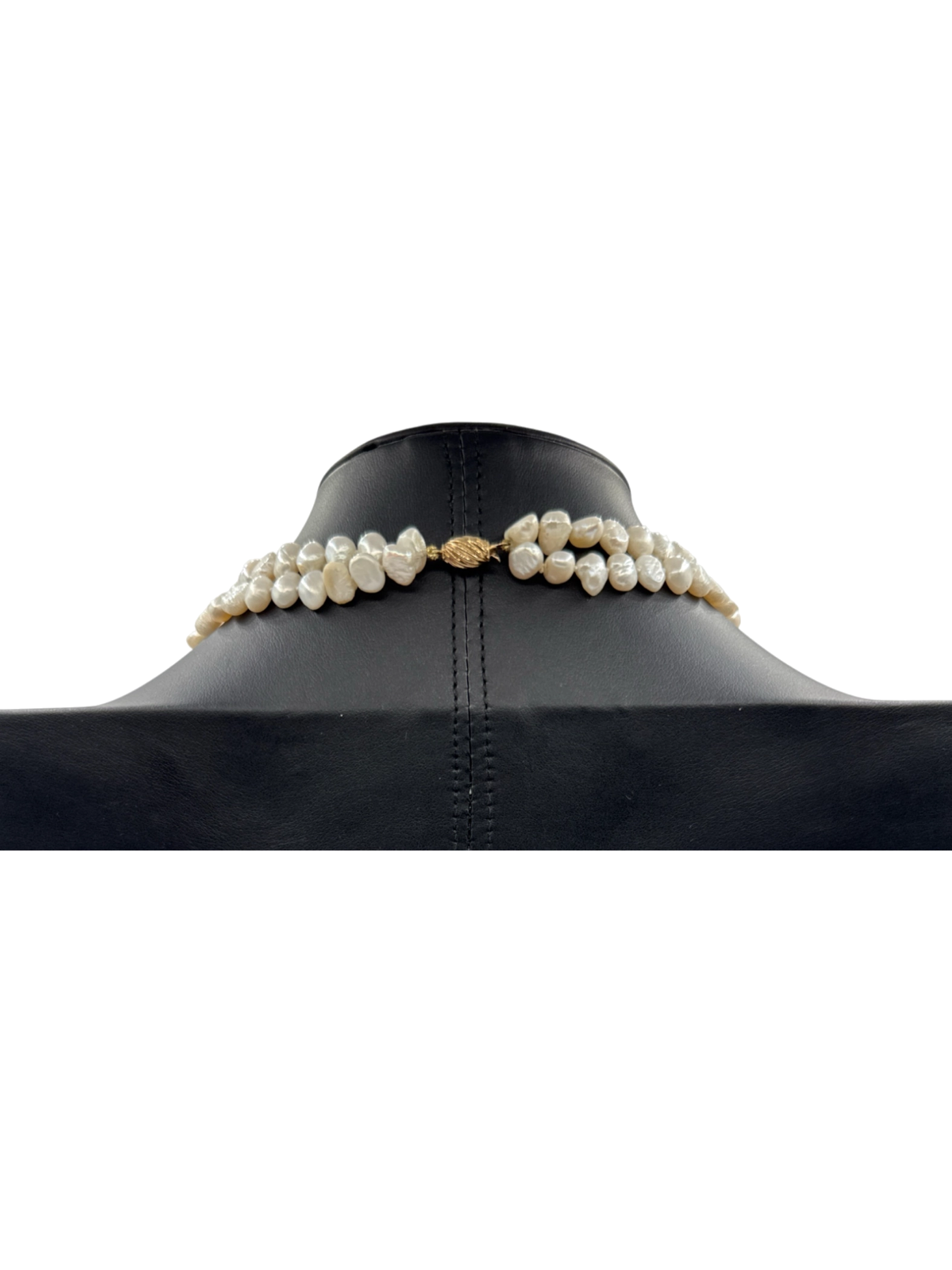 This elegant pre-owned necklace is a beautiful addition to any jewelry collection. Featuring lustrous white pearls, it's a timeless piece that exudes sophistication. Perfect for adding a touch of glamour to any outfit, from casual wear to special occasions. A stunning example of vintage jewelry, this necklace is a must-have for pearl lovers. Its classic design and quality craftsmanship ensure it will be cherished for years to come.